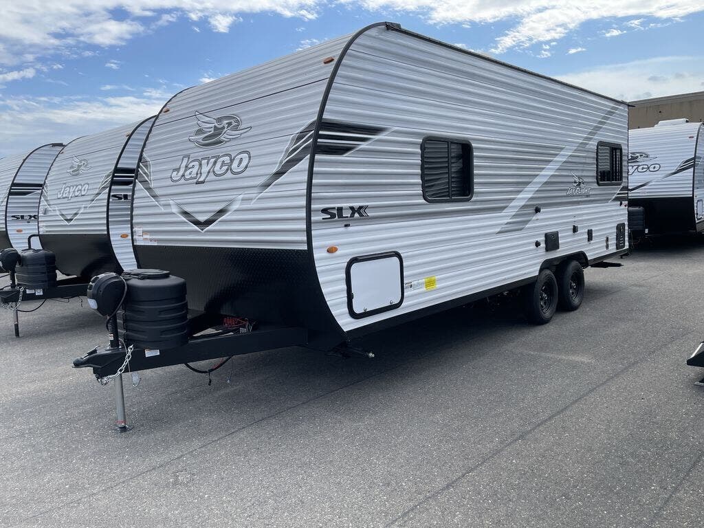 The Jayco Jay Flight SLX travel trailer is quite easy to own because it is lightweight for an easier towing experience. Built on a fully integrated A-frame with galvanized-steel, impact-resistant wheel wells, the Jay Flight SLX has quality at its very foundation. That quality continues on to the electric self-adjusting brakes, easy-lube hubs, Magnum Truss roof system, and LP quick connect. Some of what the mandatory Customer Value Package includes is backup camera prep, Keyed-Alike entry and baggage doors, and an on-demand tankless water heater.