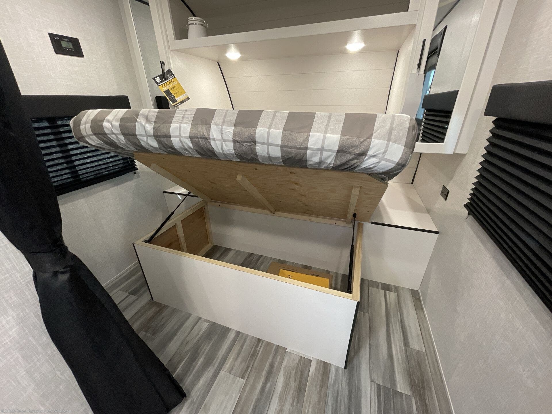 Camping in the woods is just what the doctor ordered and this trailer will provide all the interior comforts you need! There is a three burner cooktop and a microwave oven to prepare meals each day, plus an 8 cu. ft. 12V refrigerator for cold items. After your meal is made, you can dine at the booth dinette or relax on the jack-knife sofa, and these areas can become sleeping space for two to three guests at night. The full bath with a shower means you won't have to use the camp's facilities and the 16' power awning will provide protection from the sun as you visit with other campers!