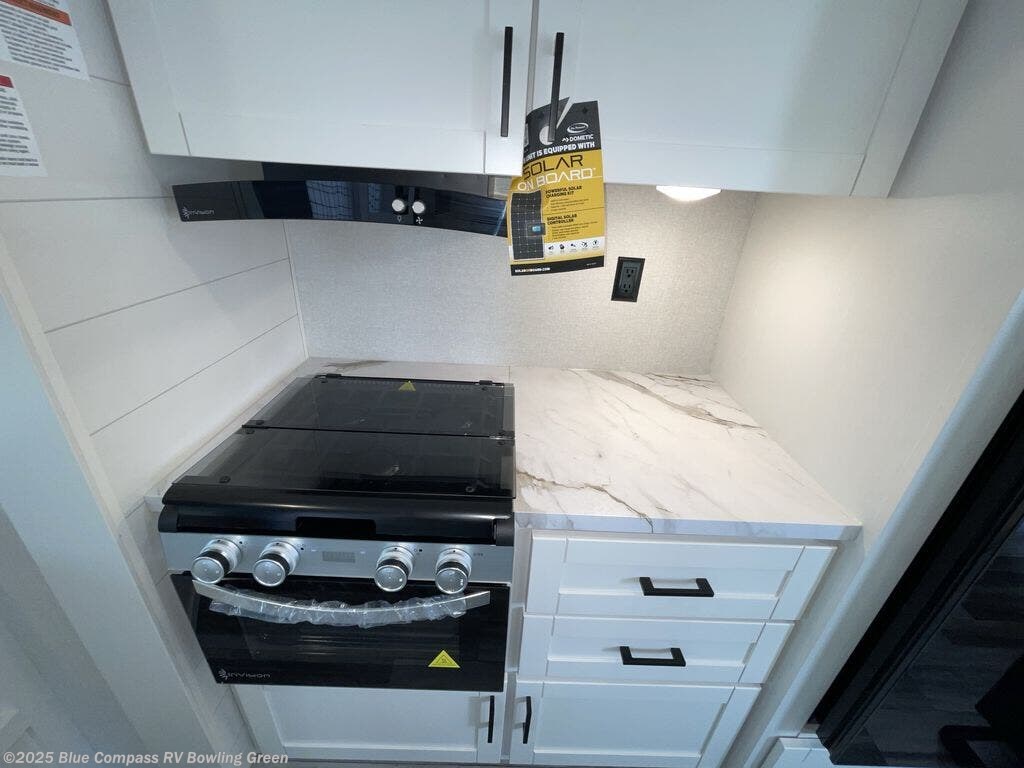 You will have a comfortable camping trip in this travel trailer! It offers full kitchen amenities including a pantry for snacks and such, plus a full rear corner bathroom for privacy and includes a shower. When you need a break, the semi-private bedroom up front offers a queen bed, dual wardrobes and a curtain to close, and the booth dinette can transform into a sleeping space as well. There is a 18' power awning with LED lights for you to enjoy this outdoor space into the night, plus exterior storage for your outdoor games and gear.