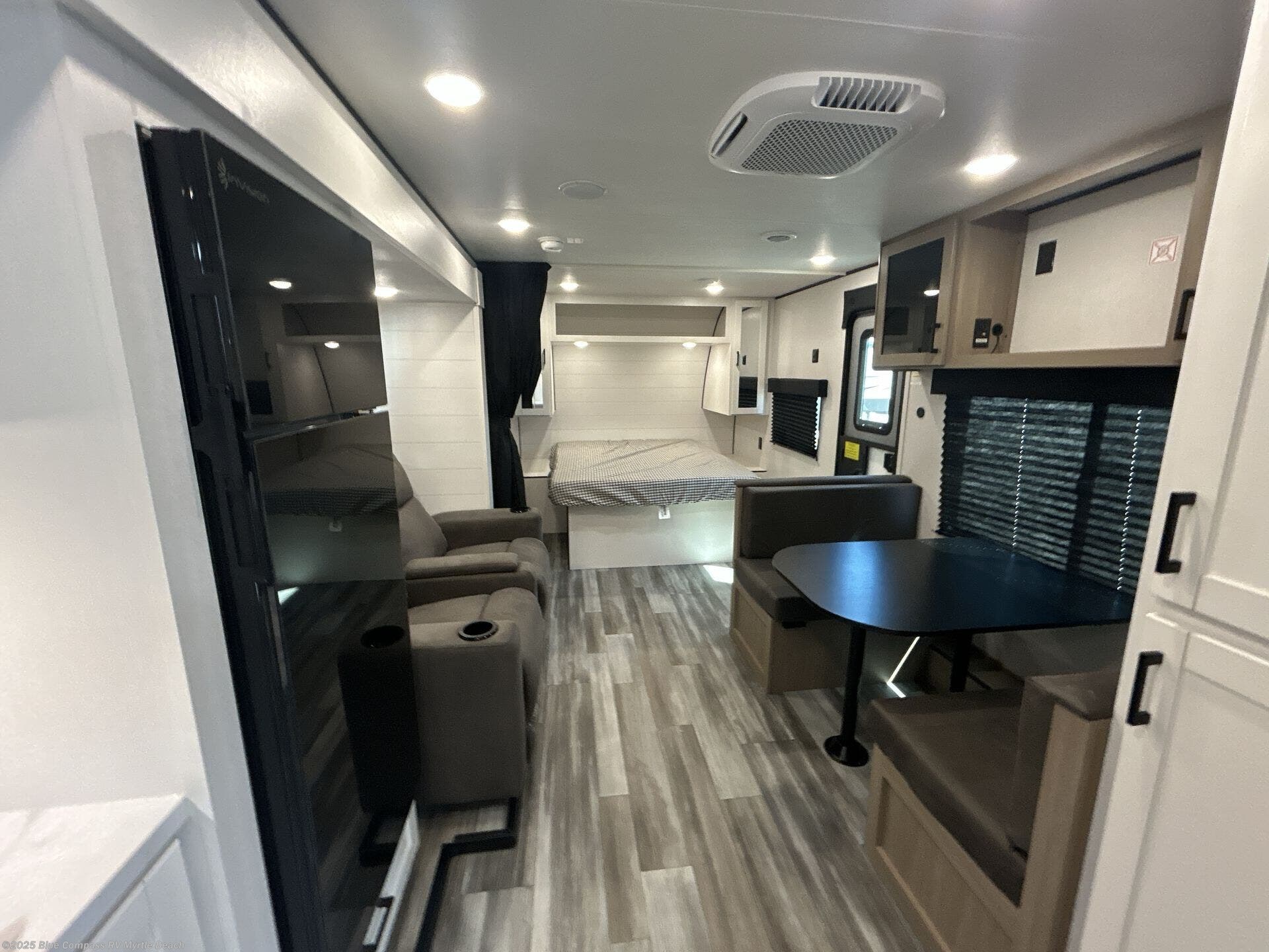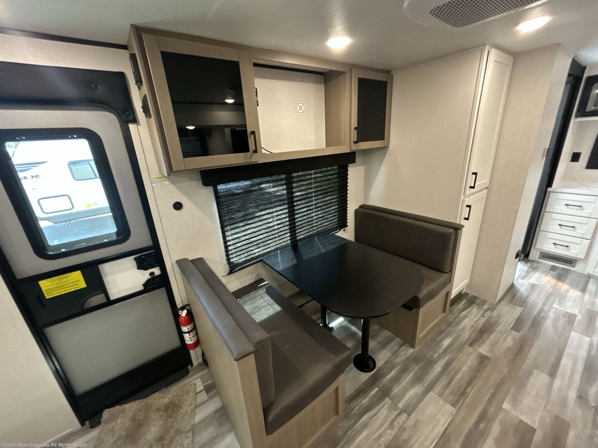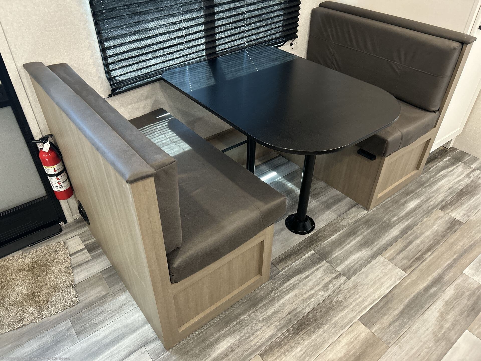 You will have a comfortable camping trip in this travel trailer! It offers full kitchen amenities including a pantry for snacks and such, plus a full rear corner bathroom for privacy and includes a shower. When you need a break, the semi-private bedroom up front offers a queen bed, dual wardrobes and a curtain to close, and the booth dinette can transform into a sleeping space as well. There is a 18' power awning with LED lights for you to enjoy this outdoor space into the night, plus exterior storage for your outdoor games and gear.
