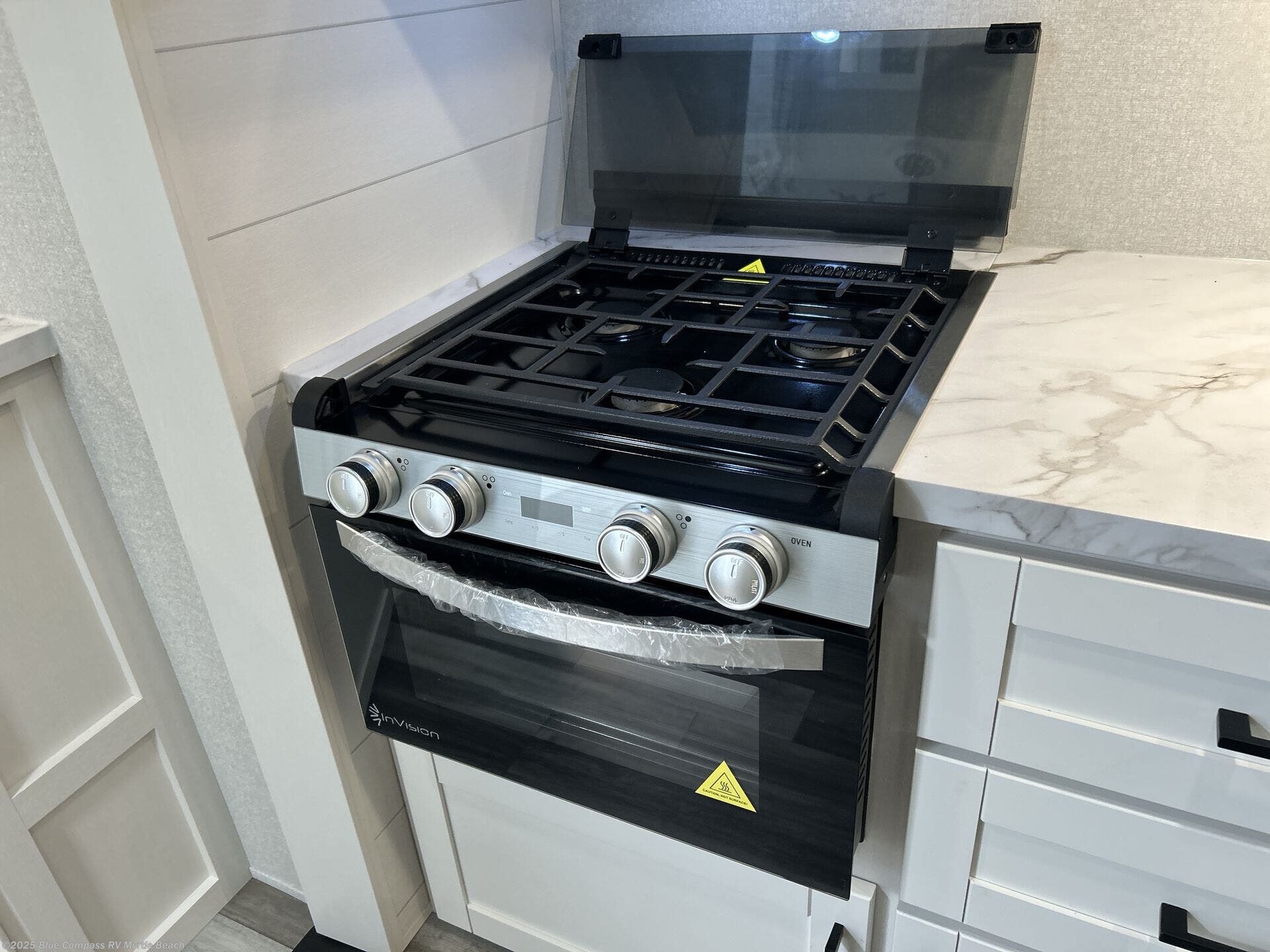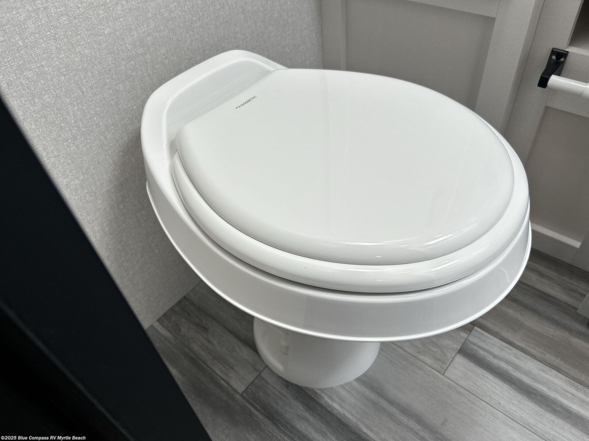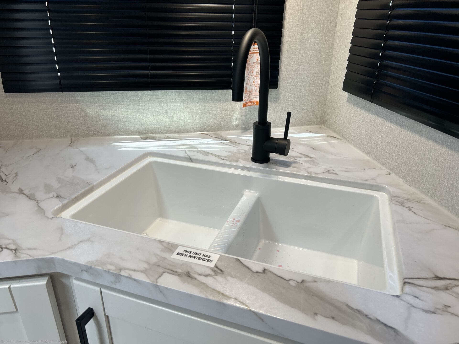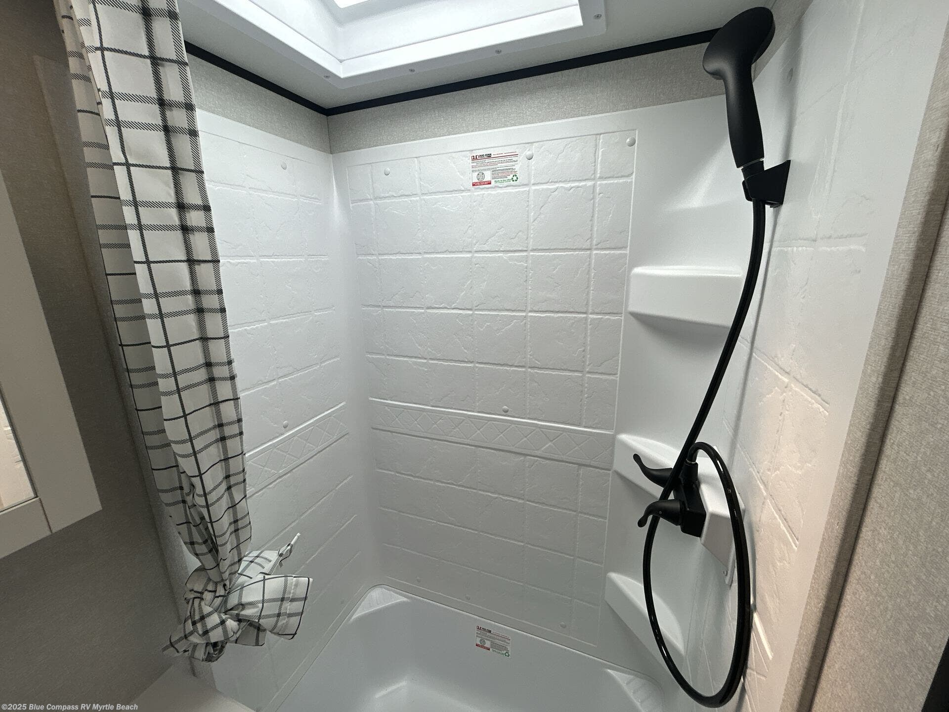 You will have a comfortable camping trip in this travel trailer! It offers full kitchen amenities including a pantry for snacks and such, plus a full rear corner bathroom for privacy and includes a shower. When you need a break, the semi-private bedroom up front offers a queen bed, dual wardrobes and a curtain to close, and the booth dinette can transform into a sleeping space as well. There is a 18' power awning with LED lights for you to enjoy this outdoor space into the night, plus exterior storage for your outdoor games and gear.