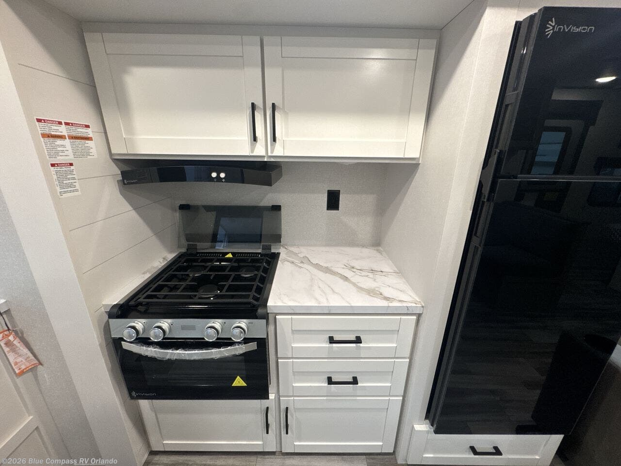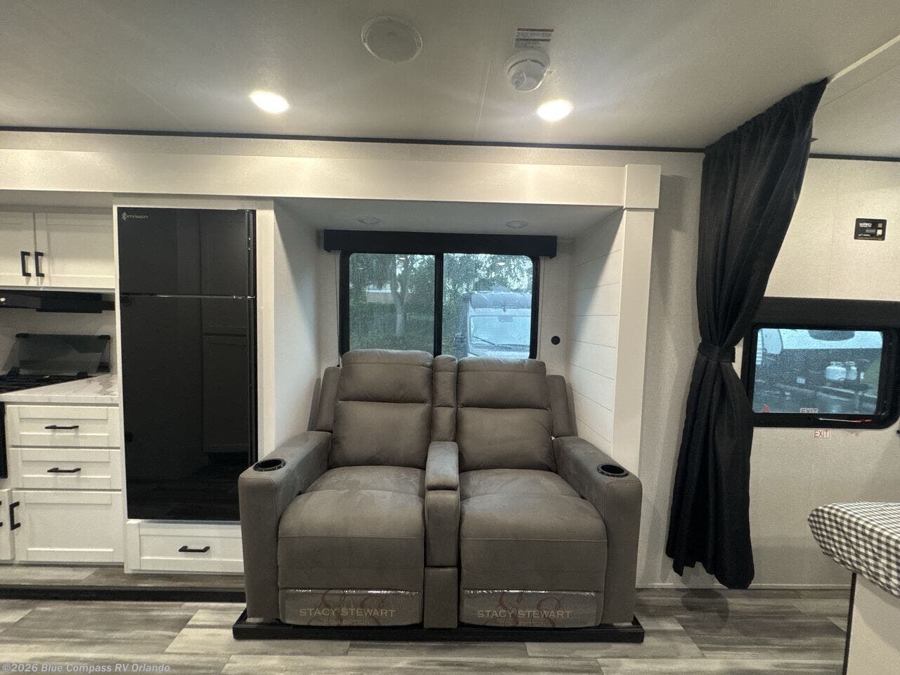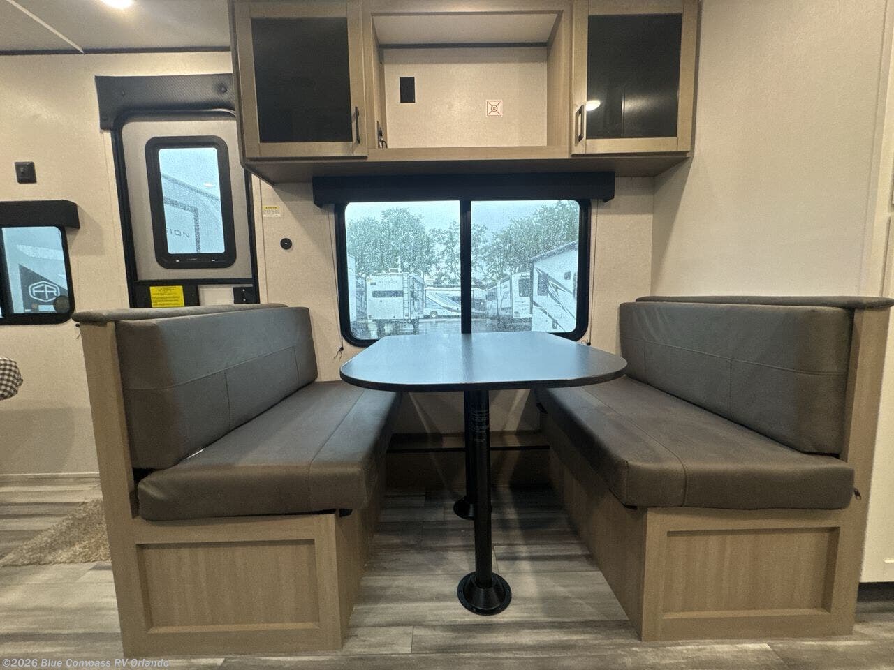 You will have a comfortable camping trip in this travel trailer! It offers full kitchen amenities including a pantry for snacks and such, plus a full rear corner bathroom for privacy and includes a shower. When you need a break, the semi-private bedroom up front offers a queen bed, dual wardrobes and a curtain to close, and the booth dinette can transform into a sleeping space as well. There is a 18' power awning with LED lights for you to enjoy this outdoor space into the night, plus exterior storage for your outdoor games and gear.