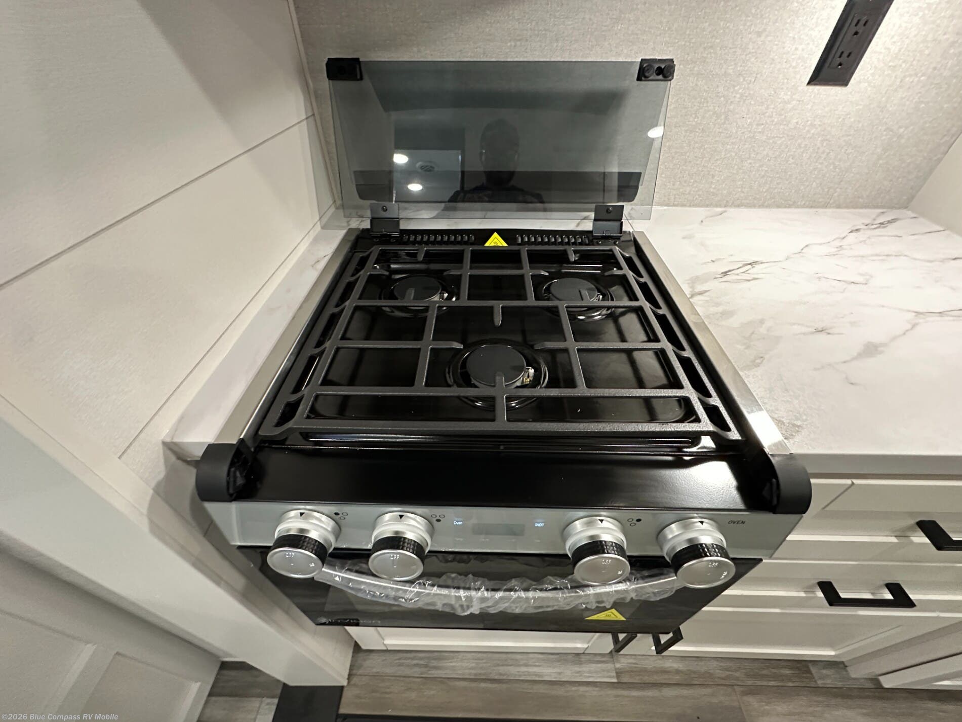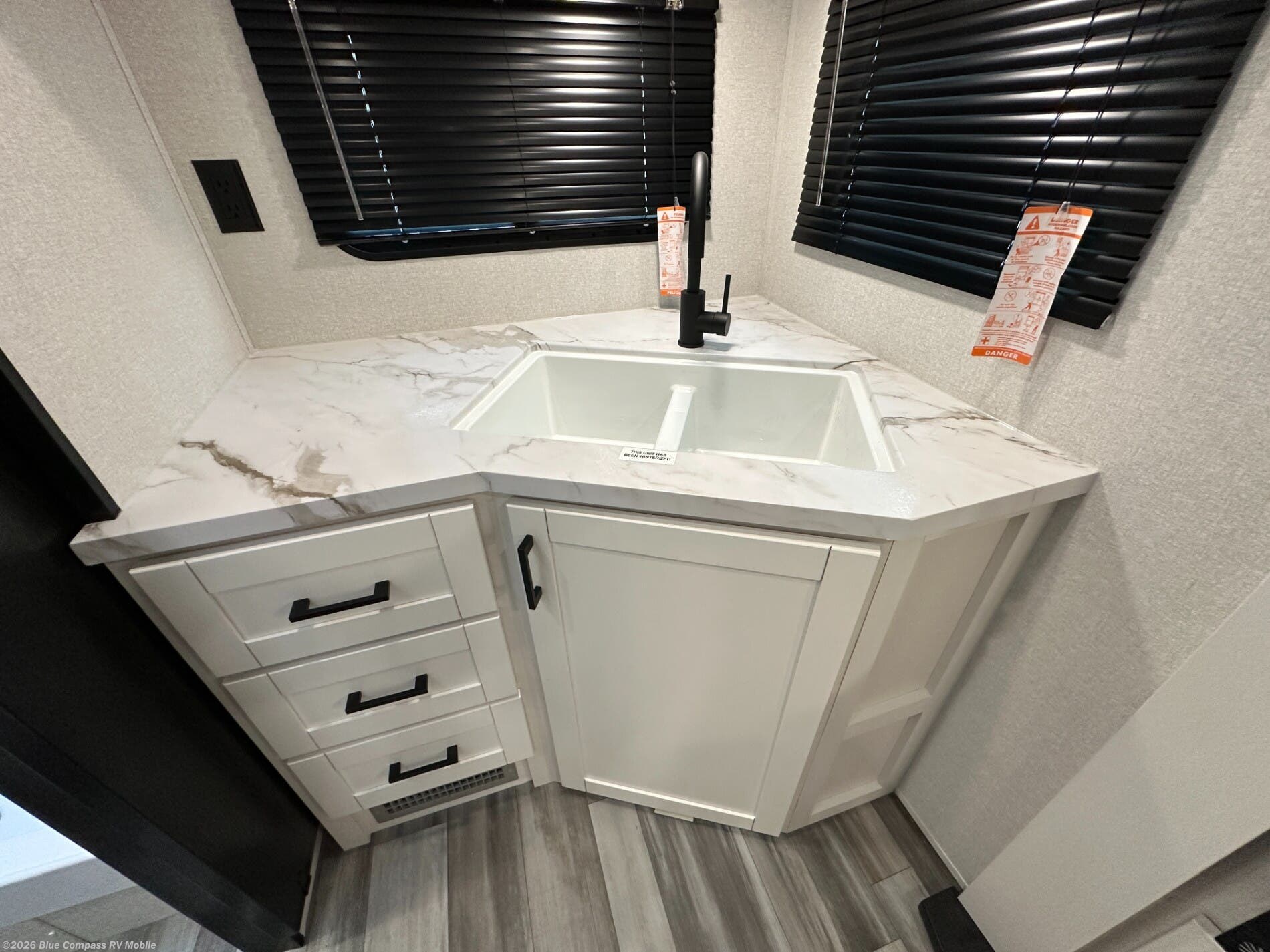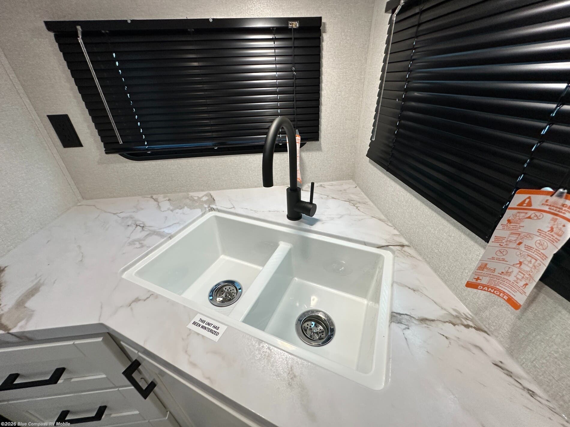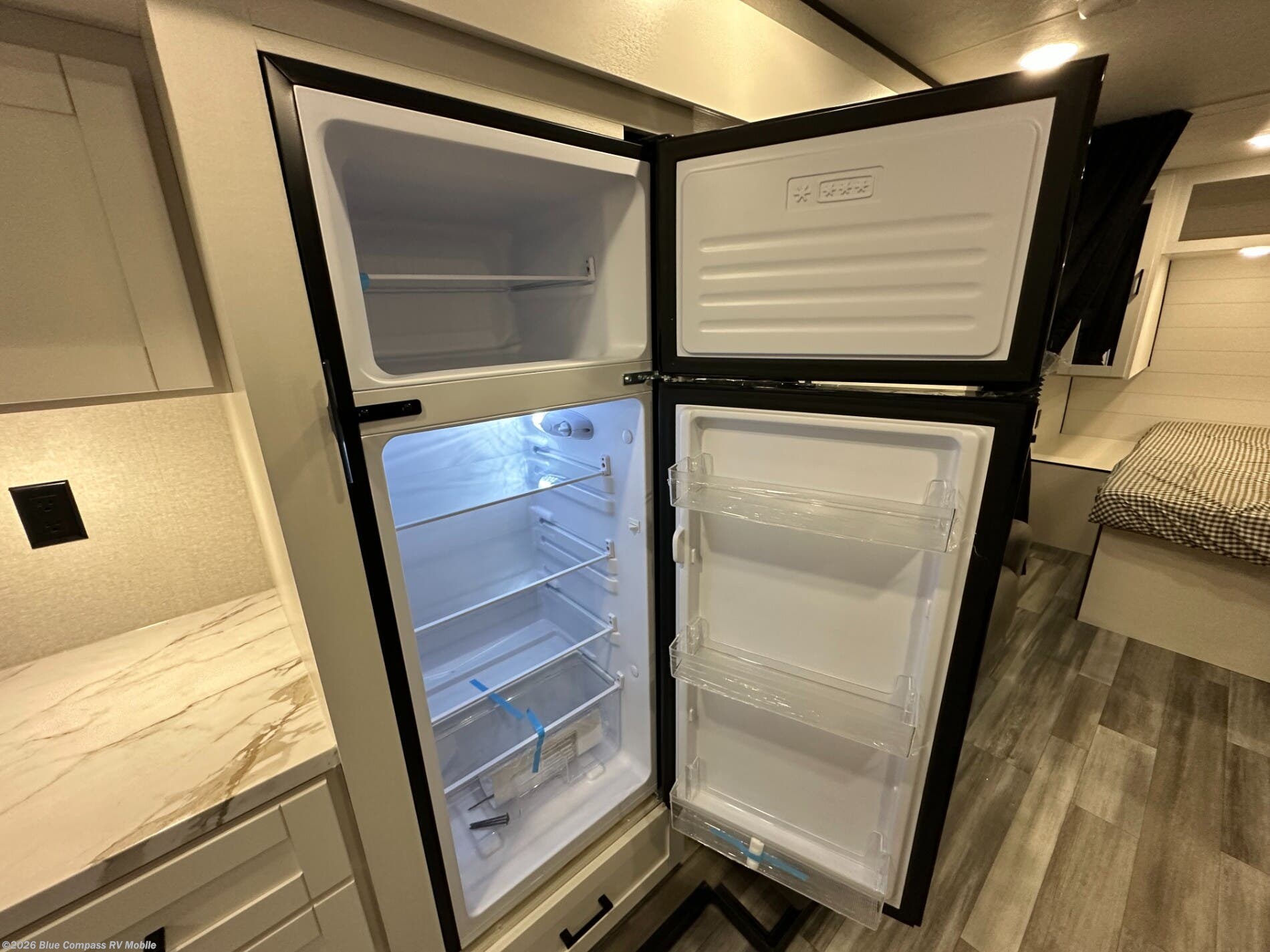 You will have a comfortable camping trip in this travel trailer! It offers full kitchen amenities including a pantry for snacks and such, plus a full rear corner bathroom for privacy and includes a shower. When you need a break, the semi-private bedroom up front offers a queen bed, dual wardrobes and a curtain to close, and the booth dinette can transform into a sleeping space as well. There is a 18' power awning with LED lights for you to enjoy this outdoor space into the night, plus exterior storage for your outdoor games and gear.