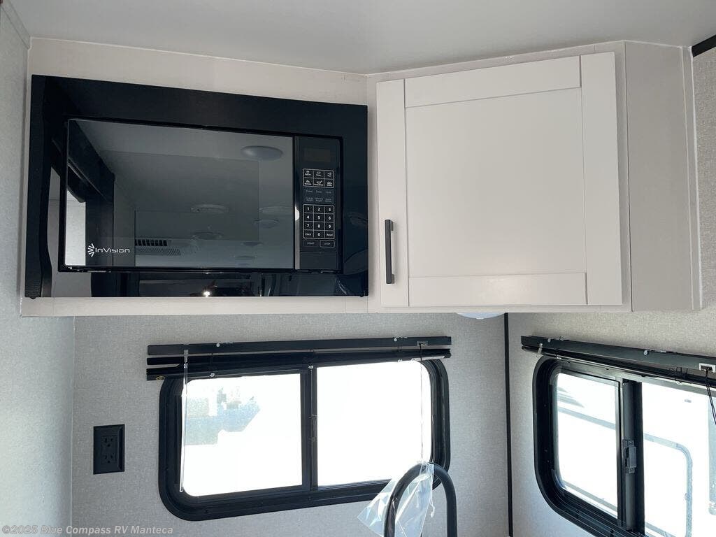 You will have a comfortable camping trip in this travel trailer! It offers full kitchen amenities including a pantry for snacks and such, plus a full rear corner bathroom for privacy and includes a shower. When you need a break, the semi-private bedroom up front offers a queen bed, dual wardrobes and a curtain to close, and the booth dinette can transform into a sleeping space as well. There is a 18' power awning with LED lights for you to enjoy this outdoor space into the night, plus exterior storage for your outdoor games and gear.