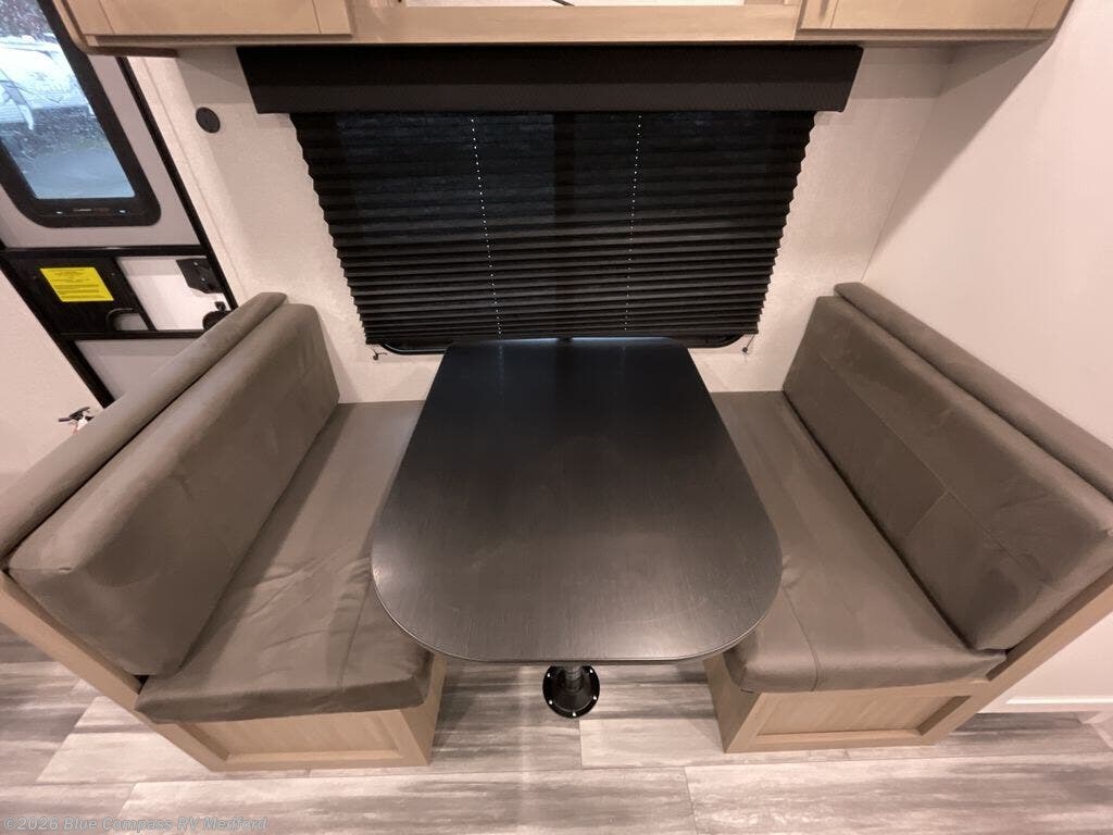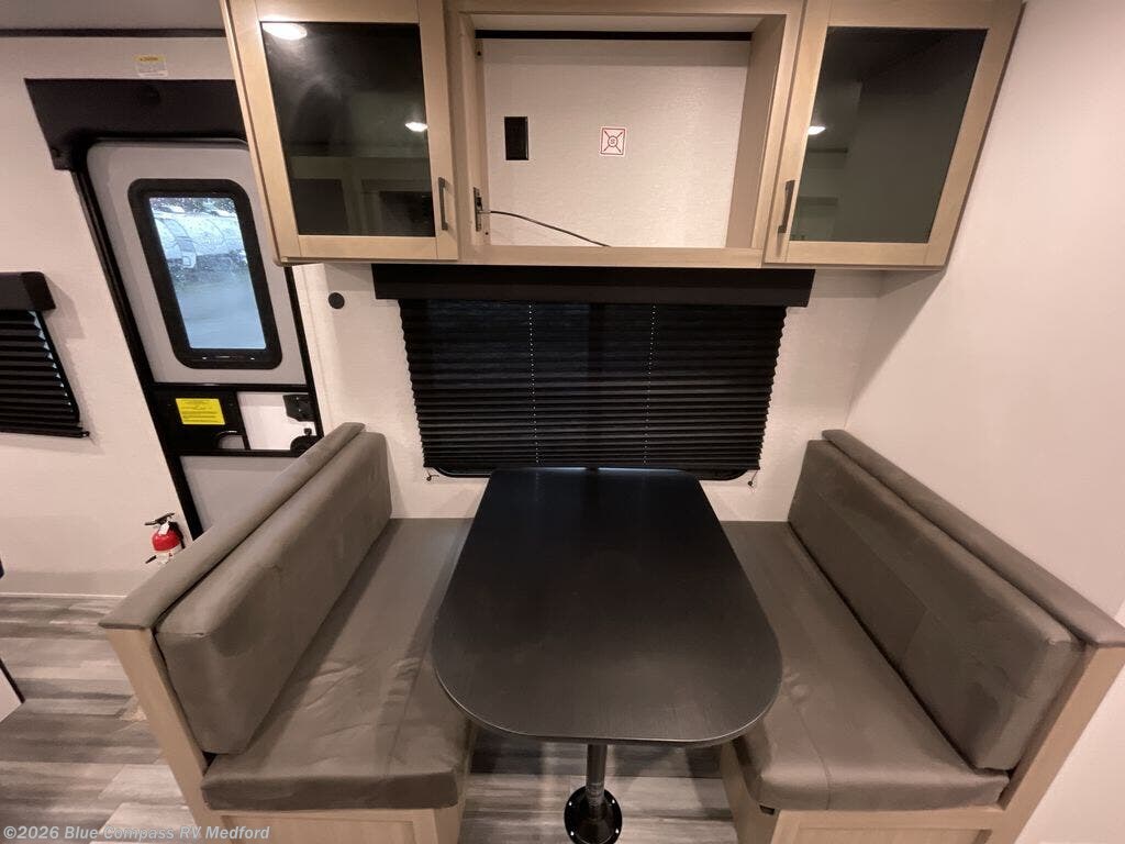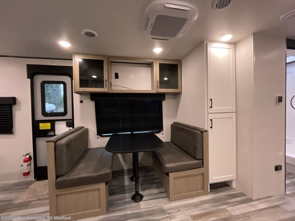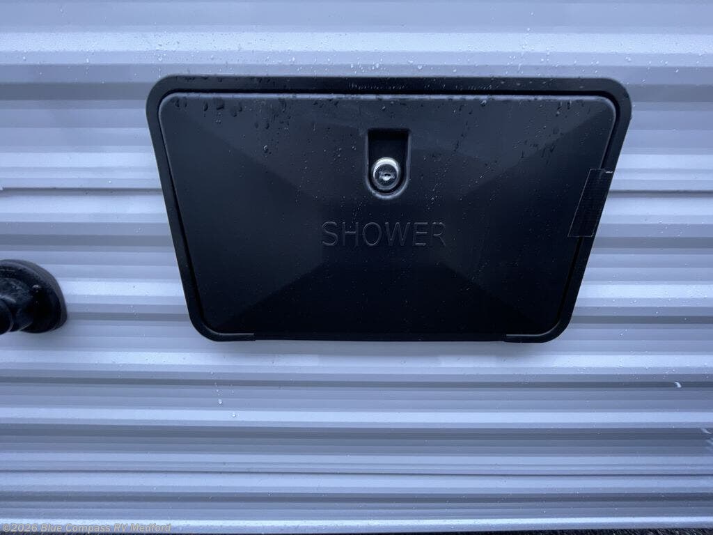 You will have a comfortable camping trip in this travel trailer! It offers full kitchen amenities including a pantry for snacks and such, plus a full rear corner bathroom for privacy and includes a shower. When you need a break, the semi-private bedroom up front offers a queen bed, dual wardrobes and a curtain to close, and the booth dinette can transform into a sleeping space as well. There is a 18' power awning with LED lights for you to enjoy this outdoor space into the night, plus exterior storage for your outdoor games and gear.