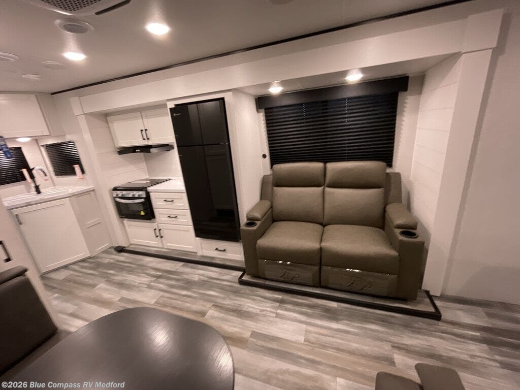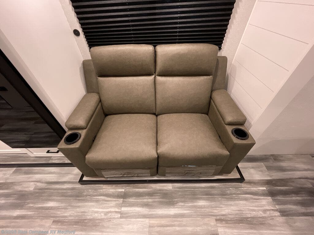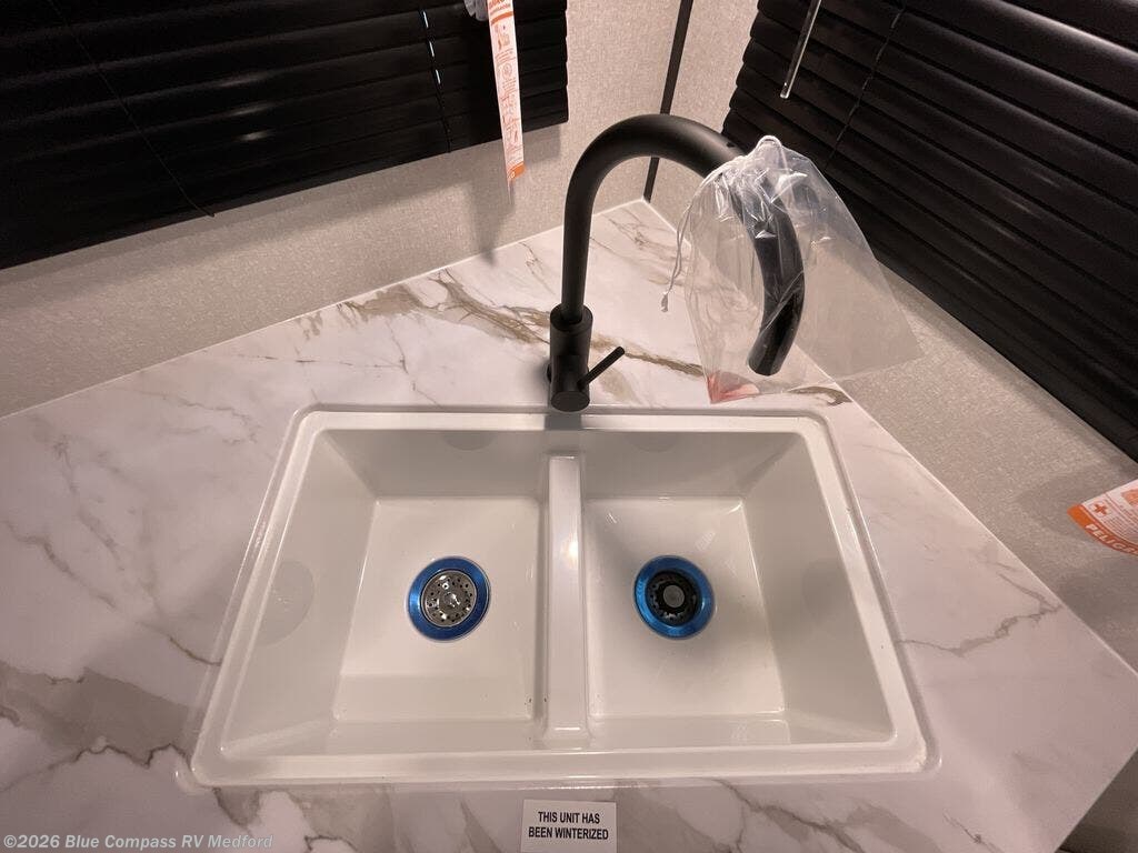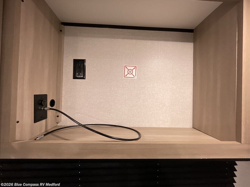You will have a comfortable camping trip in this travel trailer! It offers full kitchen amenities including a pantry for snacks and such, plus a full rear corner bathroom for privacy and includes a shower. When you need a break, the semi-private bedroom up front offers a queen bed, dual wardrobes and a curtain to close, and the booth dinette can transform into a sleeping space as well. There is a 18' power awning with LED lights for you to enjoy this outdoor space into the night, plus exterior storage for your outdoor games and gear.