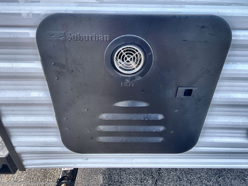 You can comfortably sleep eight to ten people in this trailer thanks to the double-size bunks, the 60" x 80" queen bed in the front bedroom, plus the booth dinette and jack-knife sofa in the main living area! The chef of your crew will have a two burner cooktop and microwave oven to prepare meals, and everyone can store their favorite drinks in the 12V refrigerator. The bathroom includes a 40" shower and a toilet, with the sink just outside of this room so others can brush their teeth if one is taking a shower before bed. The outside storage will let you bring along fishing poles and the 12' power awning will create a nice place to gather in the evenings!