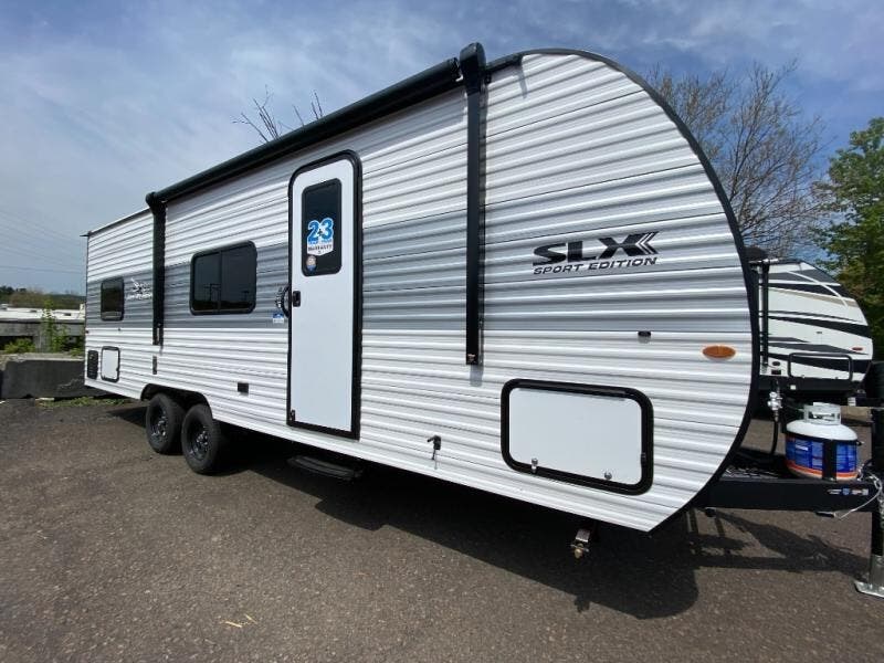The Jayco Jay Flight SLX travel trailer is quite easy to own because it is lightweight for an easier towing experience. Built on a fully integrated A-frame with galvanized-steel, impact-resistant wheel wells, the Jay Flight SLX has quality at its very foundation. That quality continues on to the electric self-adjusting brakes, easy-lube hubs, and a Magnum Truss roof system. Inside, you'll enjoy vinyl flooring throughout, solid hardwood cabinet doors, residential-style kitchen countertops and many more comforts!