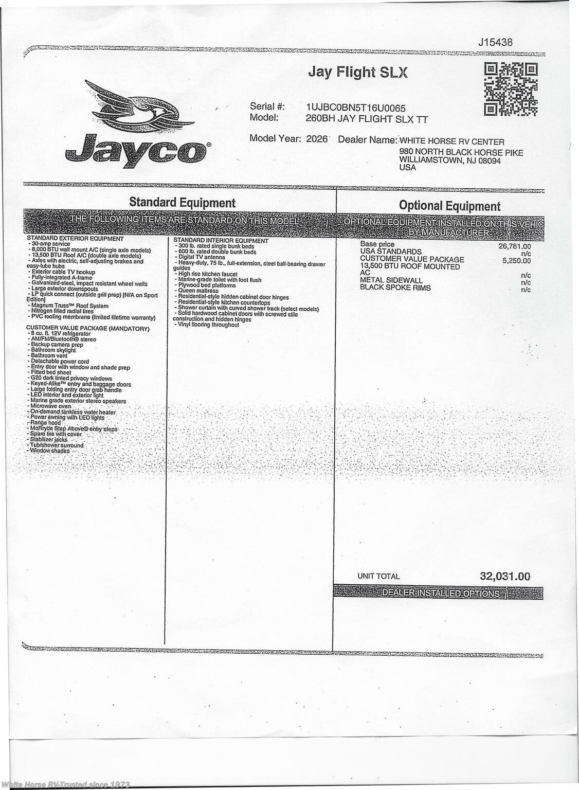 This Stock #J15438 is also in Classic Farmhouse Decor ... all backed by Jayco’s 2+3 year warranty! MSRP $32,031.