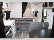 You can comfortably sleep eight to ten people in this trailer thanks to the double-size bunks, the RV queen bed in the front bedroom, plus the booth dinette and jack-knife sofa in the main living area! The chef of your crew will have a three burner cooktop and microwave oven to prepare meals, and everyone can store their favorite drinks in the 8 cu. ft. 12V refrigerator. The bathroom includes a shower and a toilet, with the sink just outside of this room so others can brush their teeth if one is taking a shower before bed. The outside storage will let you bring along fishing poles and the 16' power awning with LED lights will create a nice place to gather in the evenings!