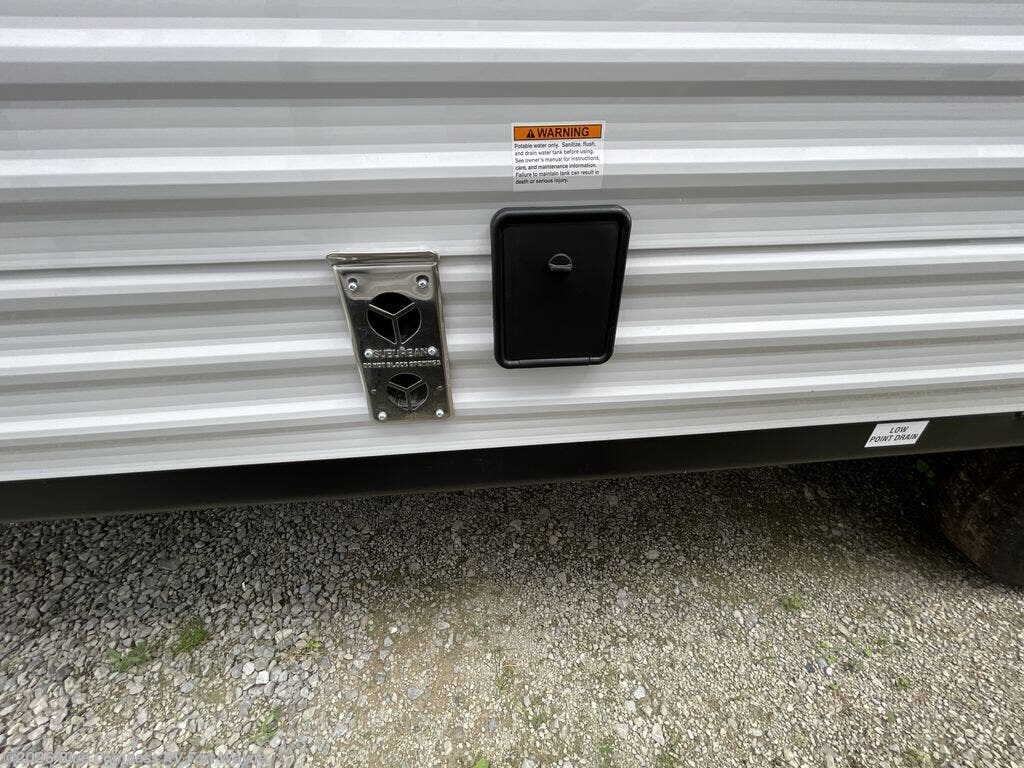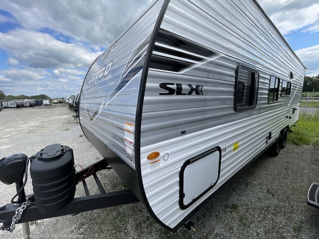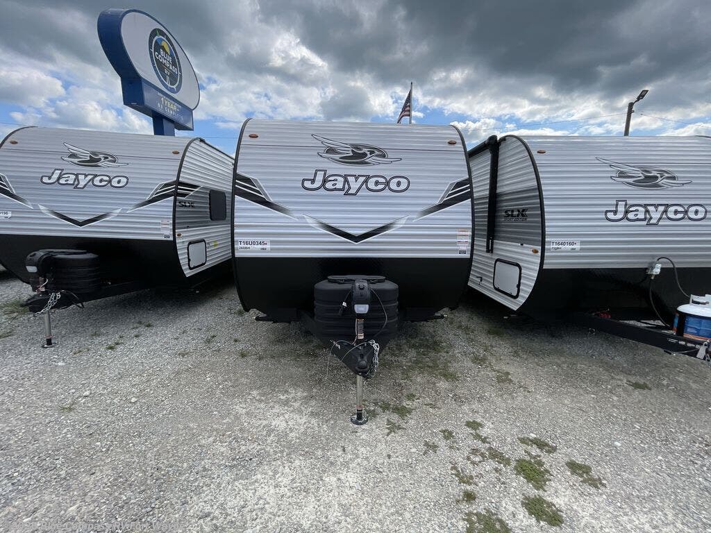 The Jayco Jay Flight SLX travel trailer is quite easy to own because it is lightweight for an easier towing experience. Built on a fully integrated A-frame with galvanized-steel, impact-resistant wheel wells, the Jay Flight SLX has quality at its very foundation. That quality continues on to the electric self-adjusting brakes, easy-lube hubs, Magnum Truss roof system, and LP quick connect. Some of what the mandatory Customer Value Package includes is backup camera prep, Keyed-Alike entry and baggage doors, and an on-demand tankless water heater.
