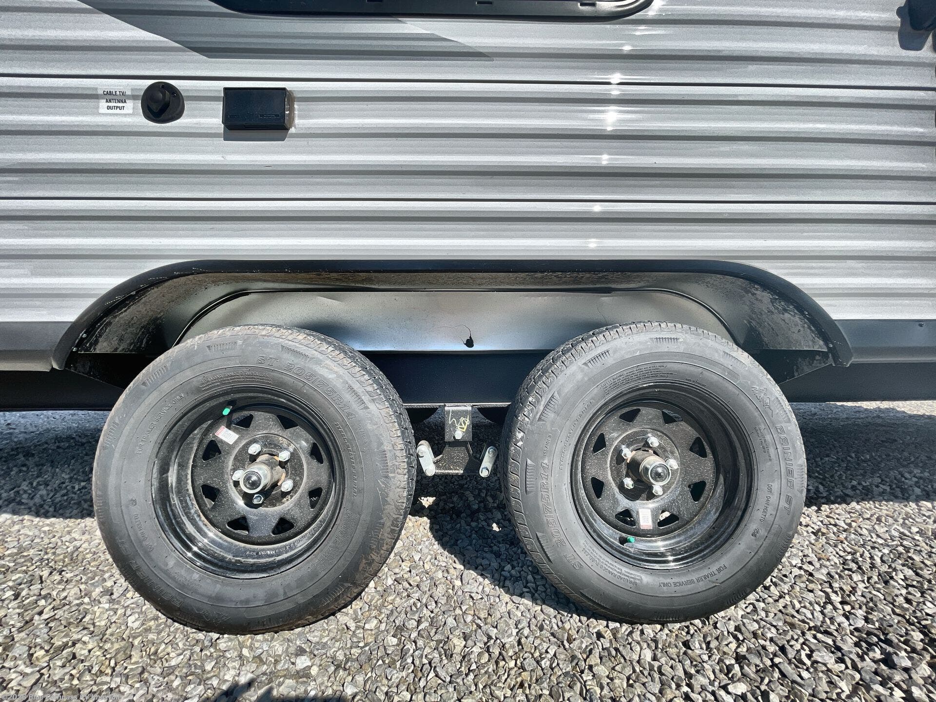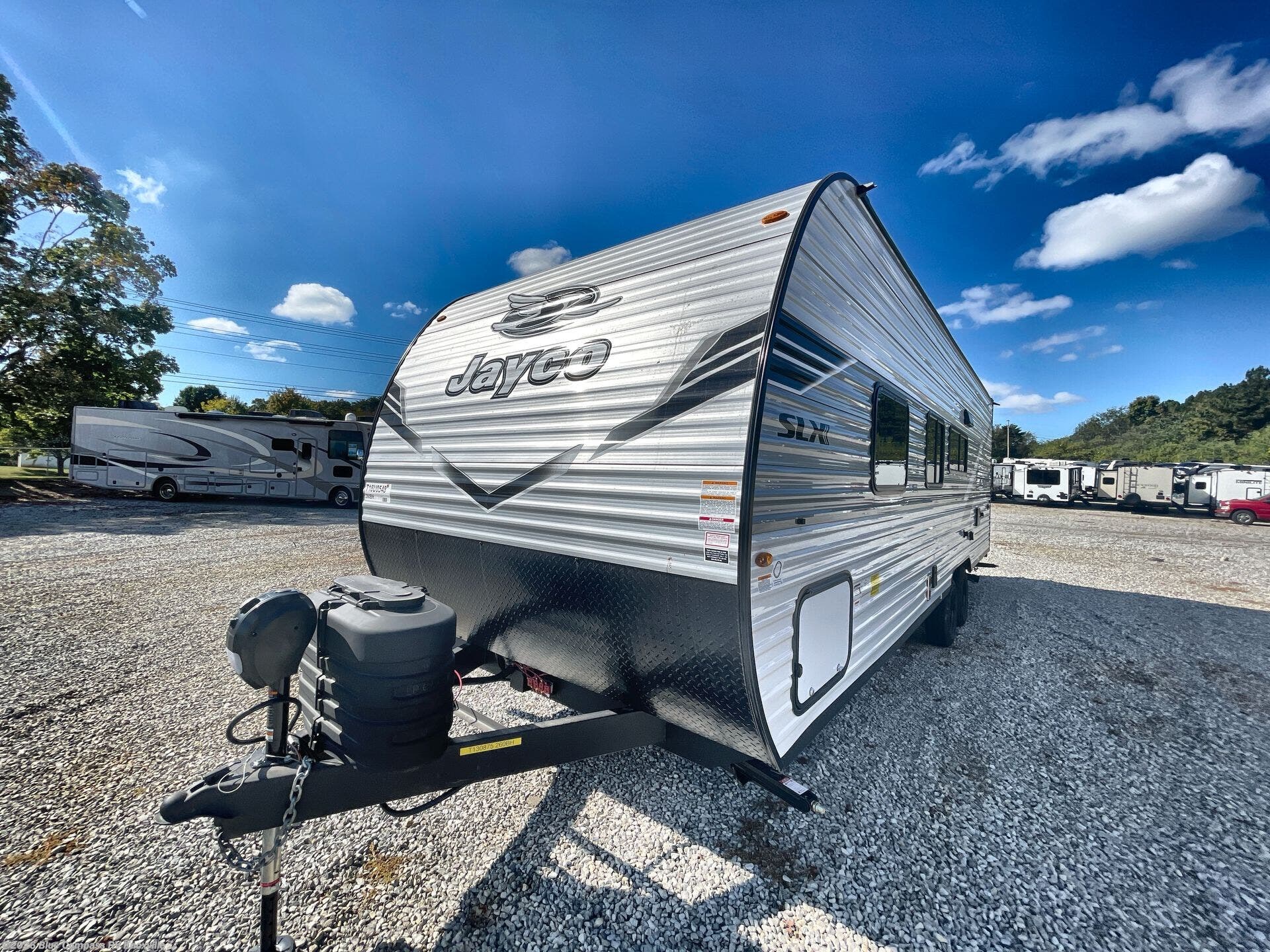 The Jayco Jay Flight SLX travel trailer is quite easy to own because it is lightweight for an easier towing experience. Built on a fully integrated A-frame with galvanized-steel, impact-resistant wheel wells, the Jay Flight SLX has quality at its very foundation. That quality continues on to the electric self-adjusting brakes, easy-lube hubs, Magnum Truss roof system, and LP quick connect. Some of what the mandatory Customer Value Package includes is backup camera prep, Keyed-Alike entry and baggage doors, and an on-demand tankless water heater.