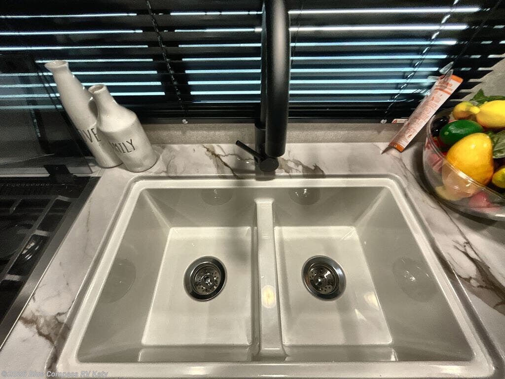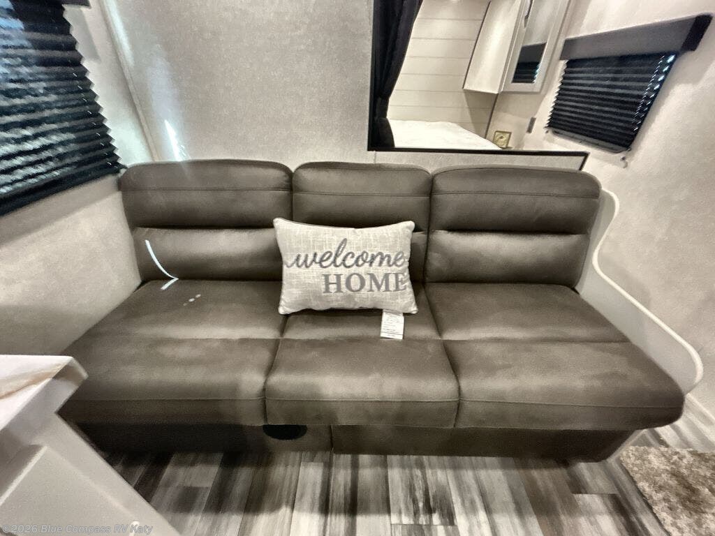You can comfortably sleep eight to ten people in this trailer thanks to the double-size bunks, the RV queen bed in the front bedroom, plus the booth dinette and jack-knife sofa in the main living area! The chef of your crew will have a three burner cooktop and microwave oven to prepare meals, and everyone can store their favorite drinks in the 8 cu. ft. 12V refrigerator. The bathroom includes a shower and a toilet, with the sink just outside of this room so others can brush their teeth if one is taking a shower before bed. The outside storage will let you bring along fishing poles and the 16' power awning with LED lights will create a nice place to gather in the evenings!