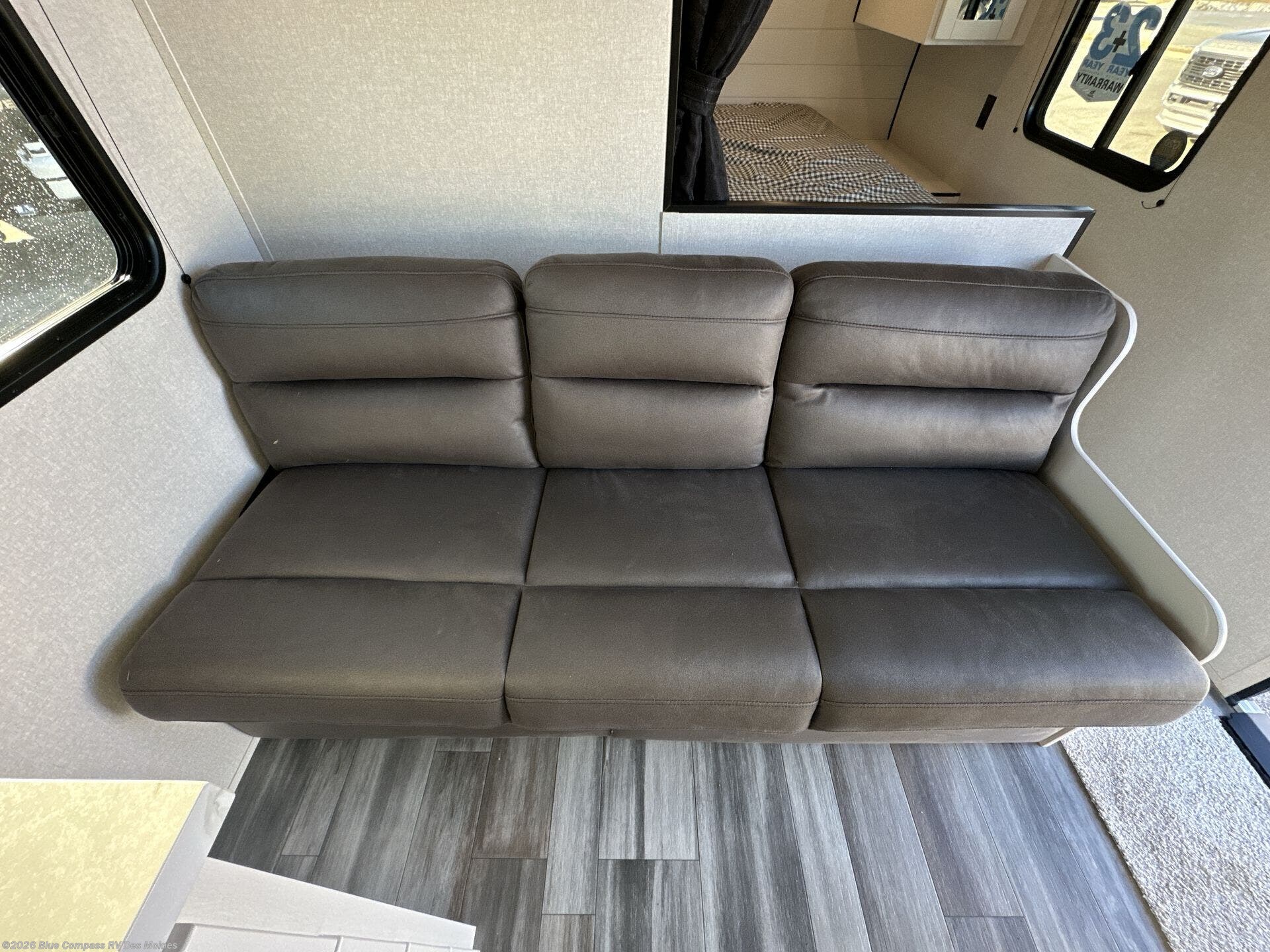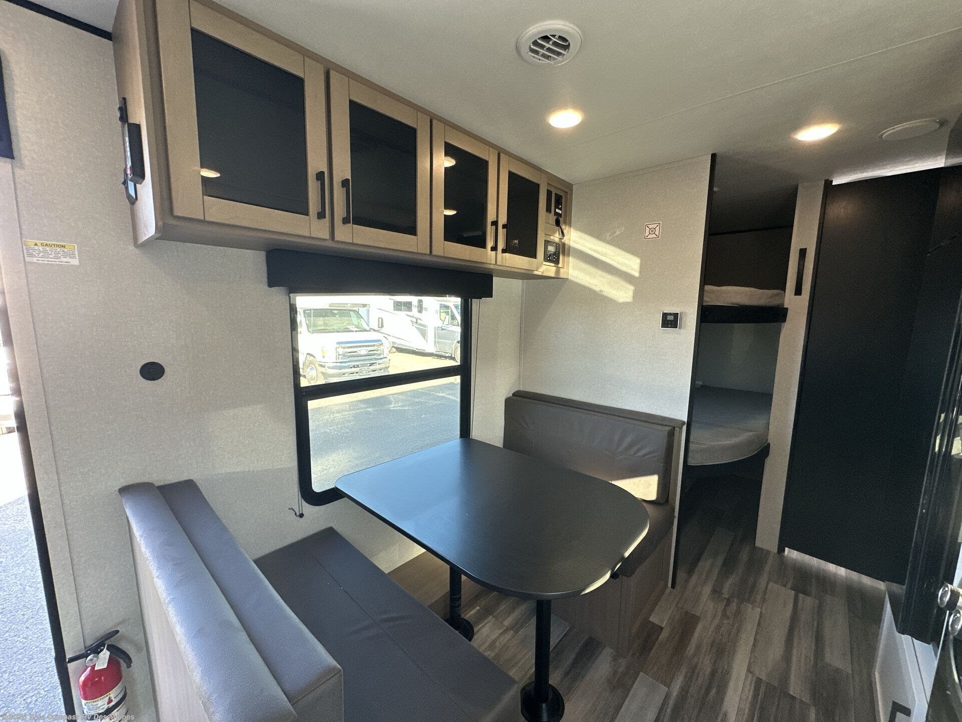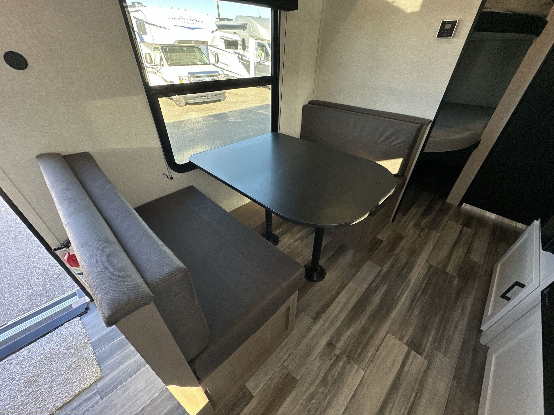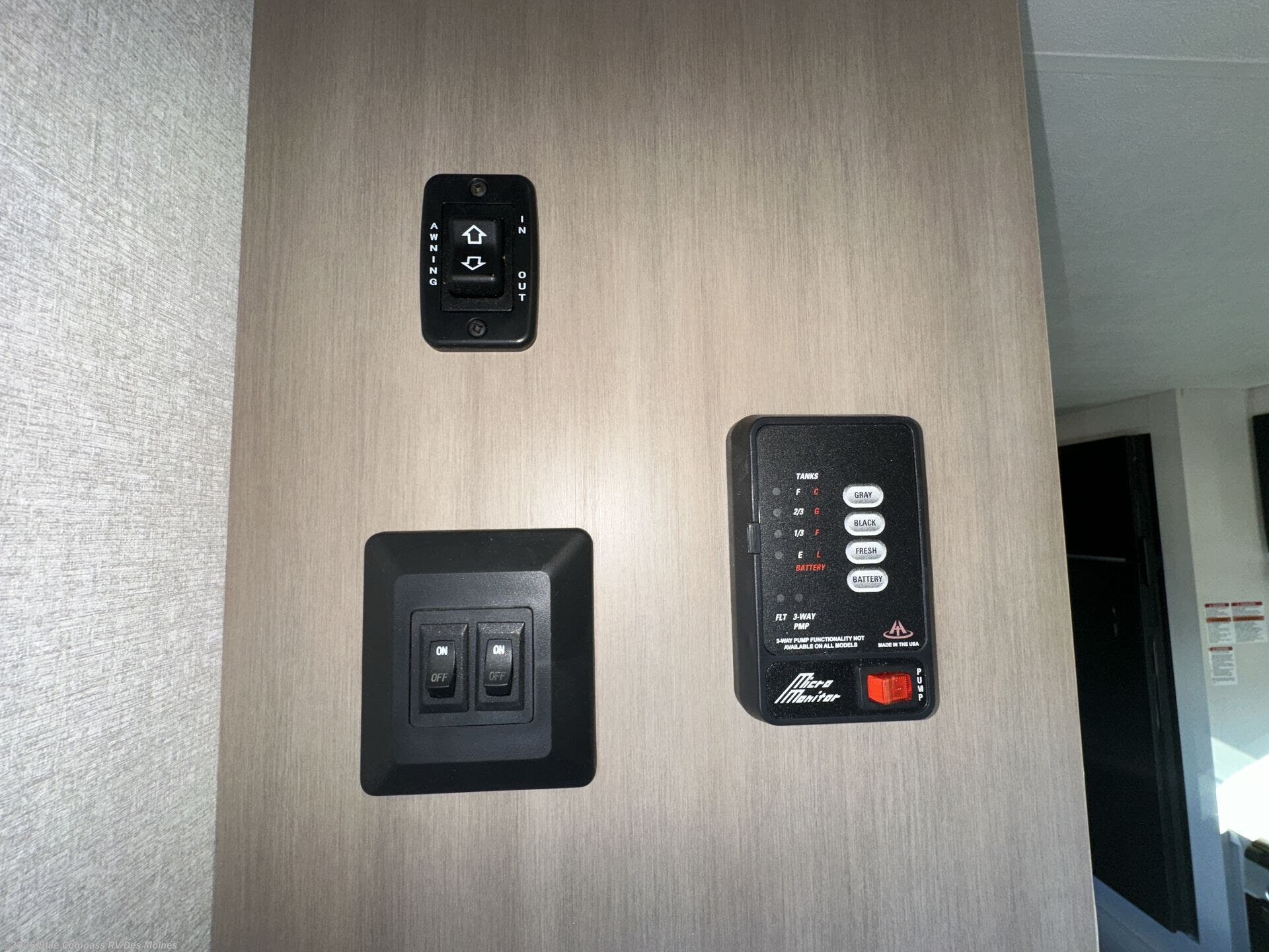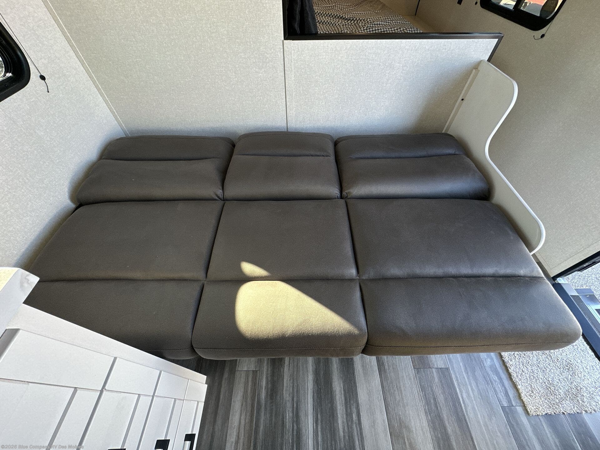 You can comfortably sleep eight to ten people in this trailer thanks to the double-size bunks, the RV queen bed in the front bedroom, plus the booth dinette and jack-knife sofa in the main living area! The chef of your crew will have a three burner cooktop and microwave oven to prepare meals, and everyone can store their favorite drinks in the 8 cu. ft. 12V refrigerator. The bathroom includes a shower and a toilet, with the sink just outside of this room so others can brush their teeth if one is taking a shower before bed. The outside storage will let you bring along fishing poles and the 16' power awning with LED lights will create a nice place to gather in the evenings!