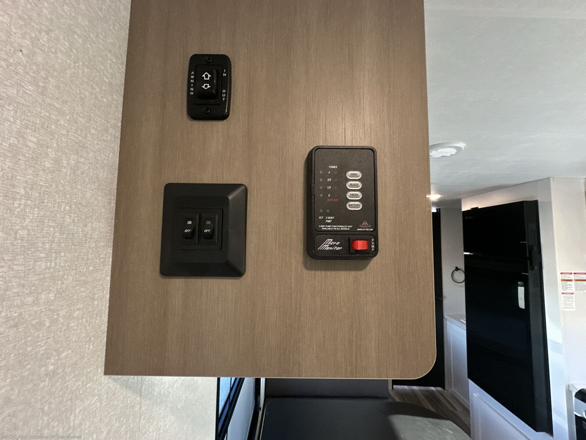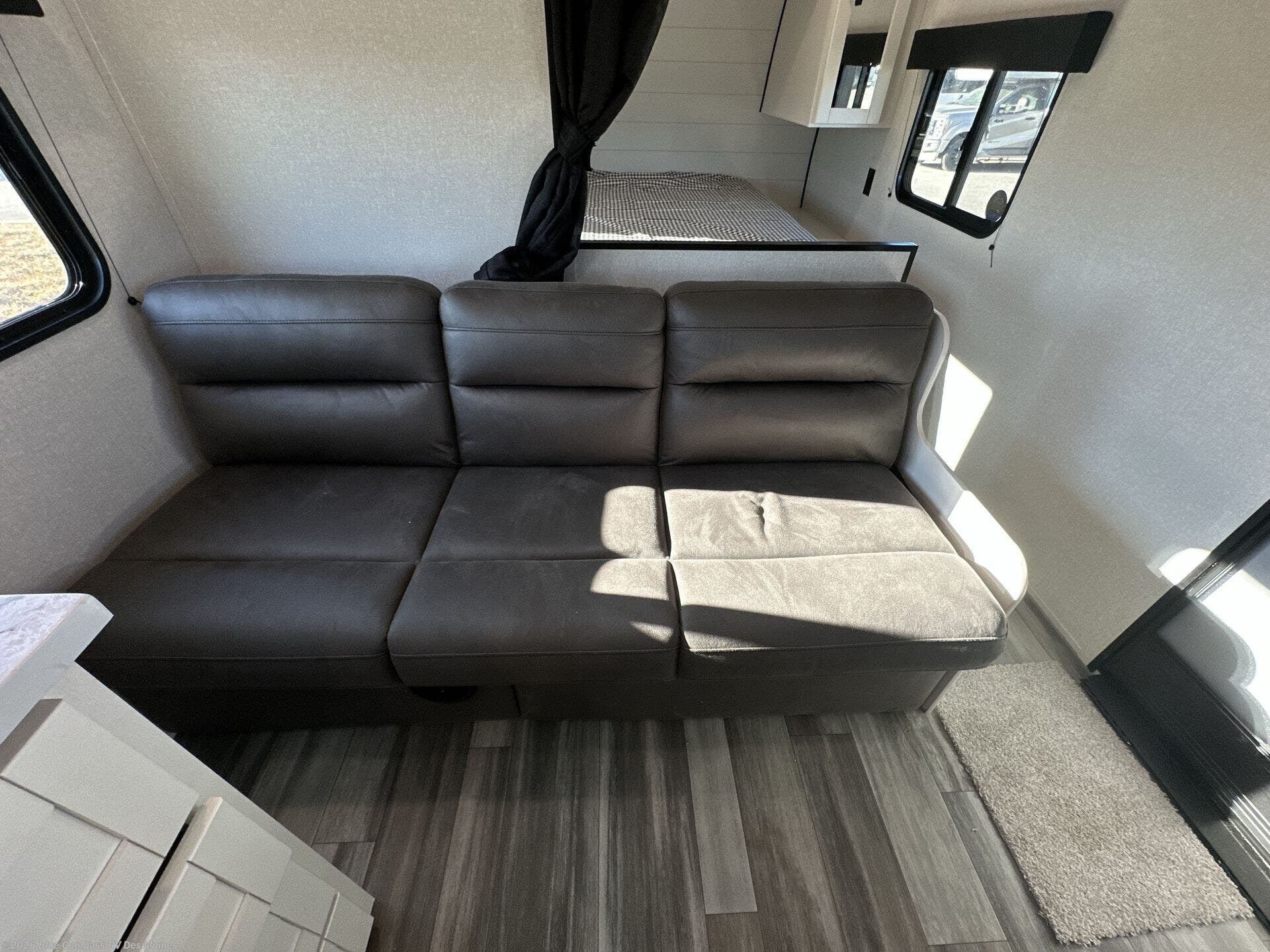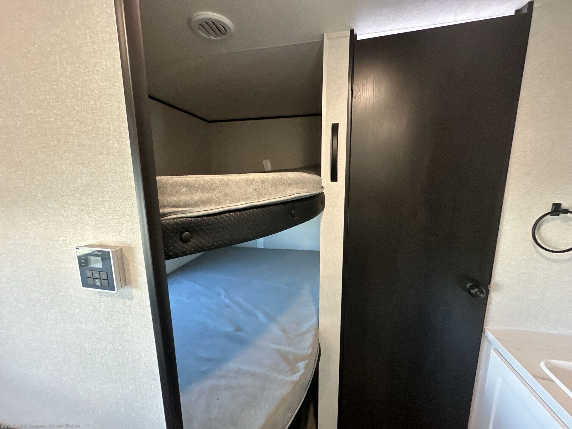 You can comfortably sleep eight to ten people in this trailer thanks to the double-size bunks, the RV queen bed in the front bedroom, plus the booth dinette and jack-knife sofa in the main living area! The chef of your crew will have a three burner cooktop and microwave oven to prepare meals, and everyone can store their favorite drinks in the 8 cu. ft. 12V refrigerator. The bathroom includes a shower and a toilet, with the sink just outside of this room so others can brush their teeth if one is taking a shower before bed. The outside storage will let you bring along fishing poles and the 16' power awning with LED lights will create a nice place to gather in the evenings!