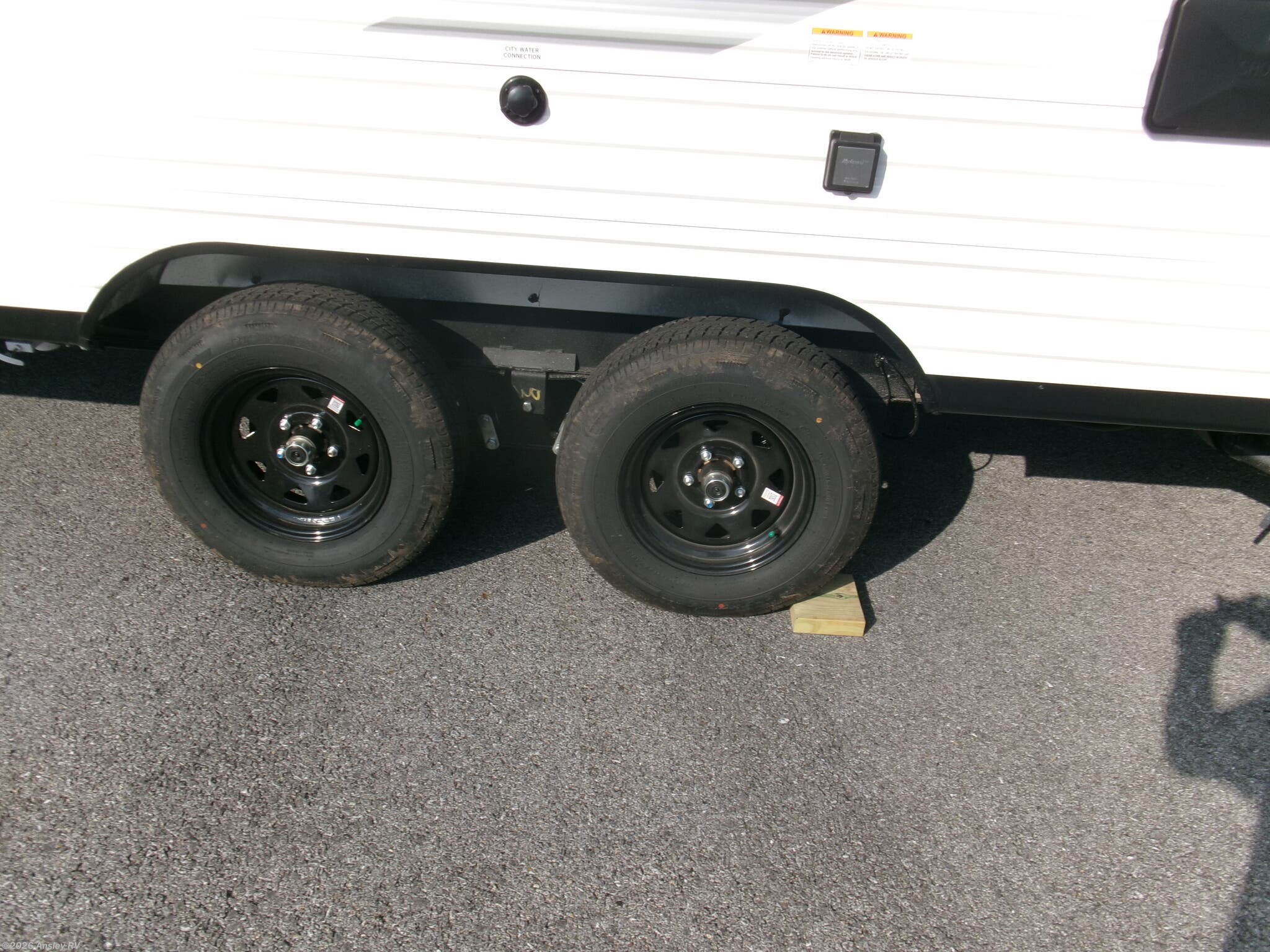 The Jayco Jay Flight SLX travel trailer is quite easy to own because it is lightweight for an easier towing experience. Built on a fully integrated A-frame with galvanized-steel, impact-resistant wheel wells, the Jay Flight SLX has quality at its very foundation. That quality continues on to the electric self-adjusting brakes, easy-lube hubs, Magnum Truss roof system, and LP quick connect. Some of what the mandatory Customer Value Package includes is backup camera prep, Keyed-Alike entry and baggage doors, and an on-demand tankless water heater.