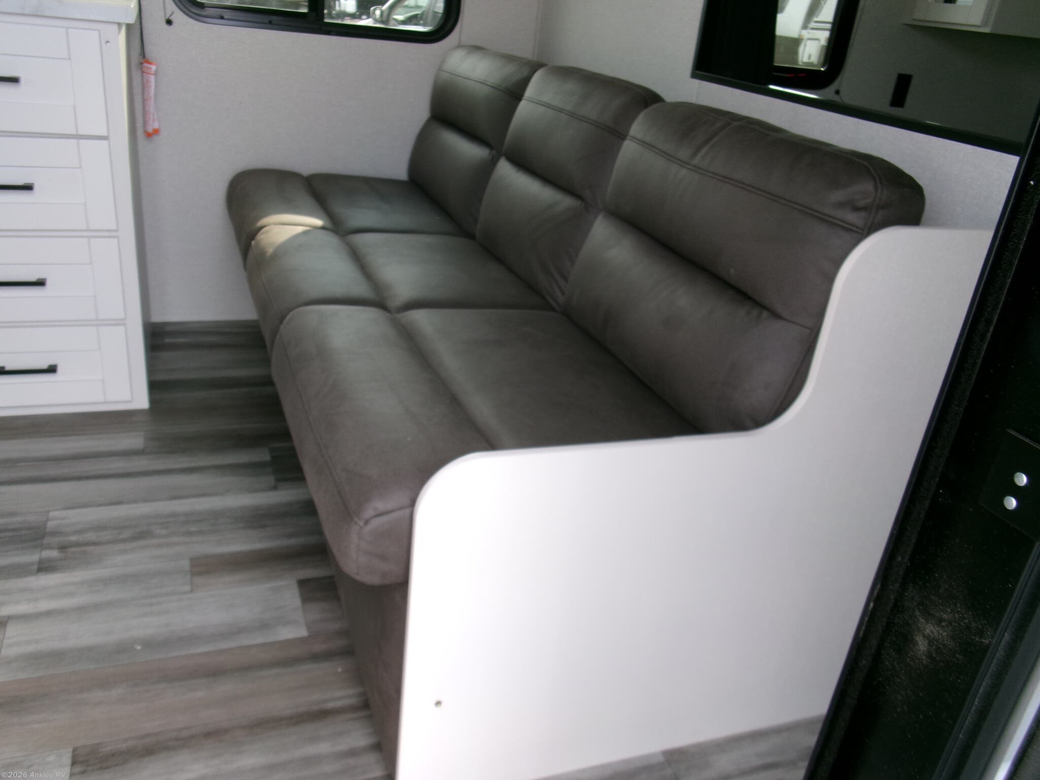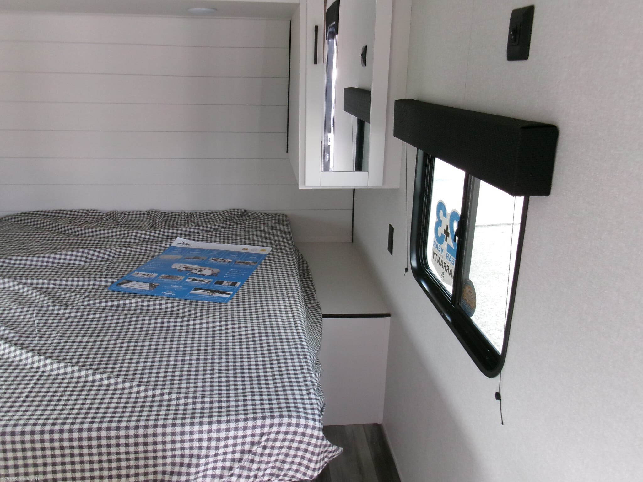 ou can comfortably sleep eight to ten people in this trailer thanks to the double-size bunks, the RV queen bed in the front bedroom, plus the booth dinette and jack-knife sofa in the main living area! The chef of your crew will have a three burner cooktop and microwave oven to prepare meals, and everyone can store their favorite drinks in the 8 cu. ft. 12V refrigerator. The bathroom includes a shower and a toilet, with the sink just outside of this room so others can brush their teeth if one is taking a shower before bed. The outside storage will let you bring along fishing poles and the 16' power awning with LED lights will create a nice place to gather in the evenings!