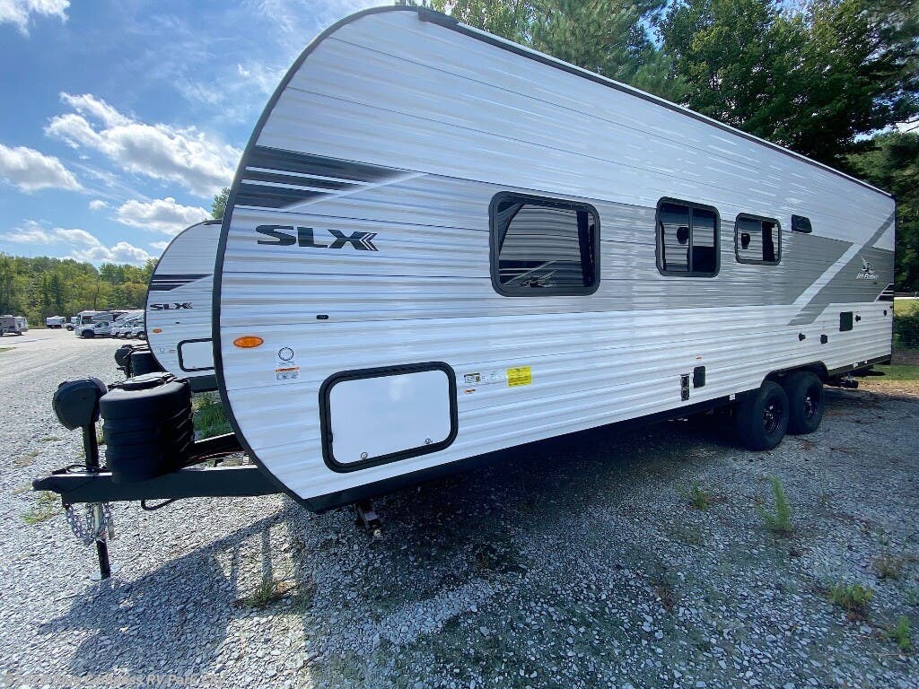 The Jayco Jay Flight SLX travel trailer is quite easy to own because it is lightweight for an easier towing experience. Built on a fully integrated A-frame with galvanized-steel, impact-resistant wheel wells, the Jay Flight SLX has quality at its very foundation. That quality continues on to the electric self-adjusting brakes, easy-lube hubs, Magnum Truss roof system, and LP quick connect. Some of what the mandatory Customer Value Package includes is backup camera prep, Keyed-Alike entry and baggage doors, and an on-demand tankless water heater.