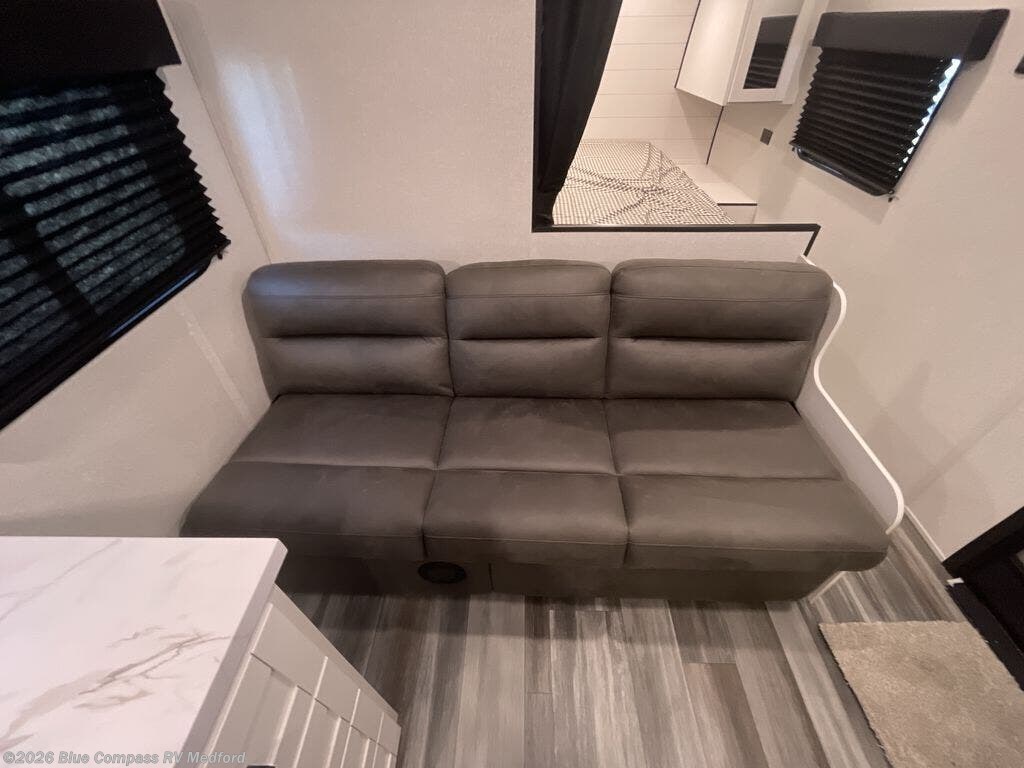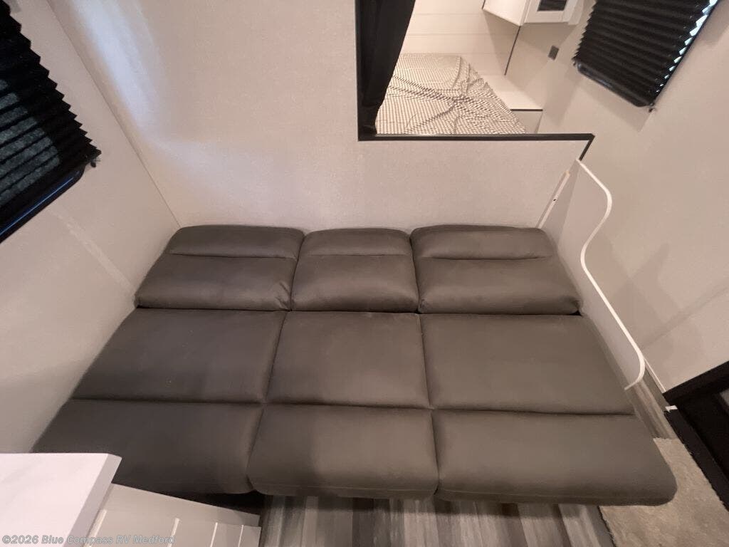 You can comfortably sleep up to eight people in this trailer thanks to the double-size bunks, the RV queen bed in the front bedroom, plus the booth dinette and jack-knife sofa in the main living area! The chef of your crew will have a three burner cooktop and microwave oven to prepare meals, and everyone can store their favorite drinks in the 8 cu. ft. 12V refrigerator. The bathroom includes a shower and a toilet, with the sink just outside of this room so others can brush their teeth if one is taking a shower before bed. The outside storage will let you bring along fishing poles and the 16' power awning with LED lights will create a nice place to gather in the evenings!