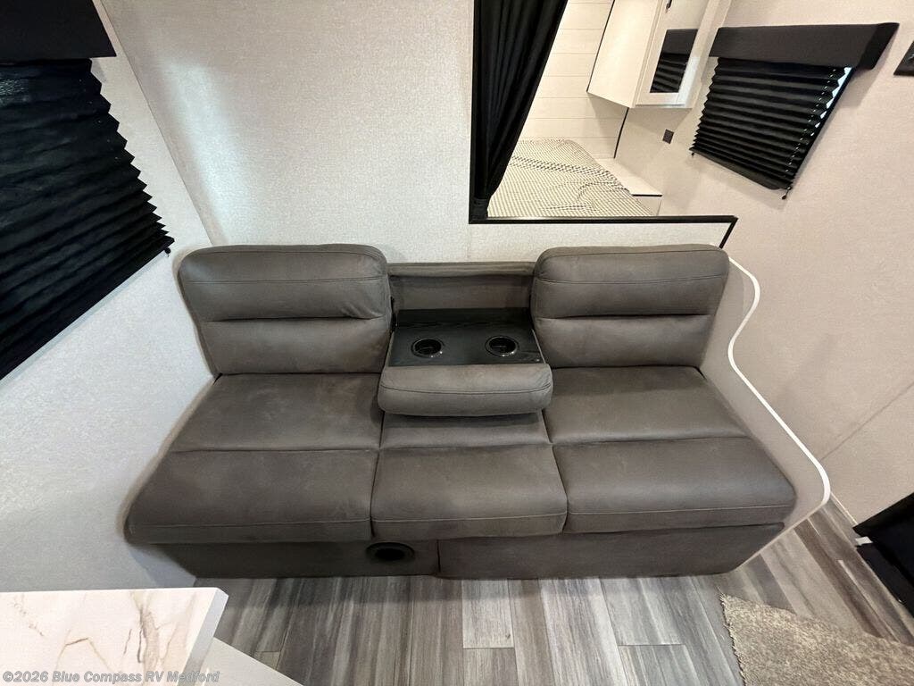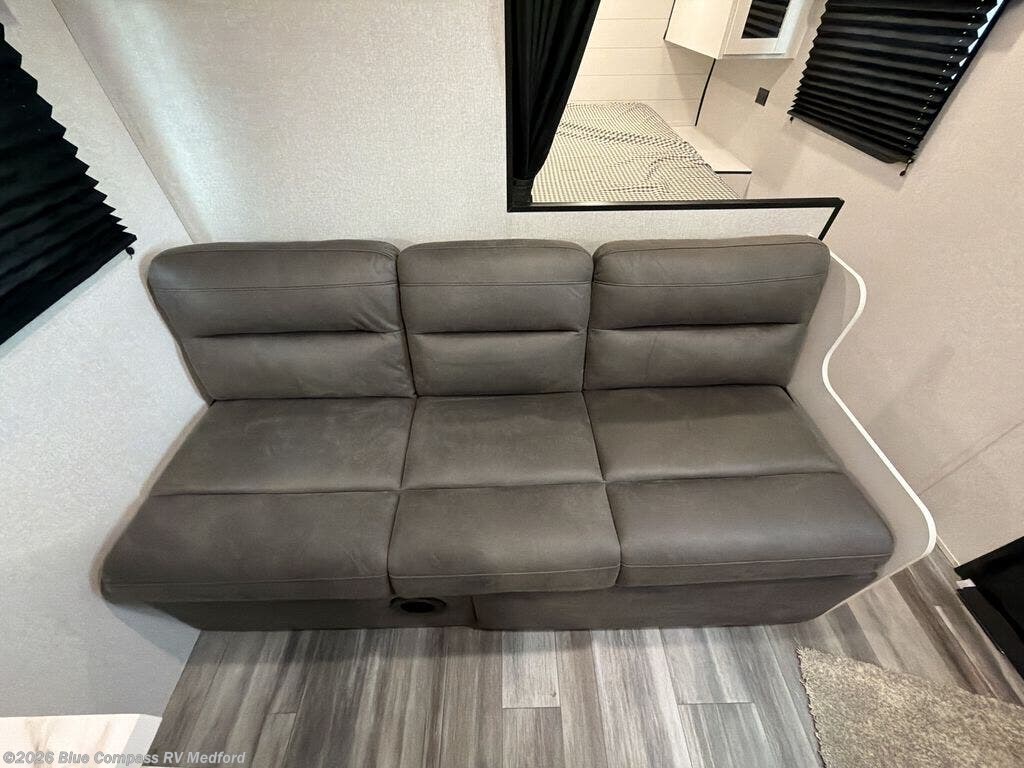You can comfortably sleep up to eight people in this trailer thanks to the double-size bunks, the RV queen bed in the front bedroom, plus the booth dinette and jack-knife sofa in the main living area! The chef of your crew will have a three burner cooktop and microwave oven to prepare meals, and everyone can store their favorite drinks in the 8 cu. ft. 12V refrigerator. The bathroom includes a shower and a toilet, with the sink just outside of this room so others can brush their teeth if one is taking a shower before bed. The outside storage will let you bring along fishing poles and the 16' power awning with LED lights will create a nice place to gather in the evenings!