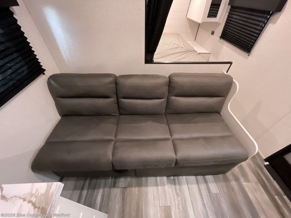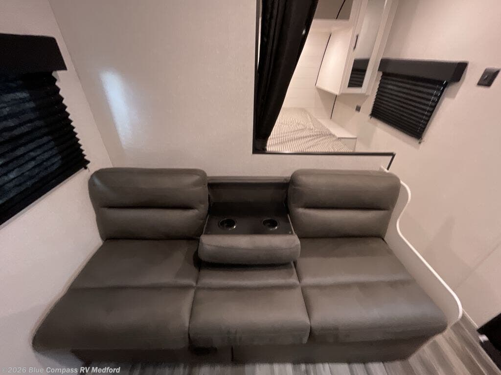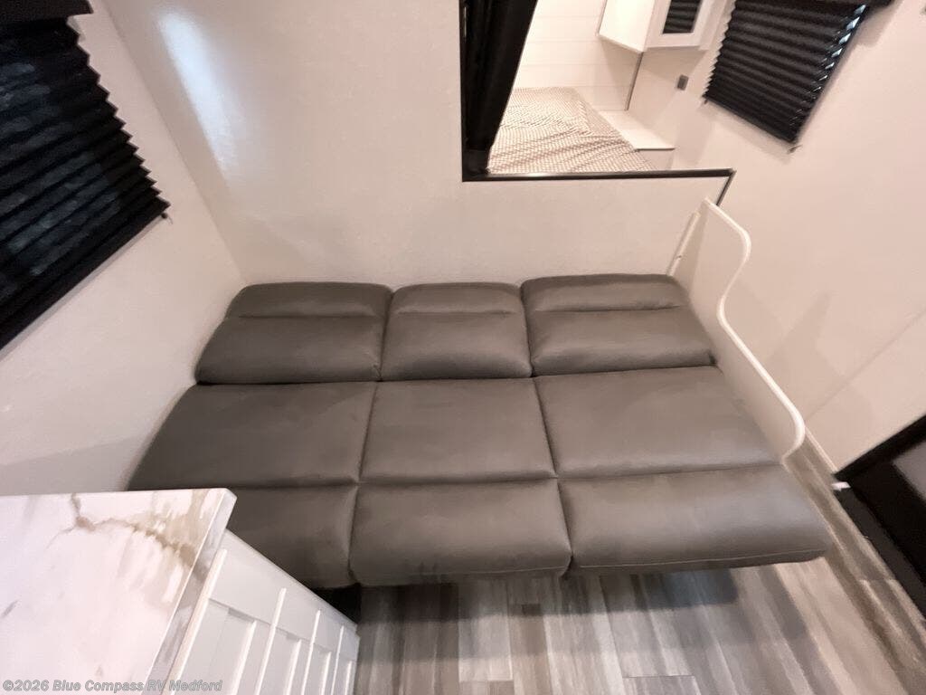 You can comfortably sleep up to eight people in this trailer thanks to the double-size bunks, the RV queen bed in the front bedroom, plus the booth dinette and jack-knife sofa in the main living area! The chef of your crew will have a three burner cooktop and microwave oven to prepare meals, and everyone can store their favorite drinks in the 8 cu. ft. 12V refrigerator. The bathroom includes a shower and a toilet, with the sink just outside of this room so others can brush their teeth if one is taking a shower before bed. The outside storage will let you bring along fishing poles and the 16' power awning with LED lights will create a nice place to gather in the evenings!