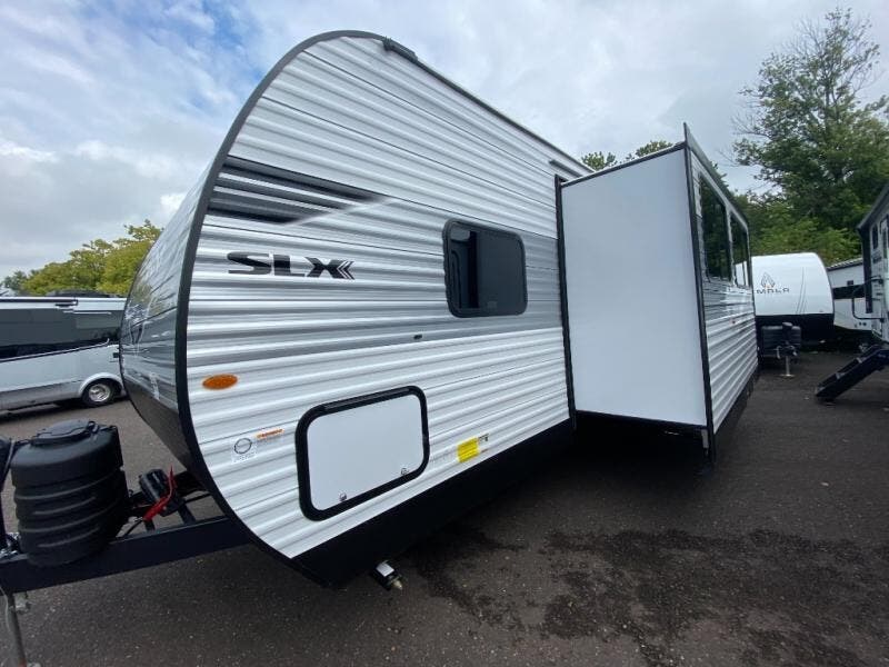 The Jayco Jay Flight SLX travel trailer is quite easy to own because it is lightweight for an easier towing experience. Built on a fully integrated A-frame with galvanized-steel, impact-resistant wheel wells, the Jay Flight SLX has quality at its very foundation. That quality continues on to the electric self-adjusting brakes, easy-lube hubs, Magnum Truss roof system, and LP quick connect. Some of what the mandatory Customer Value Package includes is backup camera prep, Keyed-Alike entry and baggage doors, and an on-demand tankless water heater.