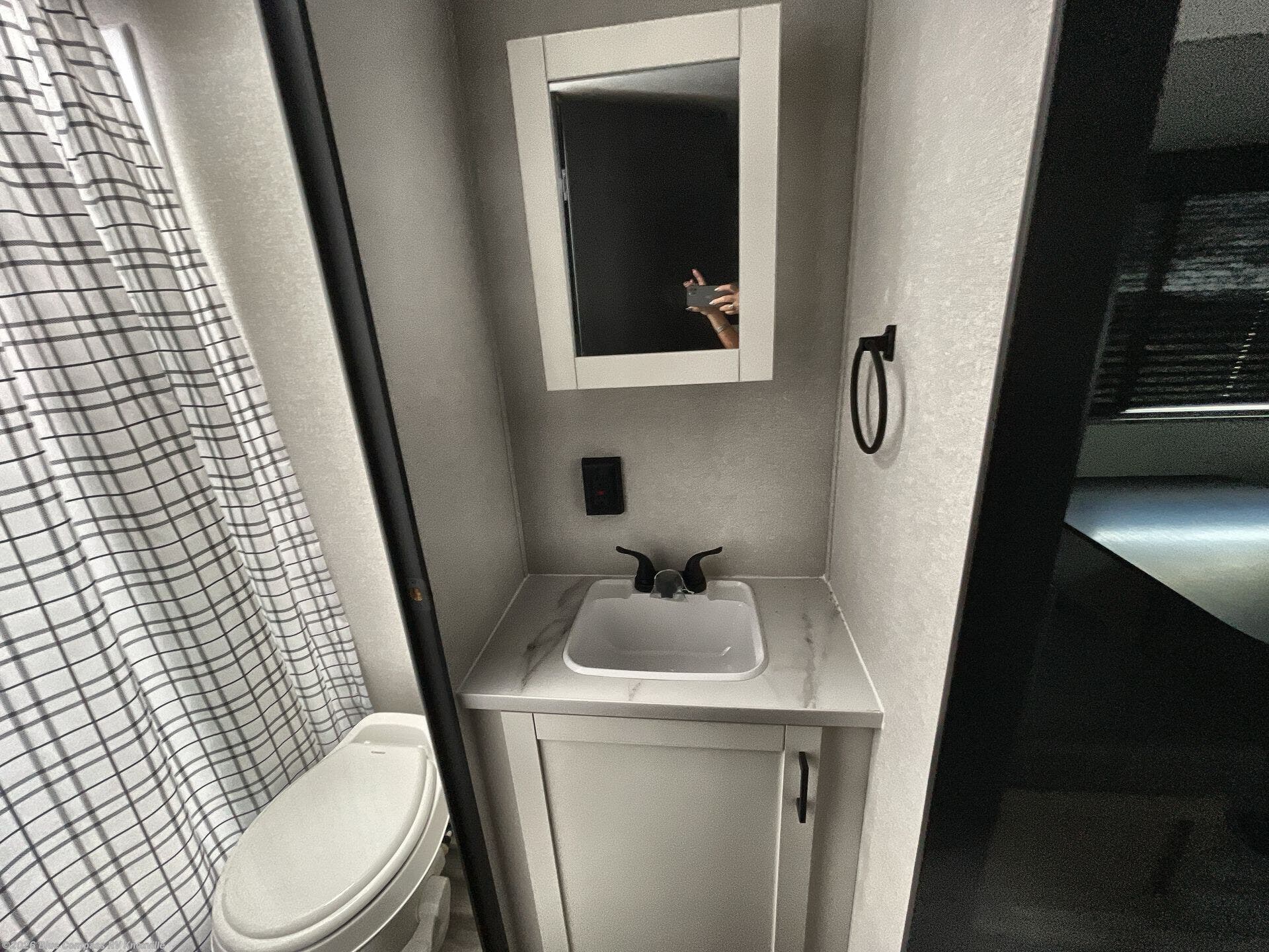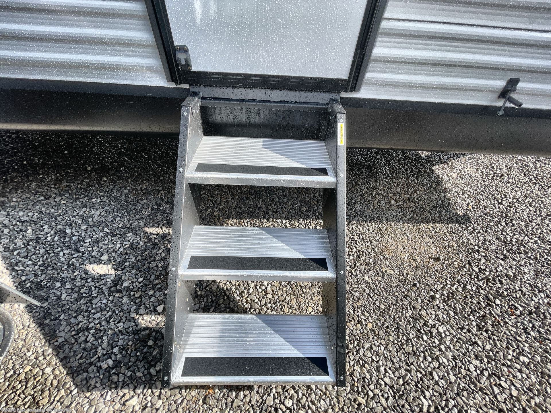 You can comfortably sleep up to ten people in this trailer thanks to the double-size bunks in back, the RV queen bed in the front bedroom, plus the booth dinette and jack-knife sofa in the main living area! The chef of your crew will have a three burner cooktop and microwave oven to prepare meals, and everyone can store their favorite drinks in the 8 cu. ft. 12V refrigerator inside, or in the outdoor refrigerator for convenience. The rear corner bathroom includes a shower and a toilet, with the sink just outside of this room so others can brush their teeth if one is taking a shower before bed. The outside storage is accessible on both sides of the unit and will easily allow you bring along camp chairs, yard games and more. A 16' powered awning with LED lights will create a nice place to gather in the evenings with family and friends!