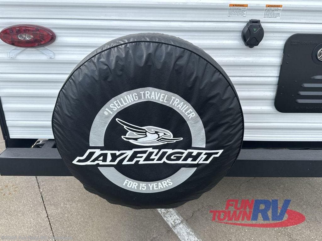 The Jayco Jay Flight SLX travel trailer is quite easy to own because it is lightweight for an easier towing experience. Built on a fully integrated A-frame with galvanized-steel, impact-resistant wheel wells, the Jay Flight SLX has quality at its very foundation. That quality continues on to the electric self-adjusting brakes, easy-lube hubs, Magnum Truss roof system, and LP quick connect. Some of what the mandatory Customer Value Package includes is backup camera prep, Keyed-Alike entry and baggage doors, and an on-demand tankless water heater.