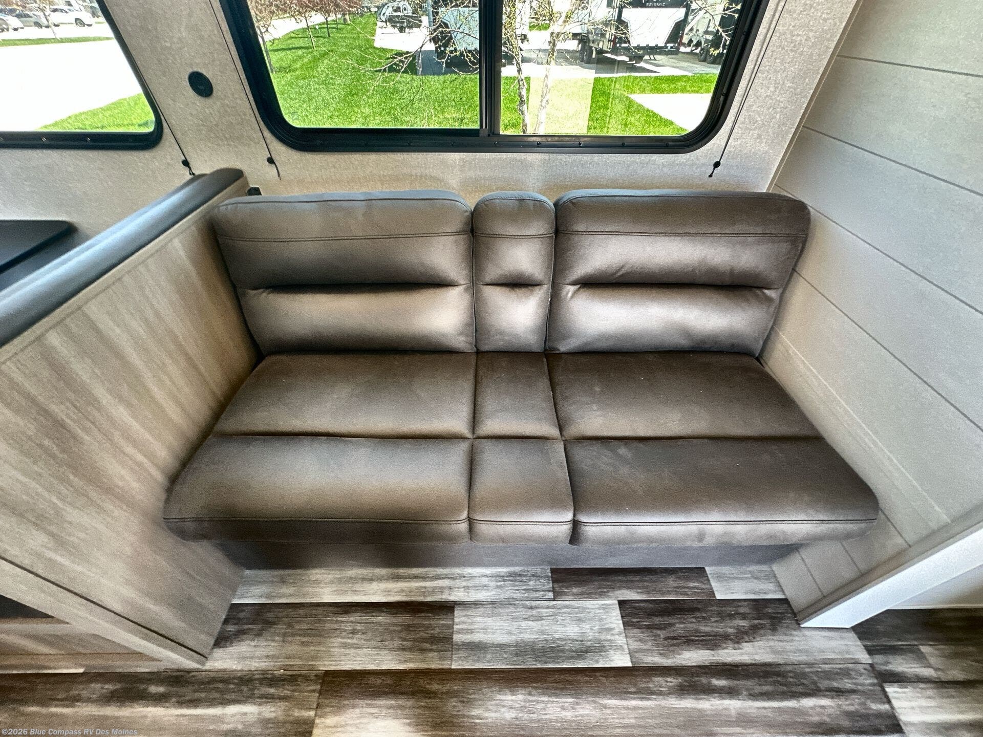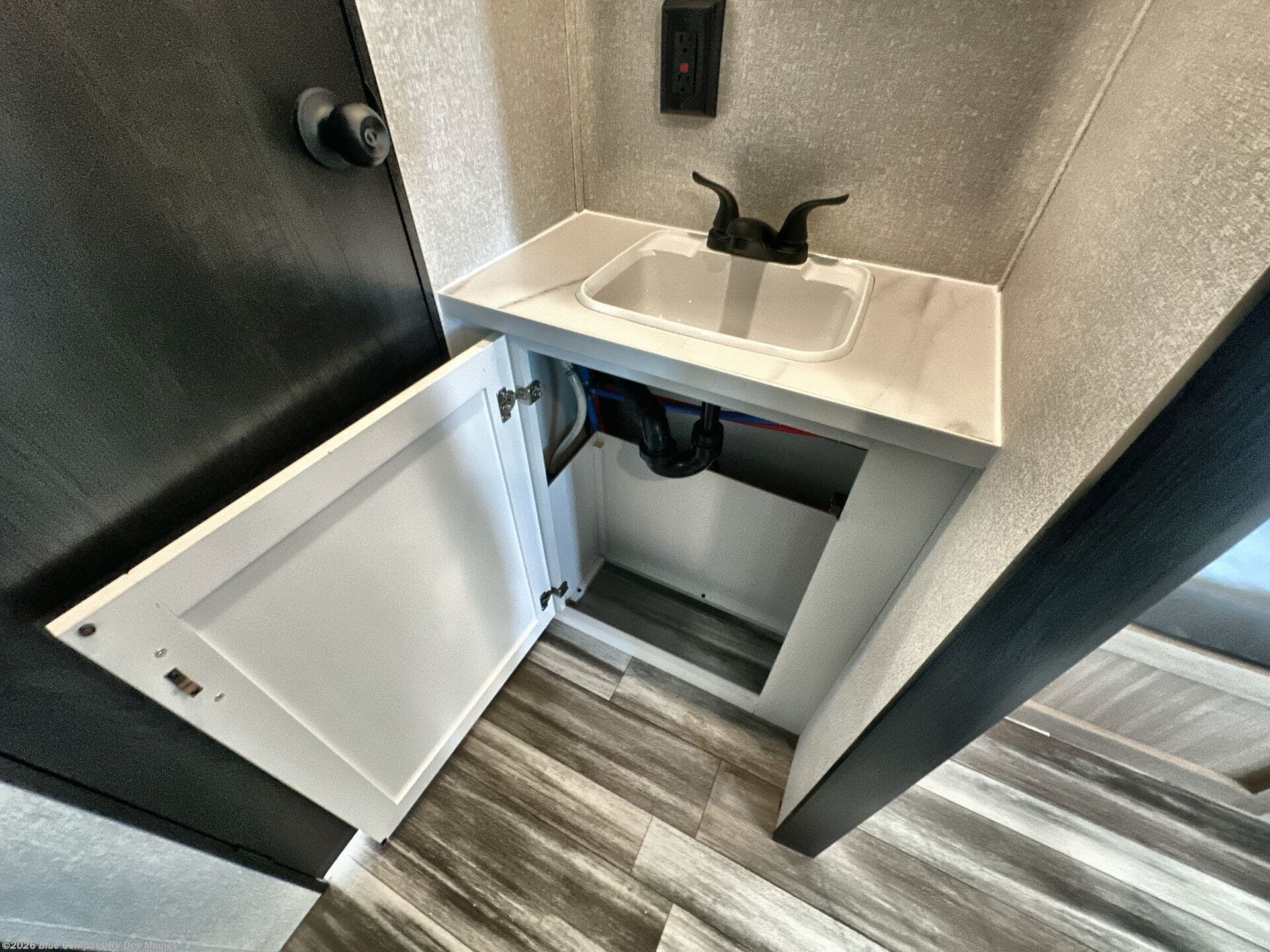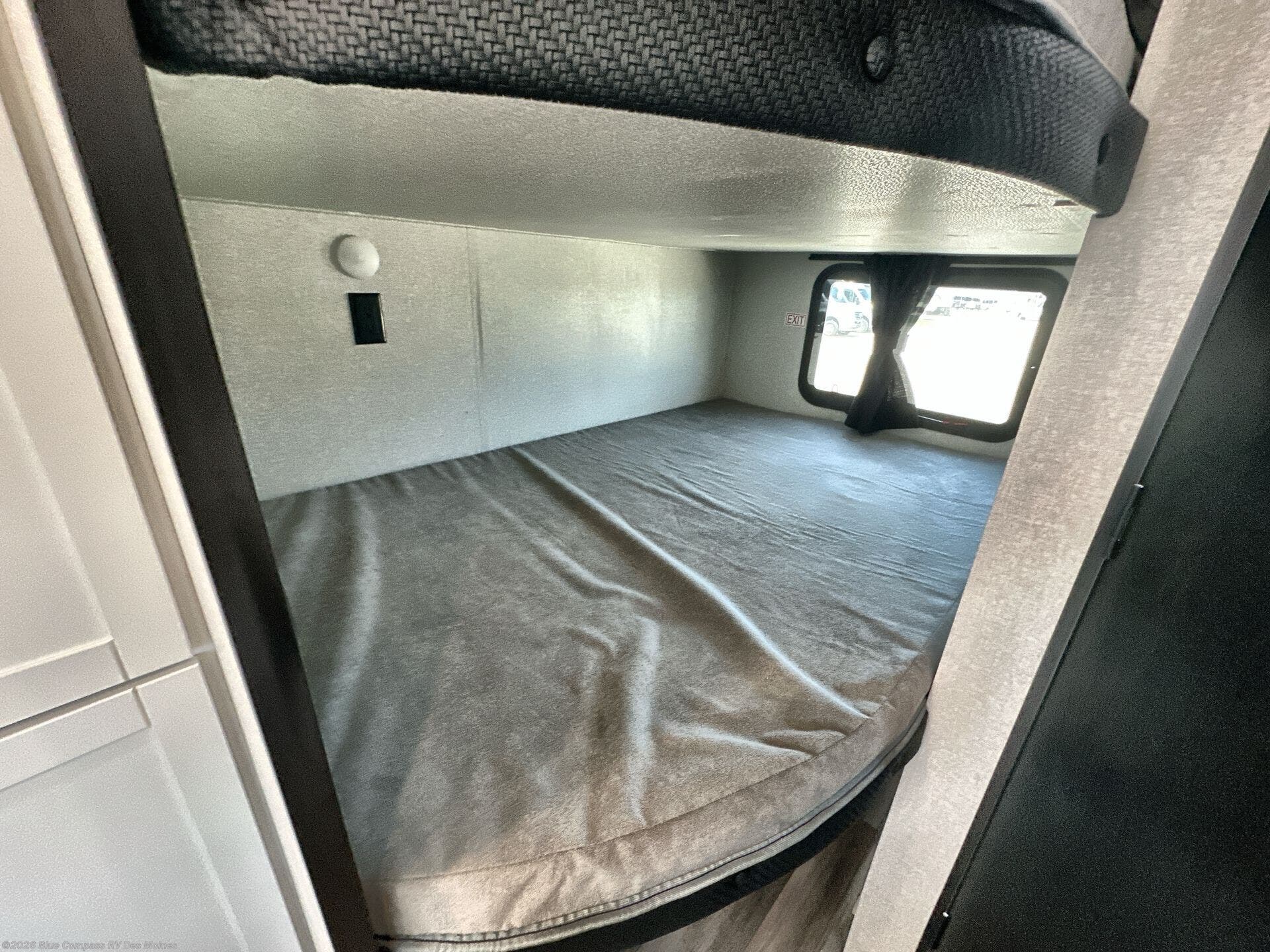 You can comfortably sleep up to ten people in this trailer thanks to the double-size bunks in back, the RV queen bed in the front bedroom, plus the booth dinette and jack-knife sofa in the main living area! The chef of your crew will have a three burner cooktop and microwave oven to prepare meals, and everyone can store their favorite drinks in the 8 cu. ft. 12V refrigerator inside, or in the outdoor refrigerator for convenience. The rear corner bathroom includes a shower and a toilet, with the sink just outside of this room so others can brush their teeth if one is taking a shower before bed. The outside storage is accessible on both sides of the unit and will easily allow you bring along camp chairs, yard games and more. A 16' powered awning with LED lights will create a nice place to gather in the evenings with family and friends!