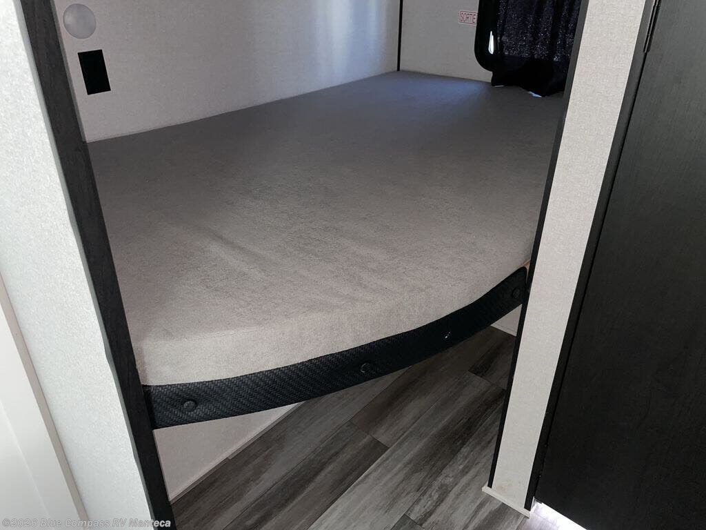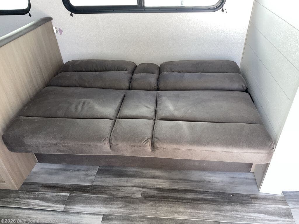 You can comfortably sleep up to ten people in this trailer thanks to the double-size bunks, the RV queen bed in the front bedroom, plus the booth dinette and jack-knife sofa in the main living area! The chef of your crew will have a three burner cooktop and microwave oven to prepare meals, and everyone can store their favorite drinks in the 8 cu. ft. 12V refrigerator inside, or in the outdoor refrigerator for convenience. The rear corner bathroom includes a shower and a toilet, with the sink just outside of this room so others can brush their teeth if one is taking a shower before bed. The outside storage is accessible on both sides of the unit and will easily allow you bring along camp chairs, yard games and more. A 16' powered awning with LED lights will create a nice place to gather in the evenings with family and friends!