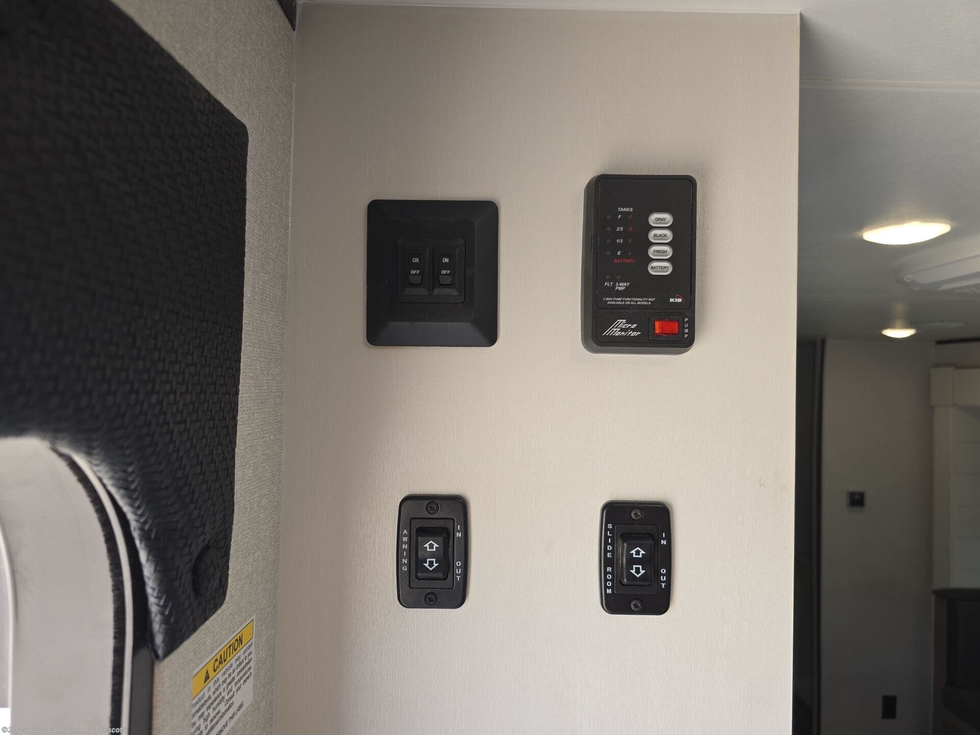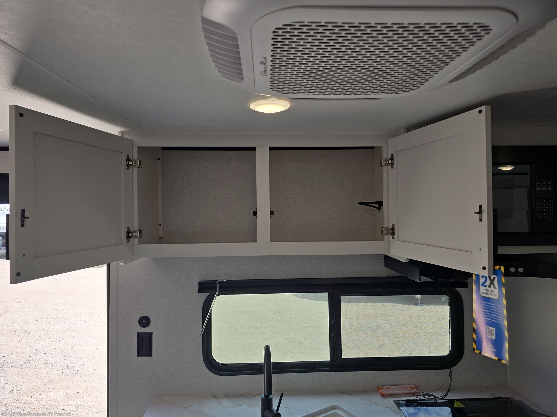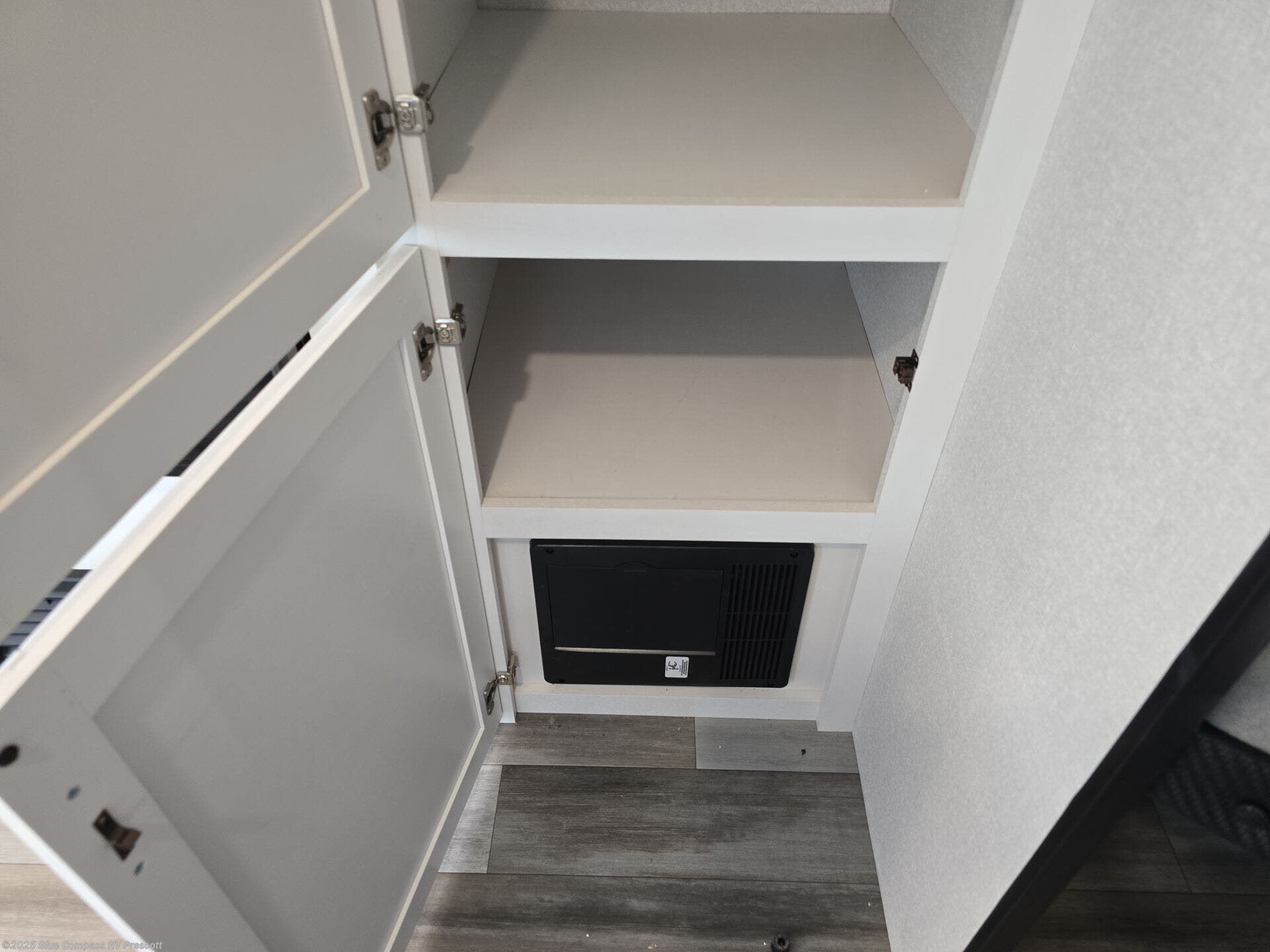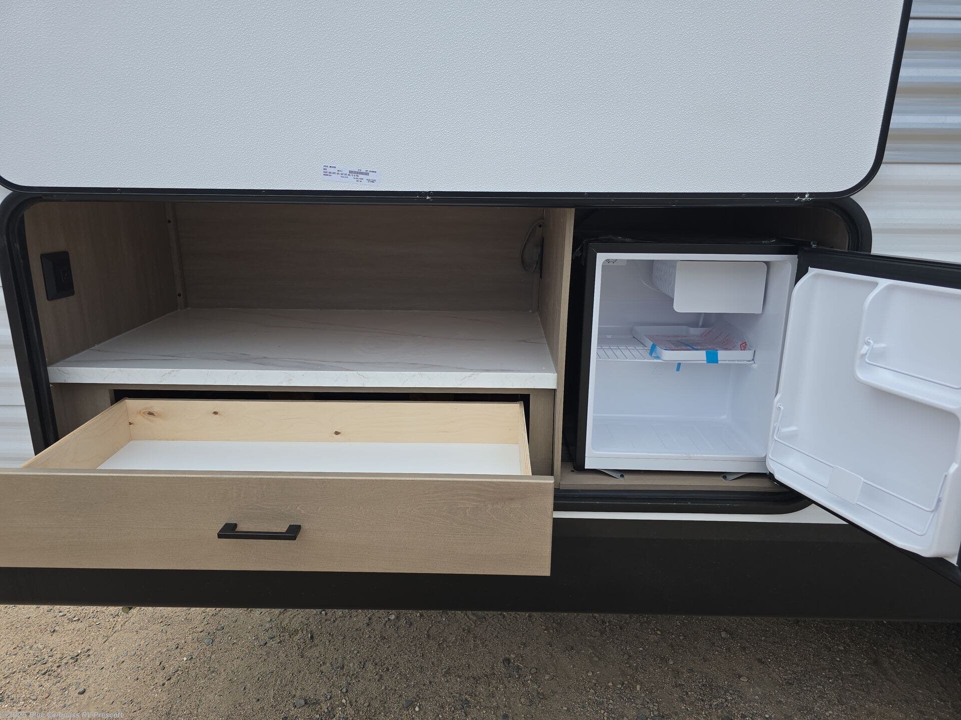 You can comfortably sleep up to ten people in this trailer thanks to the double-size bunks, the RV queen bed in the front bedroom, plus the booth dinette and jack-knife sofa in the main living area! The chef of your crew will have a three burner cooktop and microwave oven to prepare meals, and everyone can store their favorite drinks in the 8 cu. ft. 12V refrigerator inside, or in the outdoor refrigerator for convenience. The rear corner bathroom includes a shower and a toilet, with the sink just outside of this room so others can brush their teeth if one is taking a shower before bed. The outside storage is accessible on both sides of the unit and will easily allow you bring along camp chairs, yard games and more. A 16' powered awning with LED lights will create a nice place to gather in the evenings with family and friends!