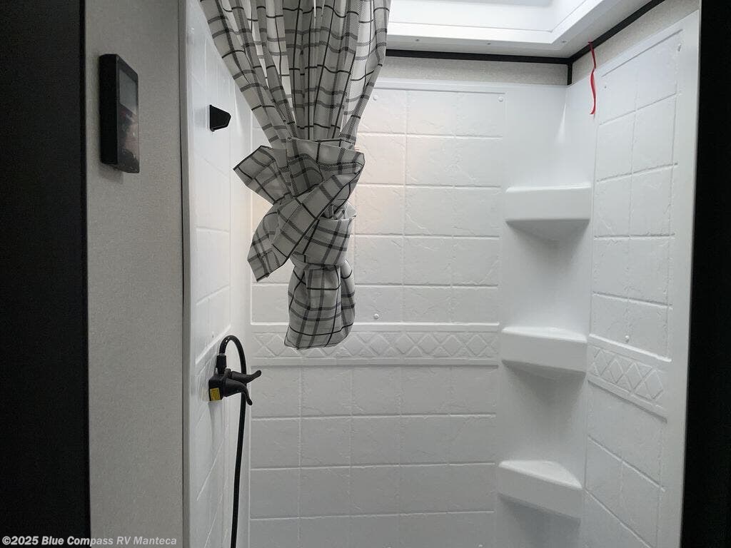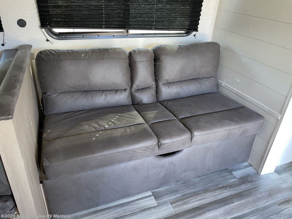 You can comfortably sleep up to ten people in this trailer thanks to the double-size bunks, the RV queen bed in the front bedroom, plus the booth dinette and jack-knife sofa in the main living area! The chef of your crew will have a three burner cooktop and microwave oven to prepare meals, and everyone can store their favorite drinks in the 8 cu. ft. 12V refrigerator inside, or in the outdoor refrigerator for convenience. The rear corner bathroom includes a shower and a toilet, with the sink just outside of this room so others can brush their teeth if one is taking a shower before bed. The outside storage is accessible on both sides of the unit and will easily allow you bring along camp chairs, yard games and more. A 16' powered awning with LED lights will create a nice place to gather in the evenings with family and friends!