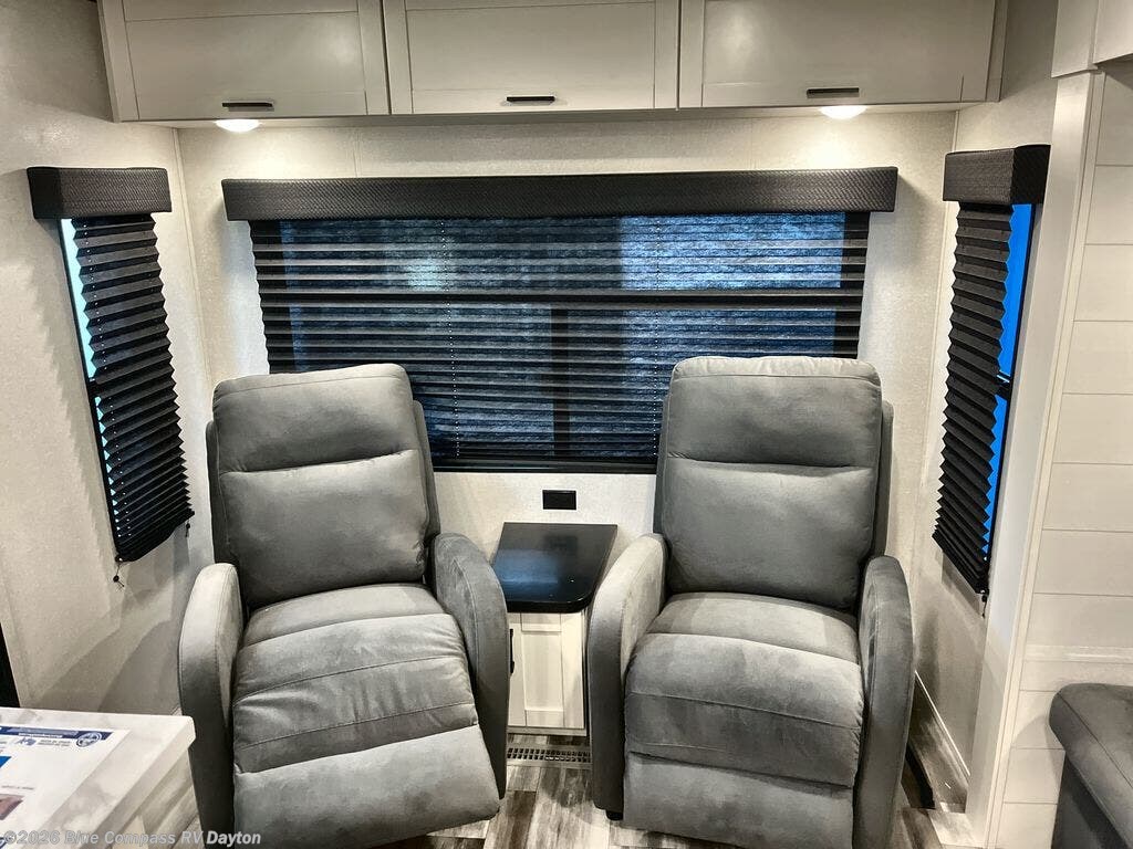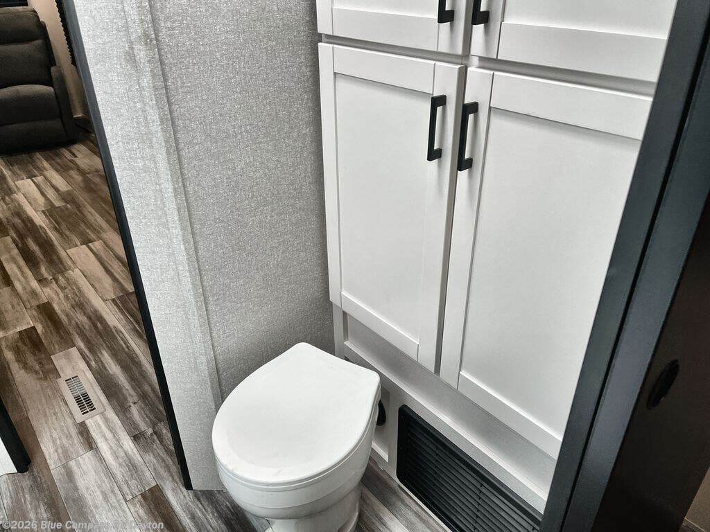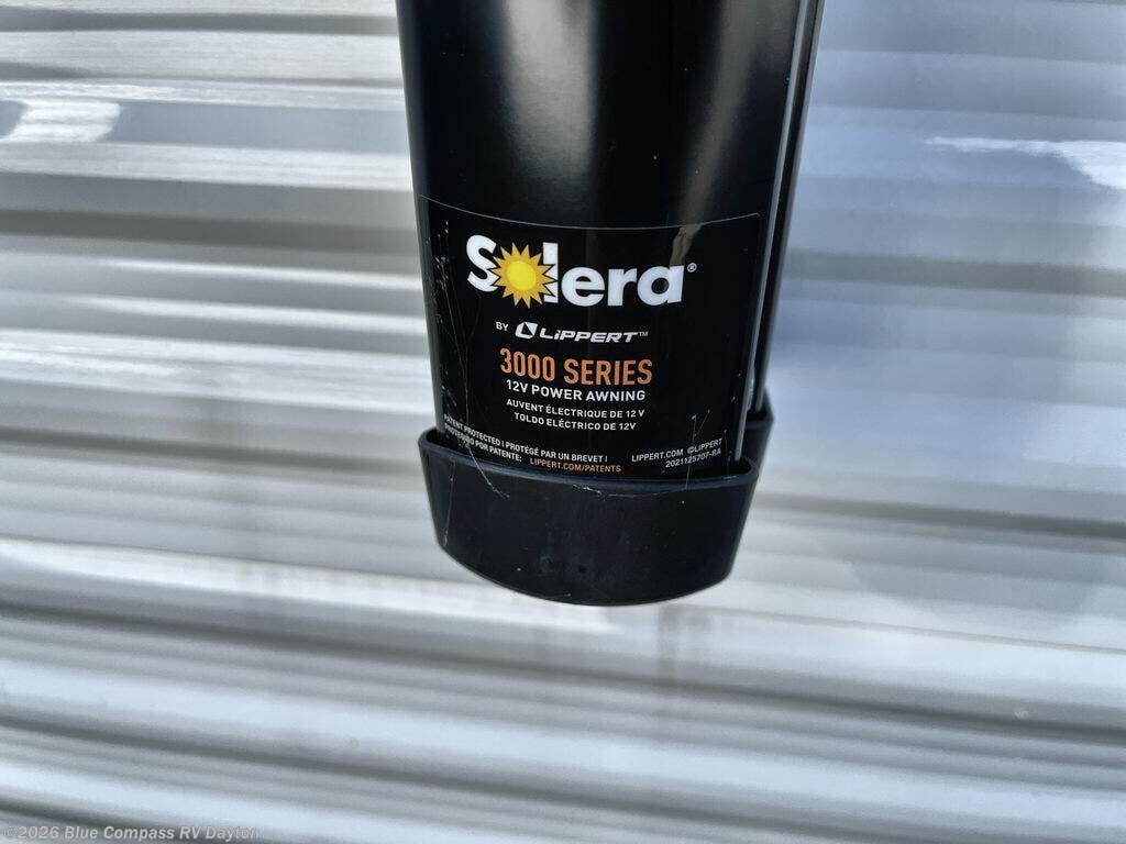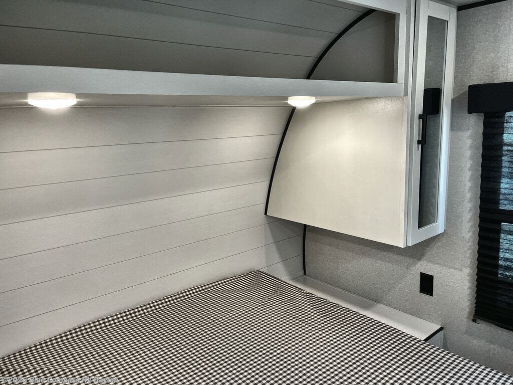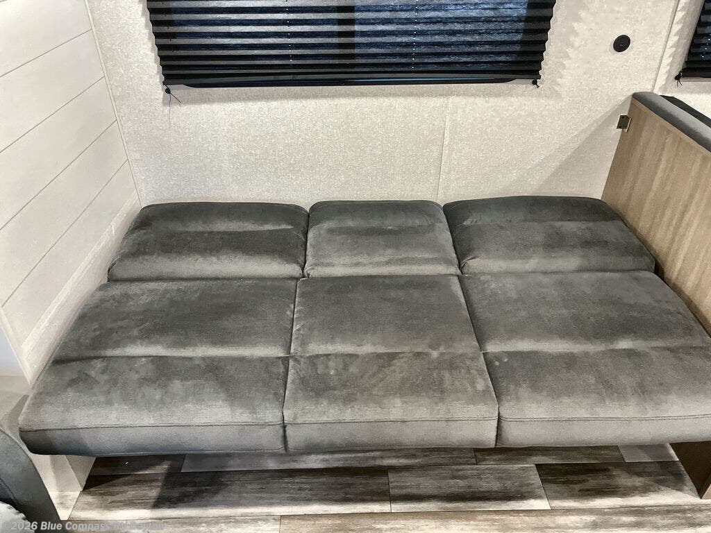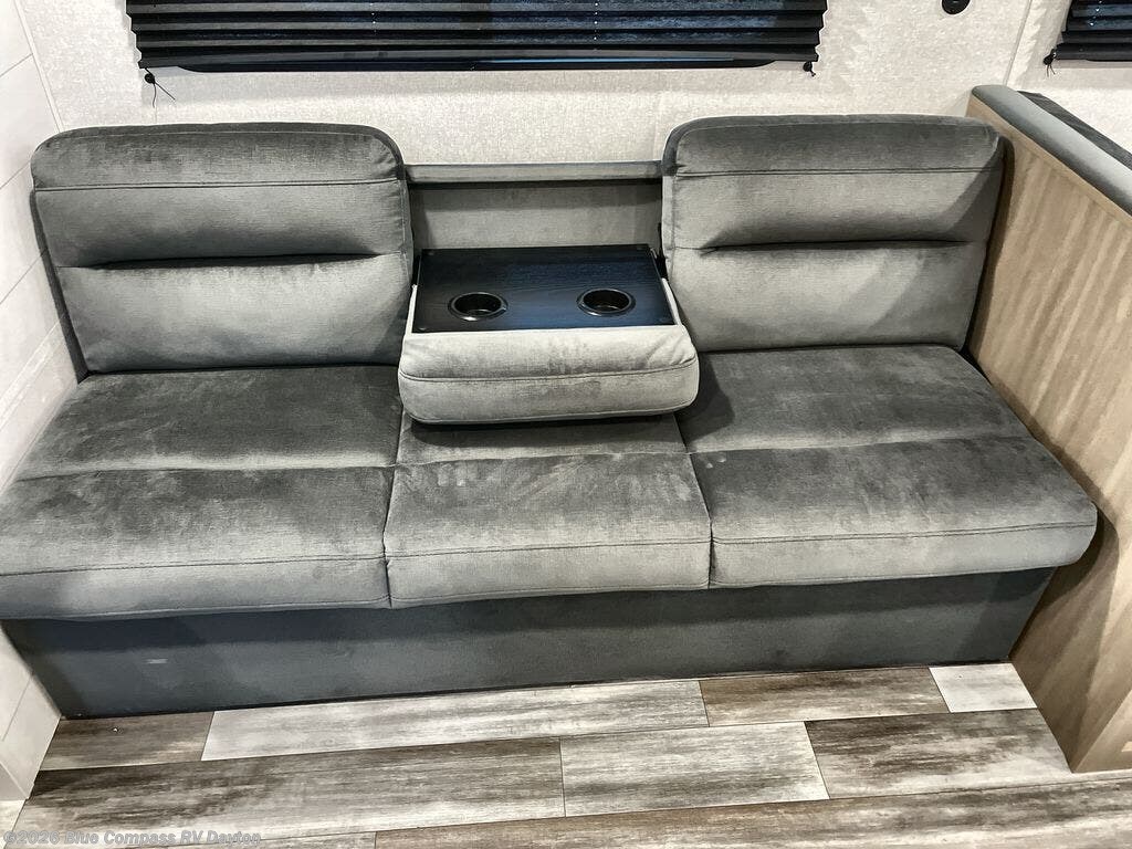 You can comfortably sleep up to six people in this trailer thanks to the RV queen bed in the front bedroom, plus the booth dinette and jack-knife sofa in the main living area! The chef of your crew will have a three burner cooktop and microwave oven to prepare meals, and everyone can store their favorite drinks in the 8 cu. ft. 12V refrigerator. The walk-through bath is spacious and includes a radius shower, toilet, a sink, and linen closet and is the full width of the unit. The outside storage will let you bring along camp chairs and games, fishing poles and more, plus the 18' 3" power awning with LED lights will create a nice place to gather in the evenings!