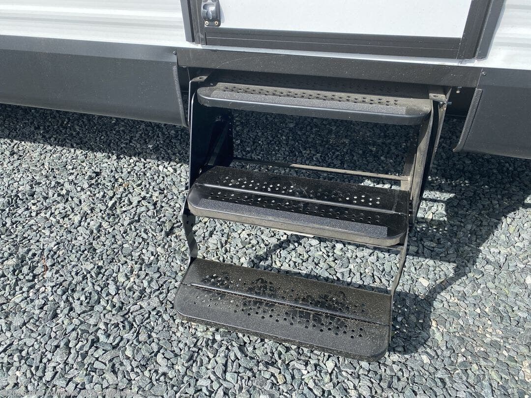 You can comfortably sleep up to six people in this trailer thanks to the RV queen bed in the front bedroom, plus the booth dinette and jack-knife sofa in the main living area! The chef of your crew will have a three burner cooktop and microwave oven to prepare meals, and everyone can store their favorite drinks in the 8 cu. ft. 12V refrigerator. The walk-through bath is spacious and includes a radius shower, toilet, a sink, and linen closet and is the full width of the unit. The outside storage will let you bring along camp chairs and games, fishing poles and more, plus the 18' 3" power awning with LED lights will create a nice place to gather in the evenings!
