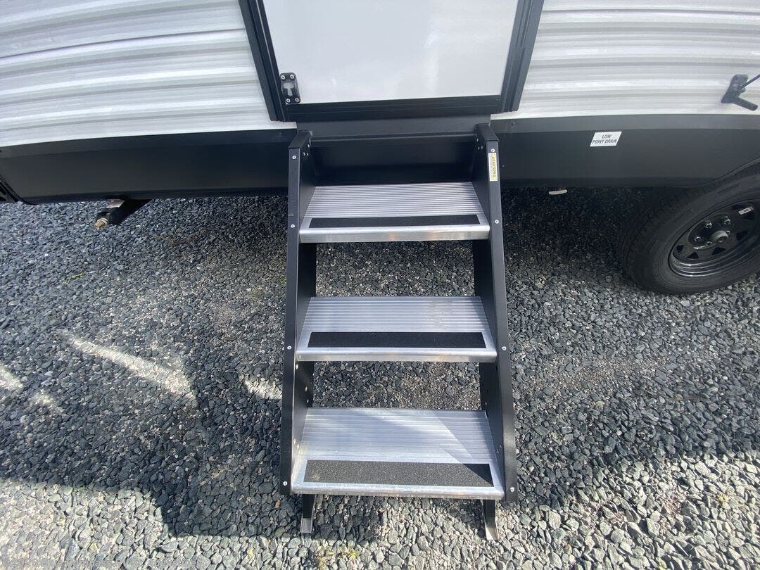 You can comfortably sleep up to six people in this trailer thanks to the RV queen bed in the front bedroom, plus the booth dinette and jack-knife sofa in the main living area! The chef of your crew will have a three burner cooktop and microwave oven to prepare meals, and everyone can store their favorite drinks in the 8 cu. ft. 12V refrigerator. The walk-through bath is spacious and includes a radius shower, toilet, a sink, and linen closet and is the full width of the unit. The outside storage will let you bring along camp chairs and games, fishing poles and more, plus the 18' 3" power awning with LED lights will create a nice place to gather in the evenings!