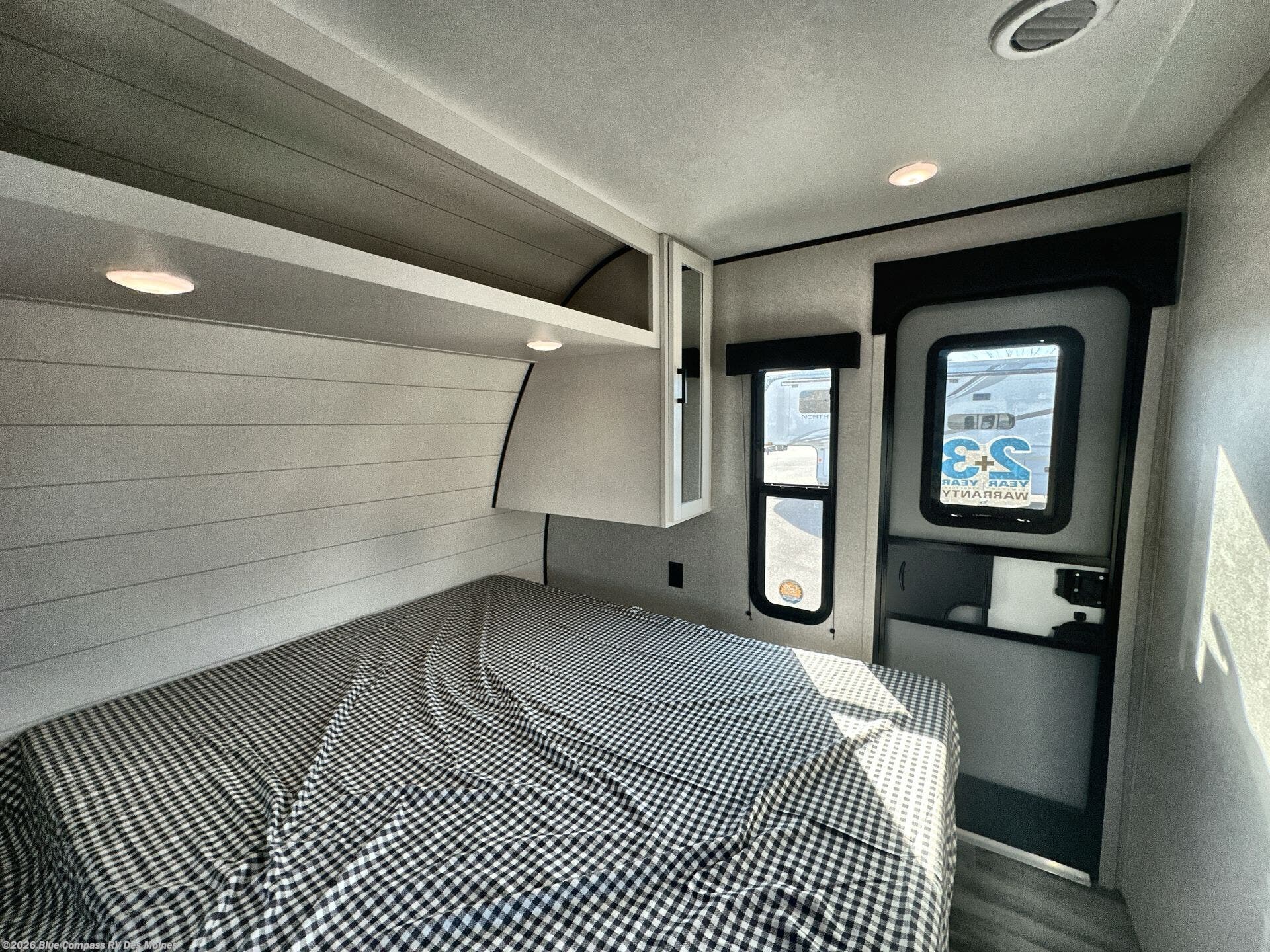 You can comfortably sleep up to six people in this trailer thanks to the RV queen bed in the front bedroom, plus the booth dinette and jack-knife sofa in the main living area! The chef of your crew will have a three burner cooktop and microwave oven to prepare meals, and everyone can store their favorite drinks in the 8 cu. ft. 12V refrigerator. The walk-through bath is spacious and includes a radius shower, toilet, a sink, and linen closet and is the full width of the unit. The outside storage will let you bring along camp chairs and games, fishing poles and more, plus the 18' 3" power awning with LED lights will create a nice place to gather in the evenings!