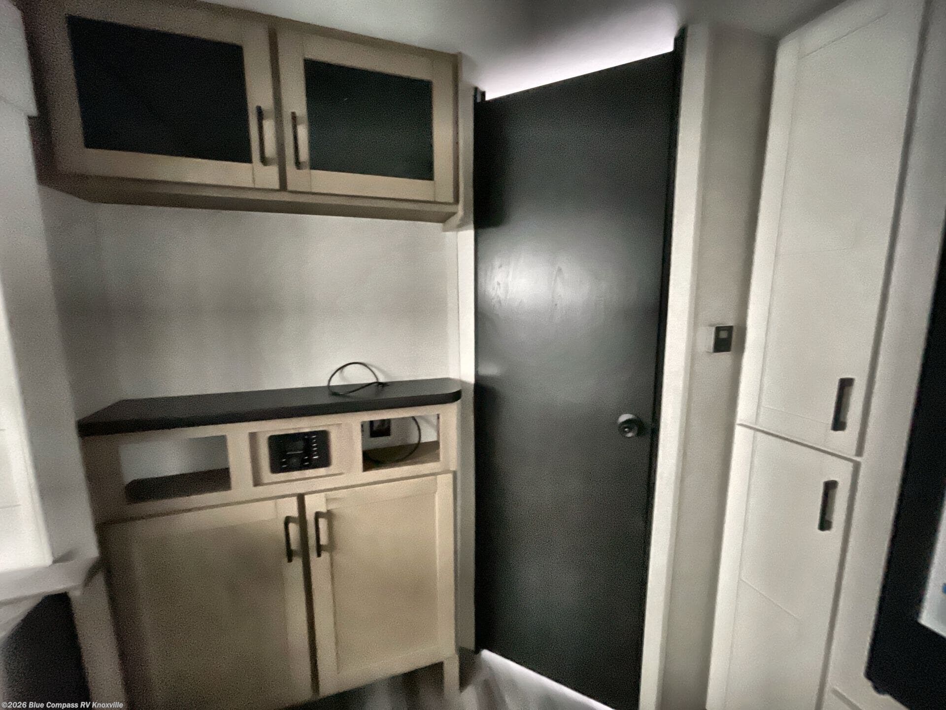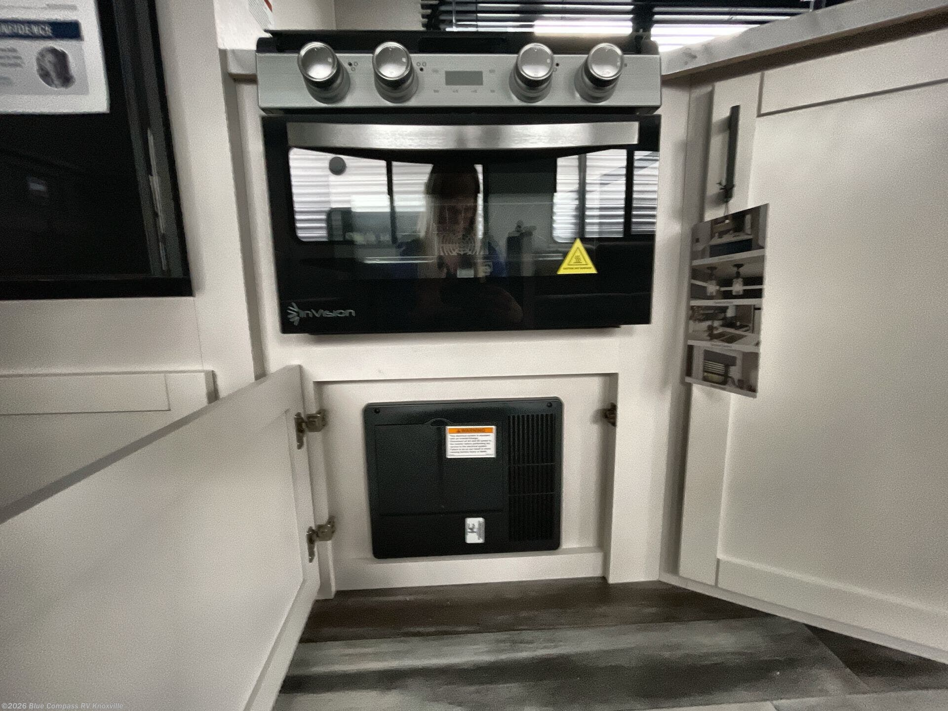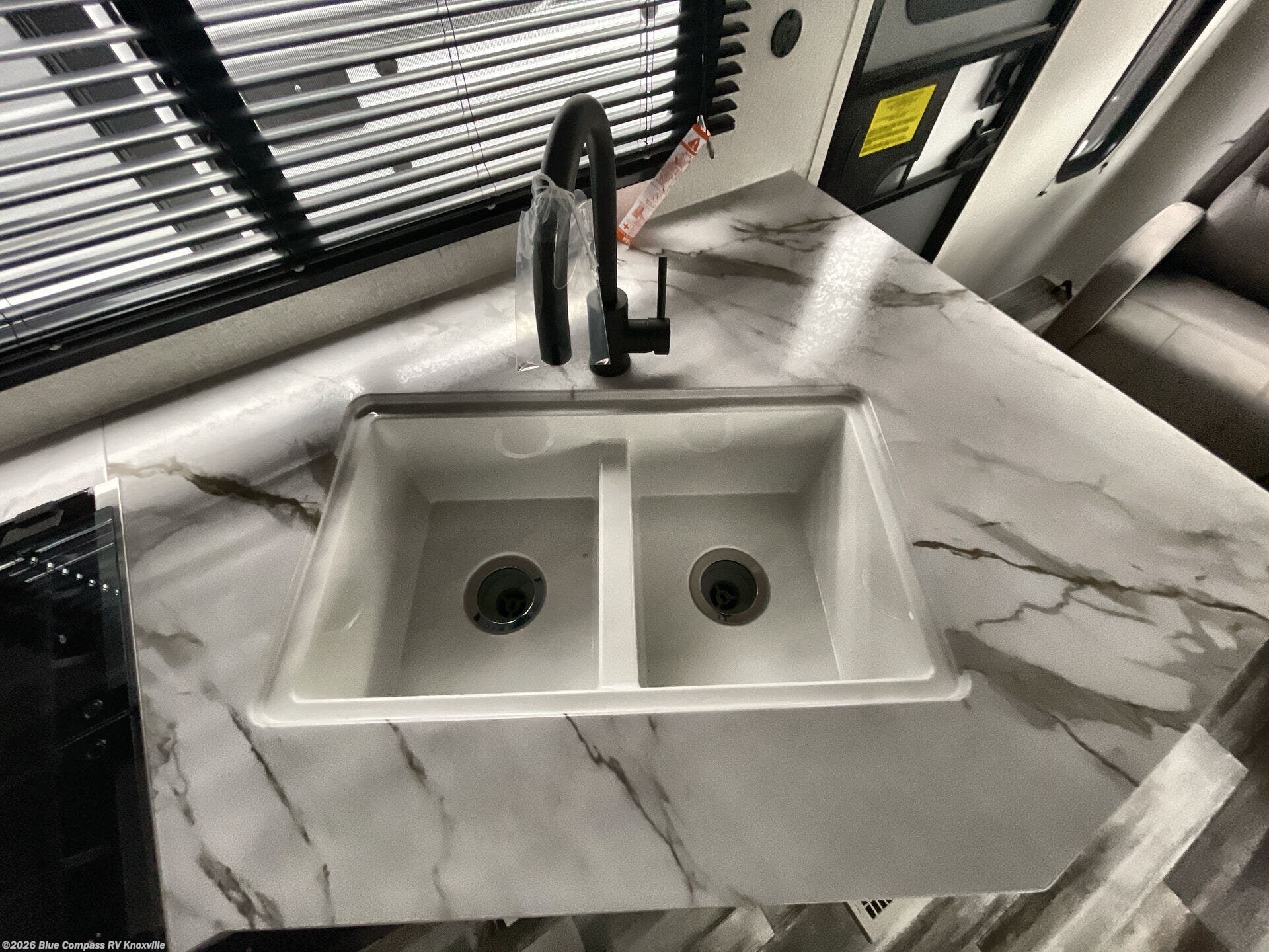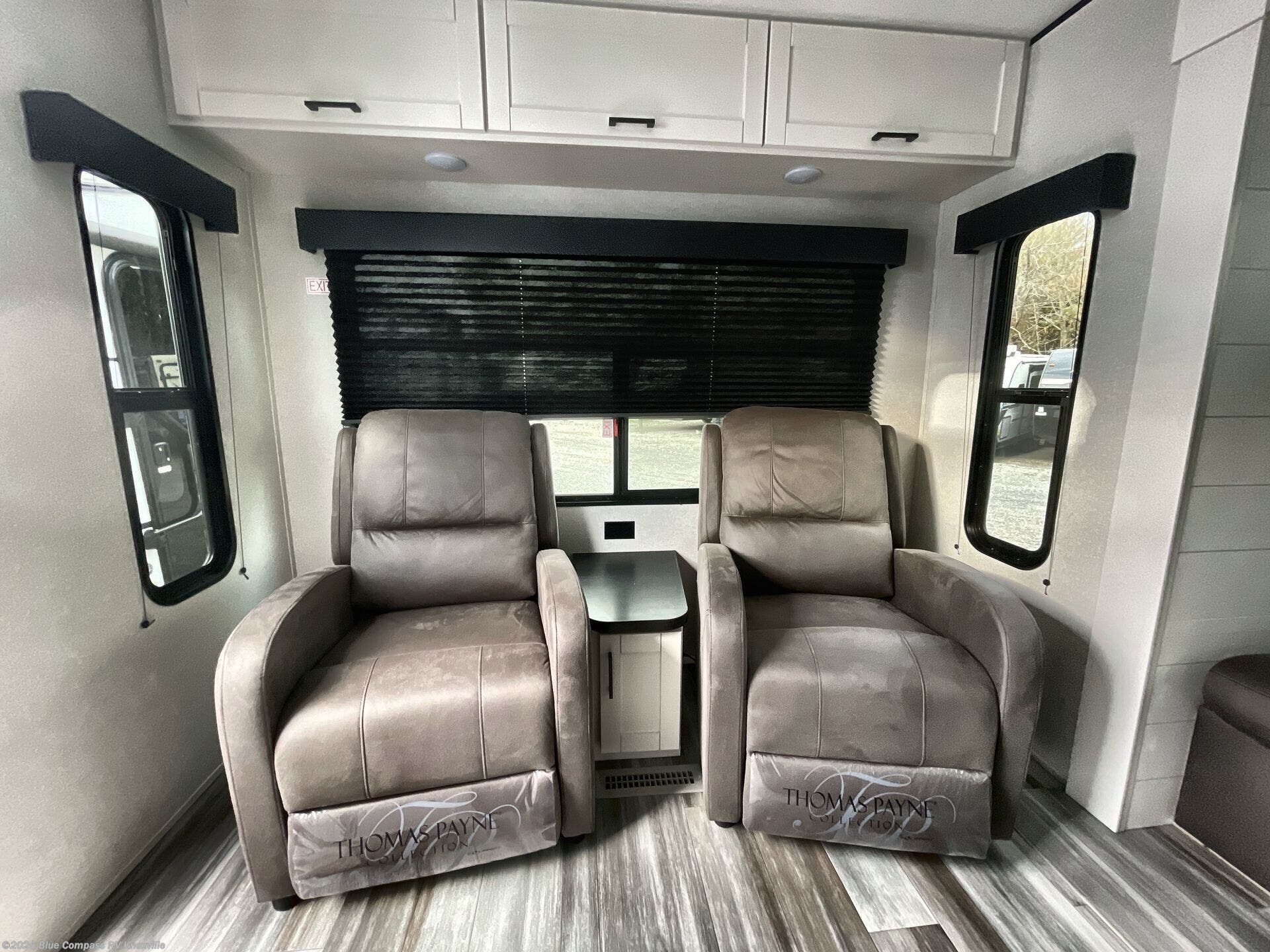 You can comfortably sleep up to six people in this trailer thanks to the RV queen bed in the front bedroom, plus the booth dinette and jack-knife sofa in the main living area! The chef of your crew will have a three burner cooktop and microwave oven to prepare meals, and everyone can store their favorite drinks in the 8 cu. ft. 12V refrigerator. The walk-through bath is spacious and includes a radius shower, toilet, a sink, and linen closet and is the full width of the unit. The outside storage will let you bring along camp chairs and games, fishing poles and more, plus the 18' 3" power awning with LED lights will create a nice place to gather in the evenings!