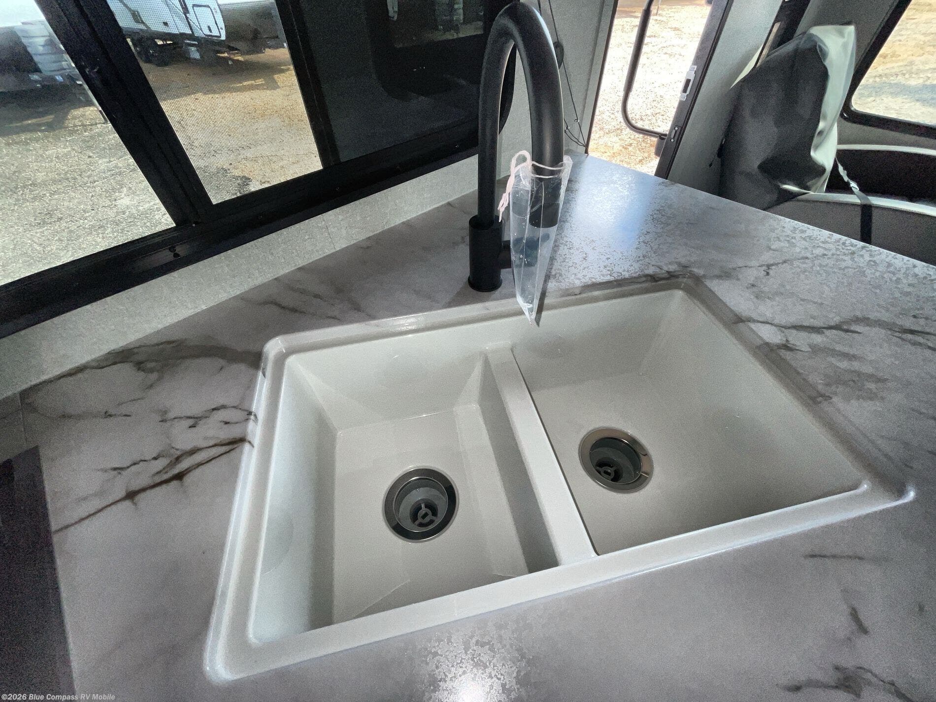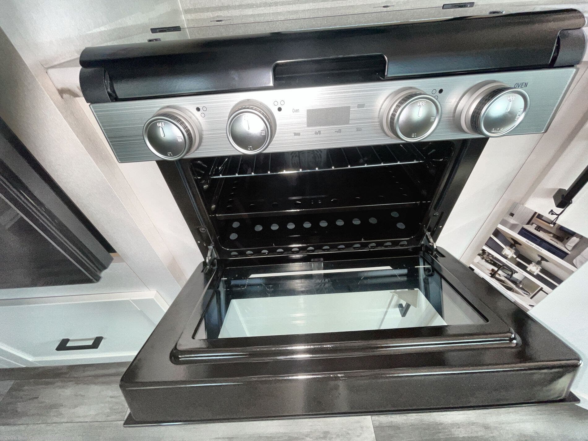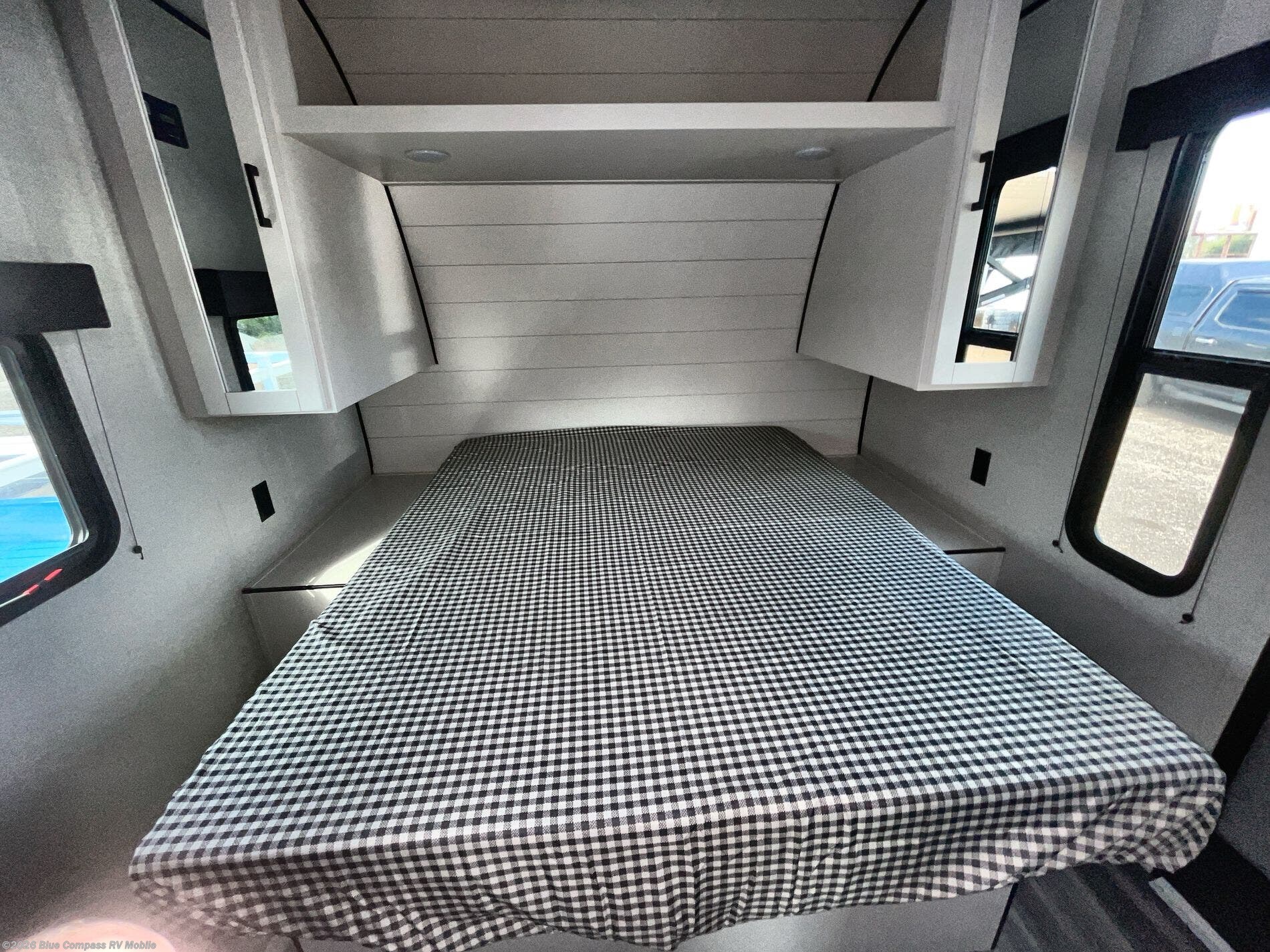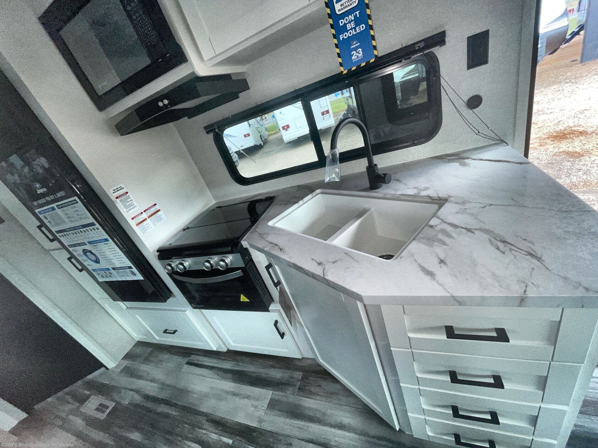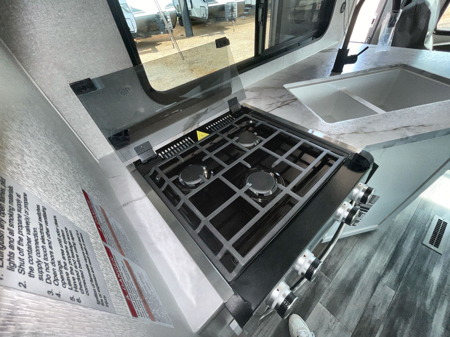 You can comfortably sleep up to six people in this trailer thanks to the RV queen bed in the front bedroom, plus the booth dinette and jack-knife sofa in the main living area! The chef of your crew will have a three burner cooktop and microwave oven to prepare meals, and everyone can store their favorite drinks in the 8 cu. ft. 12V refrigerator. The walk-through bath is spacious and includes a radius shower, toilet, a sink, and linen closet and is the full width of the unit. The outside storage will let you bring along camp chairs and games, fishing poles and more, plus the 18' 3" power awning with LED lights will create a nice place to gather in the evenings!