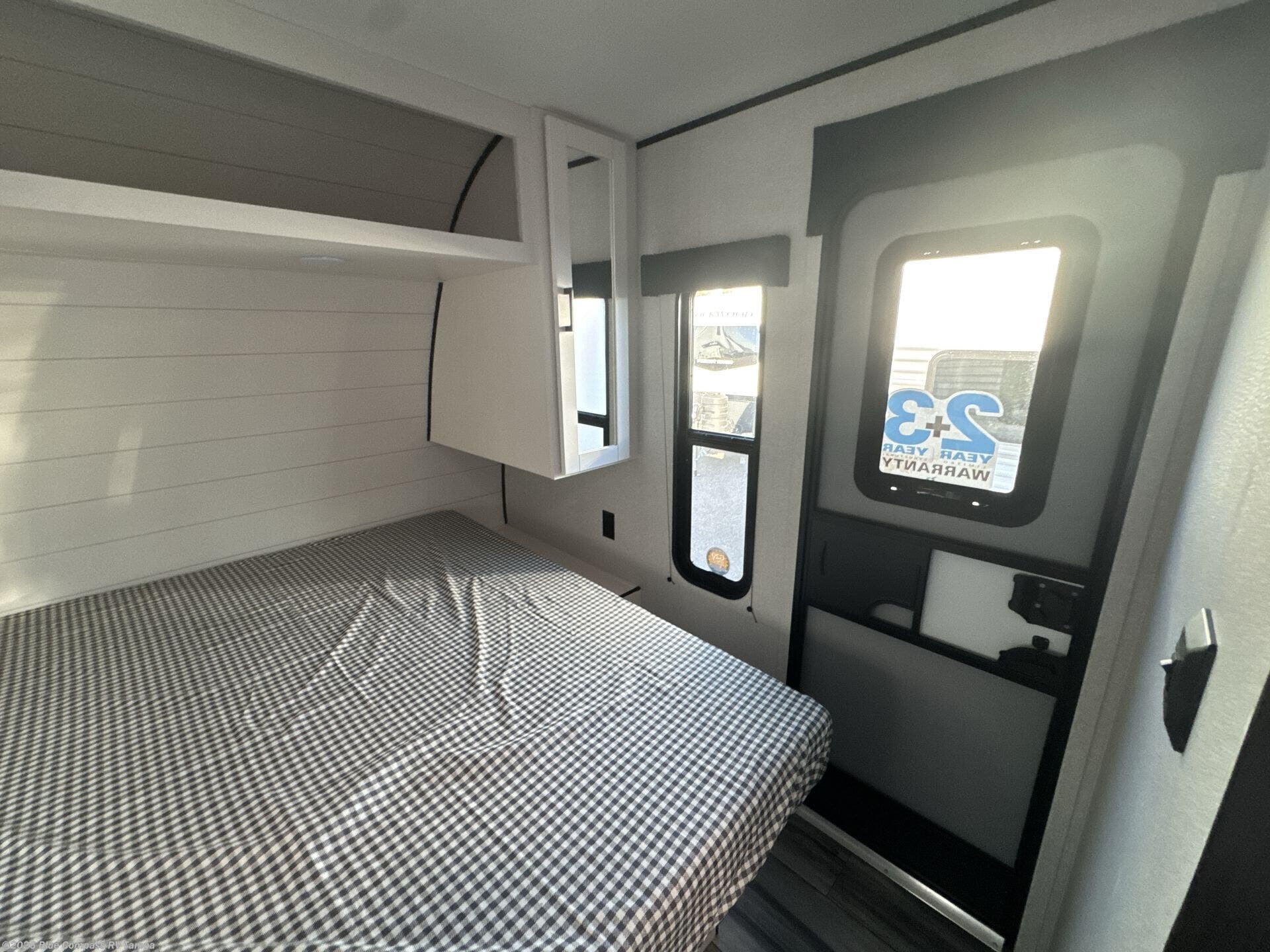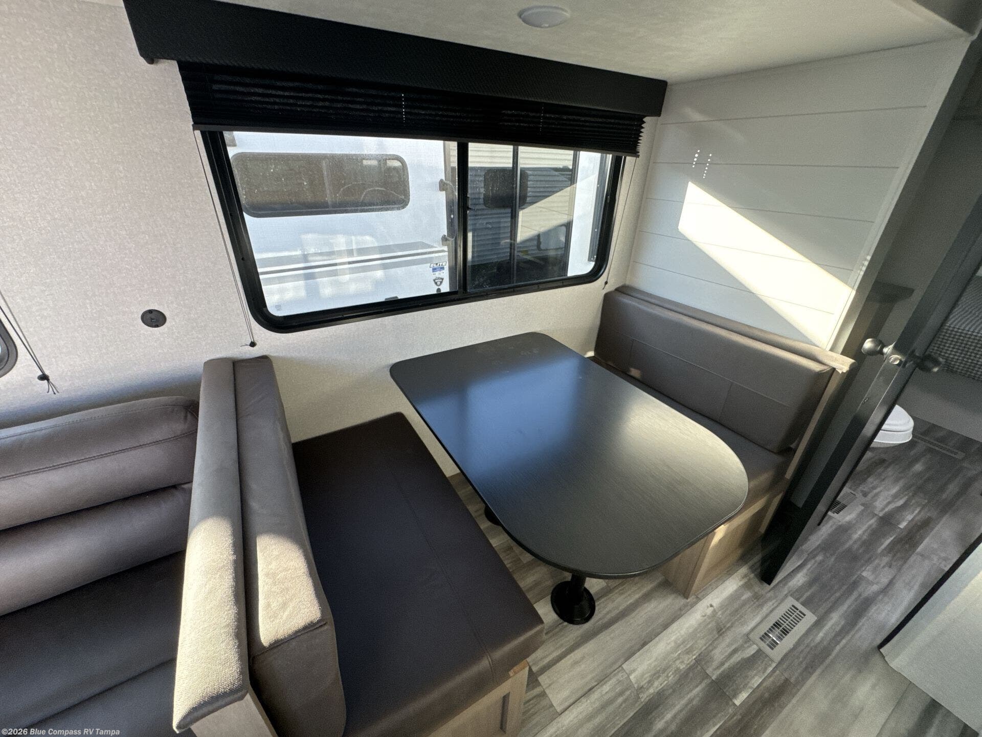 You can comfortably sleep up to six people in this trailer thanks to the RV queen bed in the front bedroom, plus the booth dinette and jack-knife sofa in the main living area! The chef of your crew will have a three burner cooktop and microwave oven to prepare meals, and everyone can store their favorite drinks in the 8 cu. ft. 12V refrigerator. The walk-through bath is spacious and includes a radius shower, toilet, a sink, and linen closet and is the full width of the unit. The outside storage will let you bring along camp chairs and games, fishing poles and more, plus the 18' 3" power awning with LED lights will create a nice place to gather in the evenings!