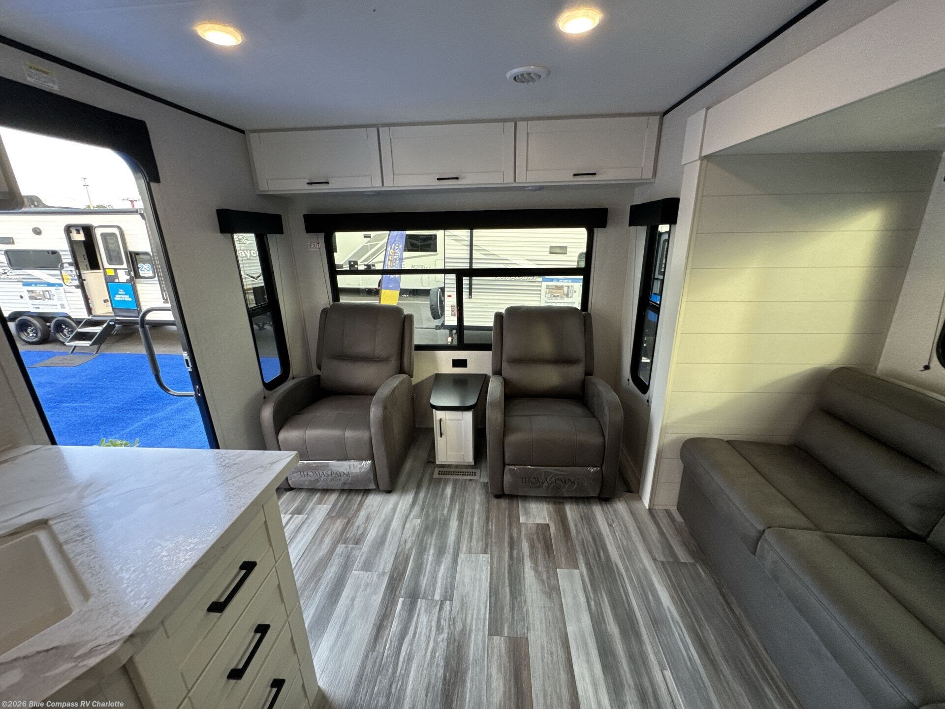 You can comfortably sleep up to six people in this trailer thanks to the RV queen bed in the front bedroom, plus the booth dinette and jack-knife sofa in the main living area! The chef of your crew will have a three burner cooktop and microwave oven to prepare meals, and everyone can store their favorite drinks in the 8 cu. ft. 12V refrigerator. The walk-through bath is spacious and includes a radius shower, toilet, a sink, and linen closet and is the full width of the unit. The outside storage will let you bring along camp chairs and games, fishing poles and more, plus the 18' 3" power awning with LED lights will create a nice place to gather in the evenings!