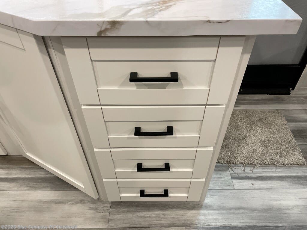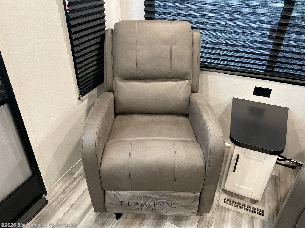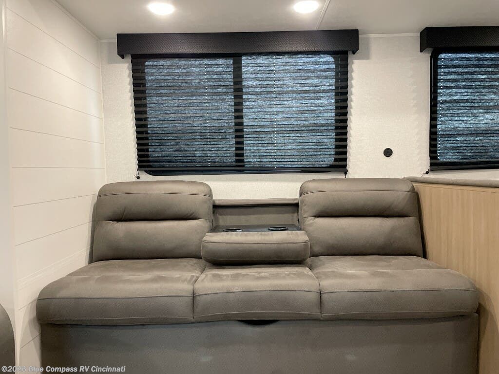 You can comfortably sleep up to six people in this trailer thanks to the RV queen bed in the front bedroom, plus the booth dinette and jack-knife sofa in the main living area! The chef of your crew will have a three burner cooktop and microwave oven to prepare meals, and everyone can store their favorite drinks in the 8 cu. ft. 12V refrigerator. The walk-through bath is spacious and includes a radius shower, toilet, a sink, and linen closet and is the full width of the unit. The outside storage will let you bring along camp chairs and games, fishing poles and more, plus the 18' 3" power awning with LED lights will create a nice place to gather in the evenings!