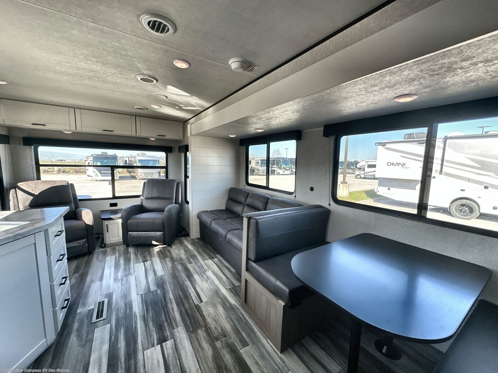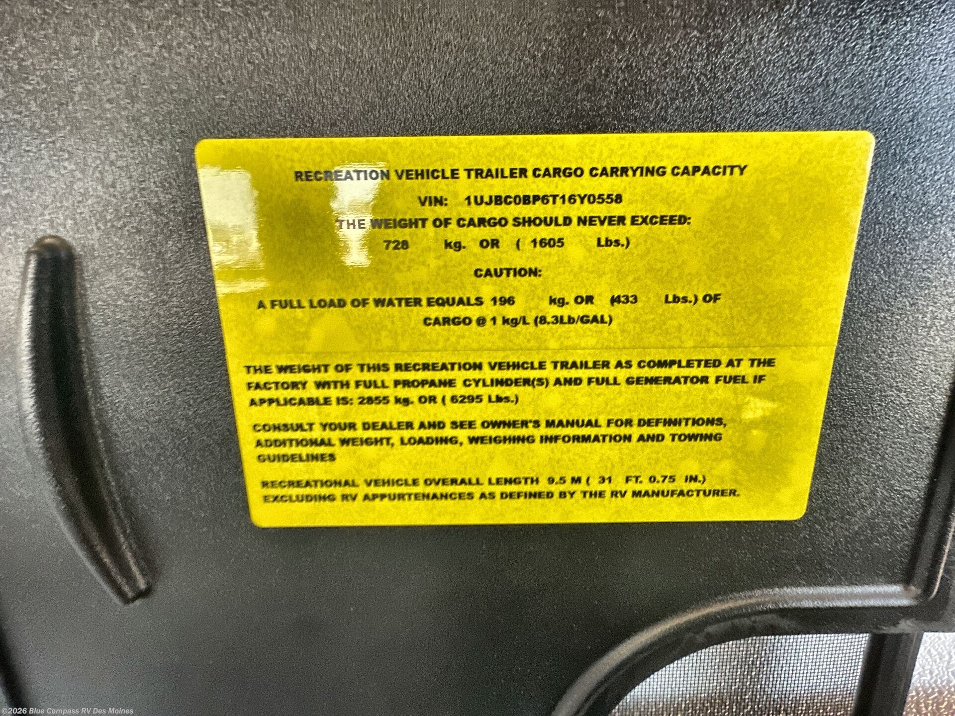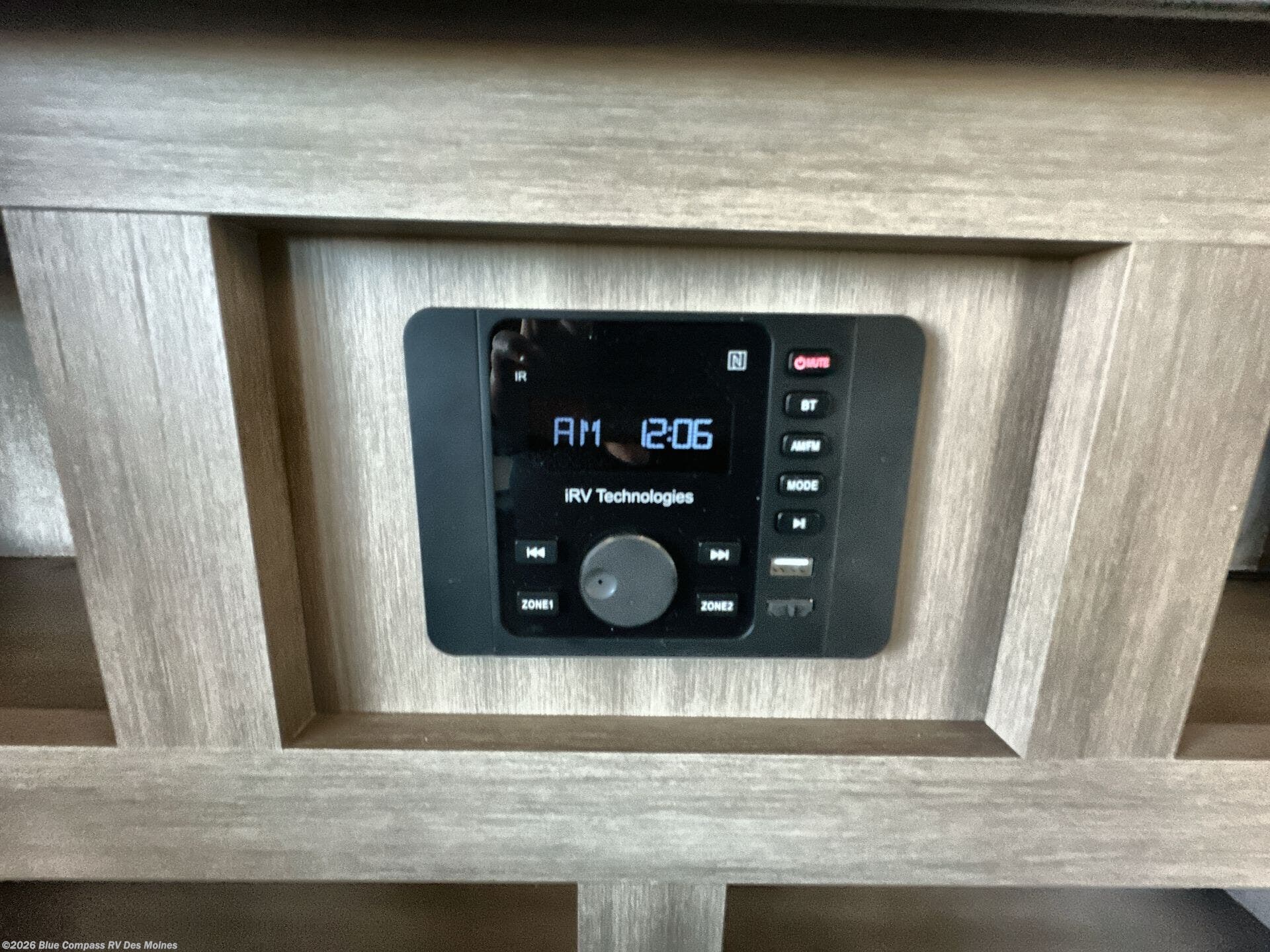 You can comfortably sleep up to six people in this trailer thanks to the RV queen bed in the front bedroom, plus the booth dinette and jack-knife sofa in the main living area! The chef of your crew will have a three burner cooktop and microwave oven to prepare meals, and everyone can store their favorite drinks in the 8 cu. ft. 12V refrigerator. The walk-through bath is spacious and includes a radius shower, toilet, a sink, and linen closet and is the full width of the unit. The outside storage will let you bring along camp chairs and games, fishing poles and more, plus the 18' 3" power awning with LED lights will create a nice place to gather in the evenings!