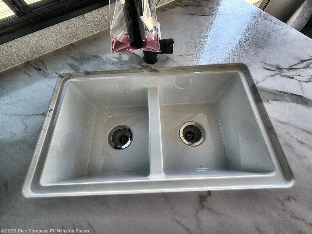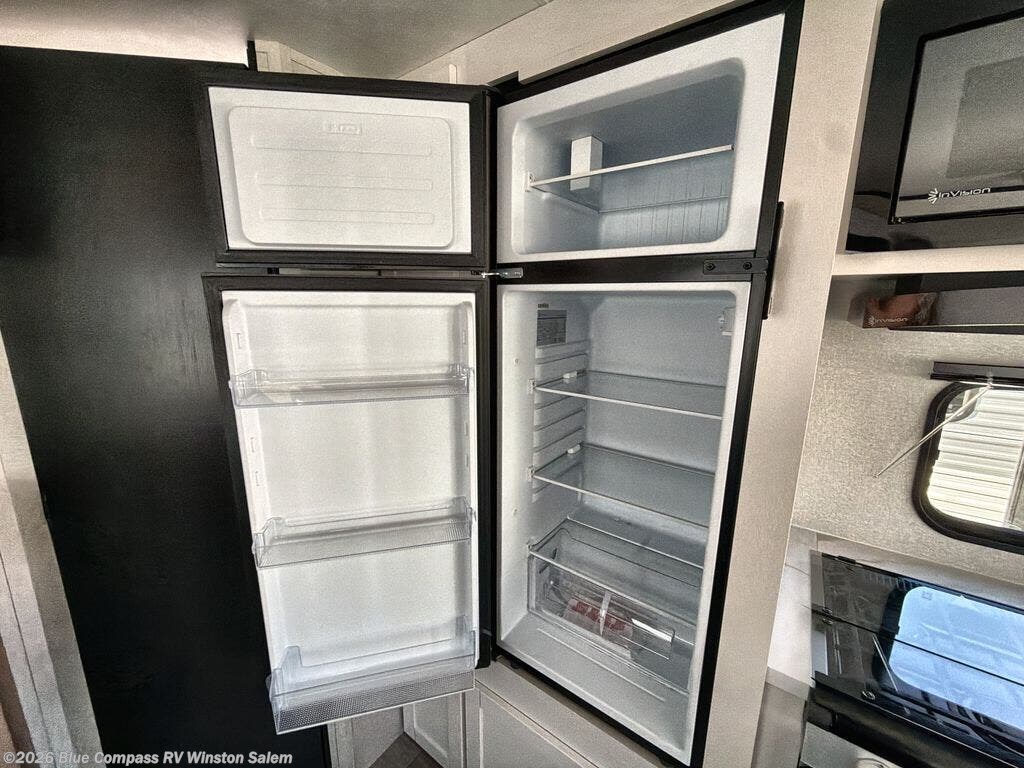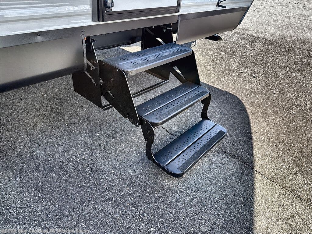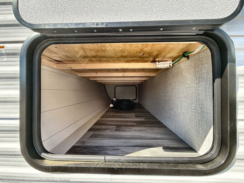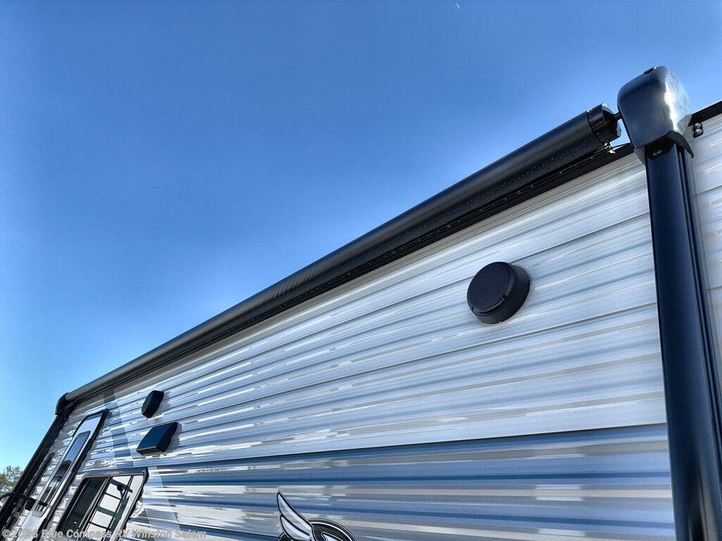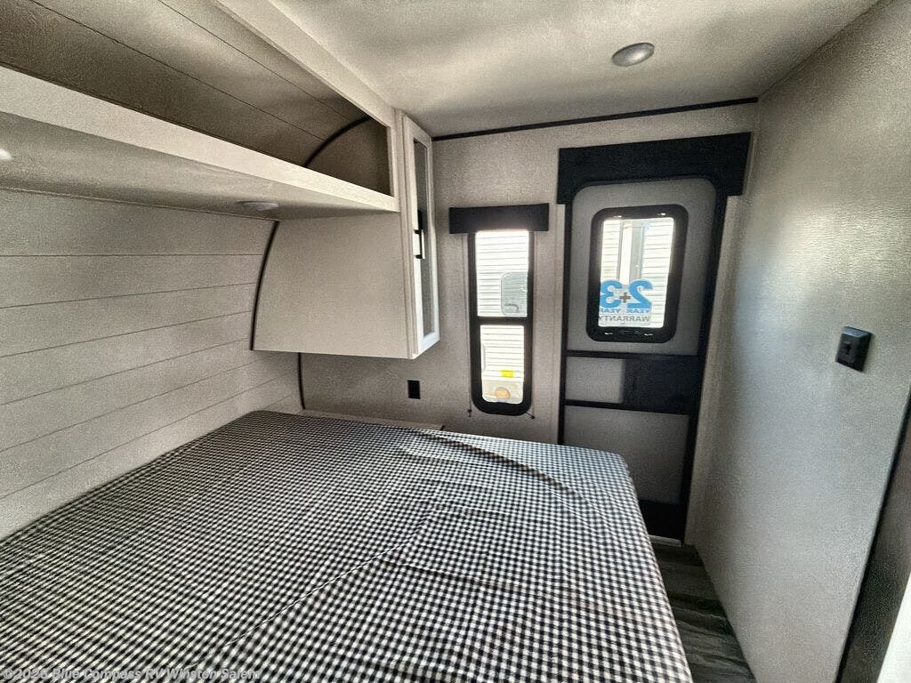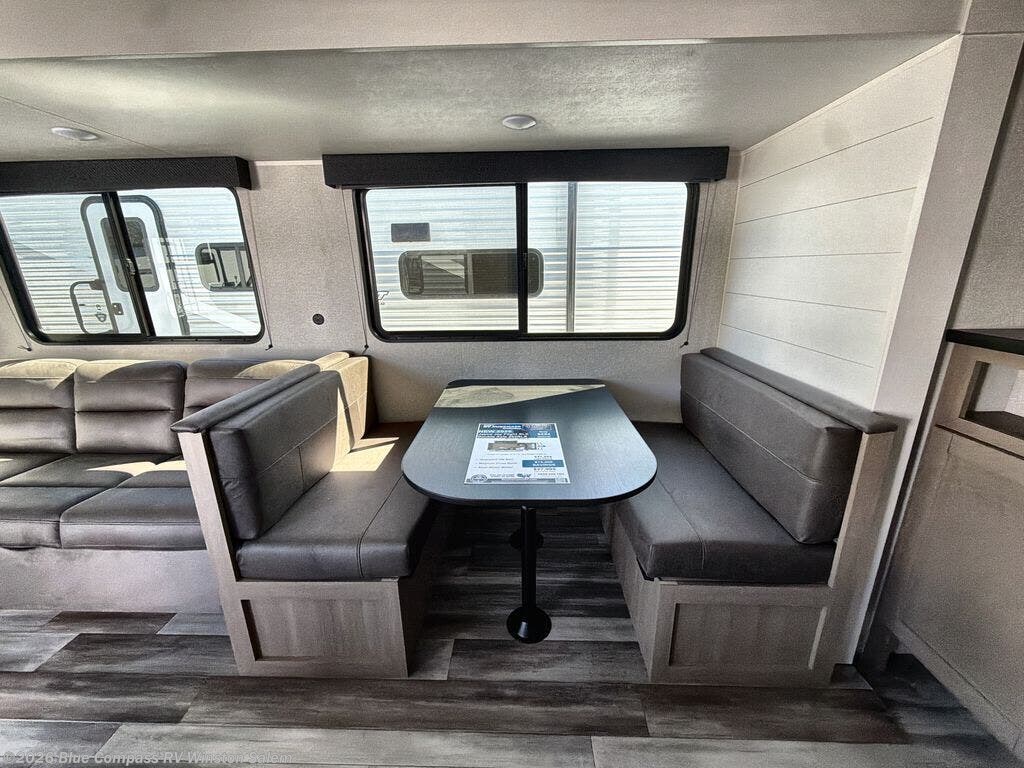 You can comfortably sleep up to six people in this trailer thanks to the RV queen bed in the front bedroom, plus the booth dinette and jack-knife sofa in the main living area! The chef of your crew will have a three burner cooktop and microwave oven to prepare meals, and everyone can store their favorite drinks in the 8 cu. ft. 12V refrigerator. The walk-through bath is spacious and includes a radius shower, toilet, a sink, and linen closet and is the full width of the unit. The outside storage will let you bring along camp chairs and games, fishing poles and more, plus the 18' 3" power awning with LED lights will create a nice place to gather in the evenings!