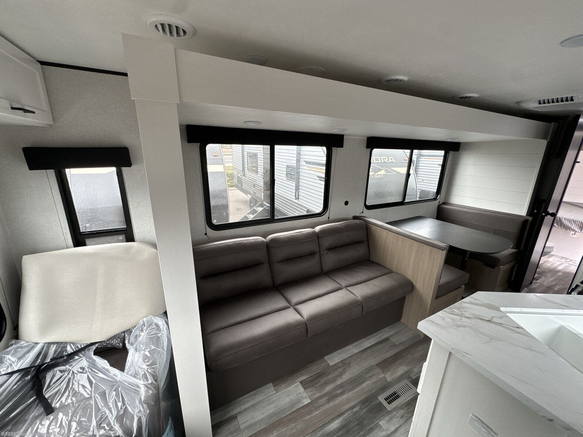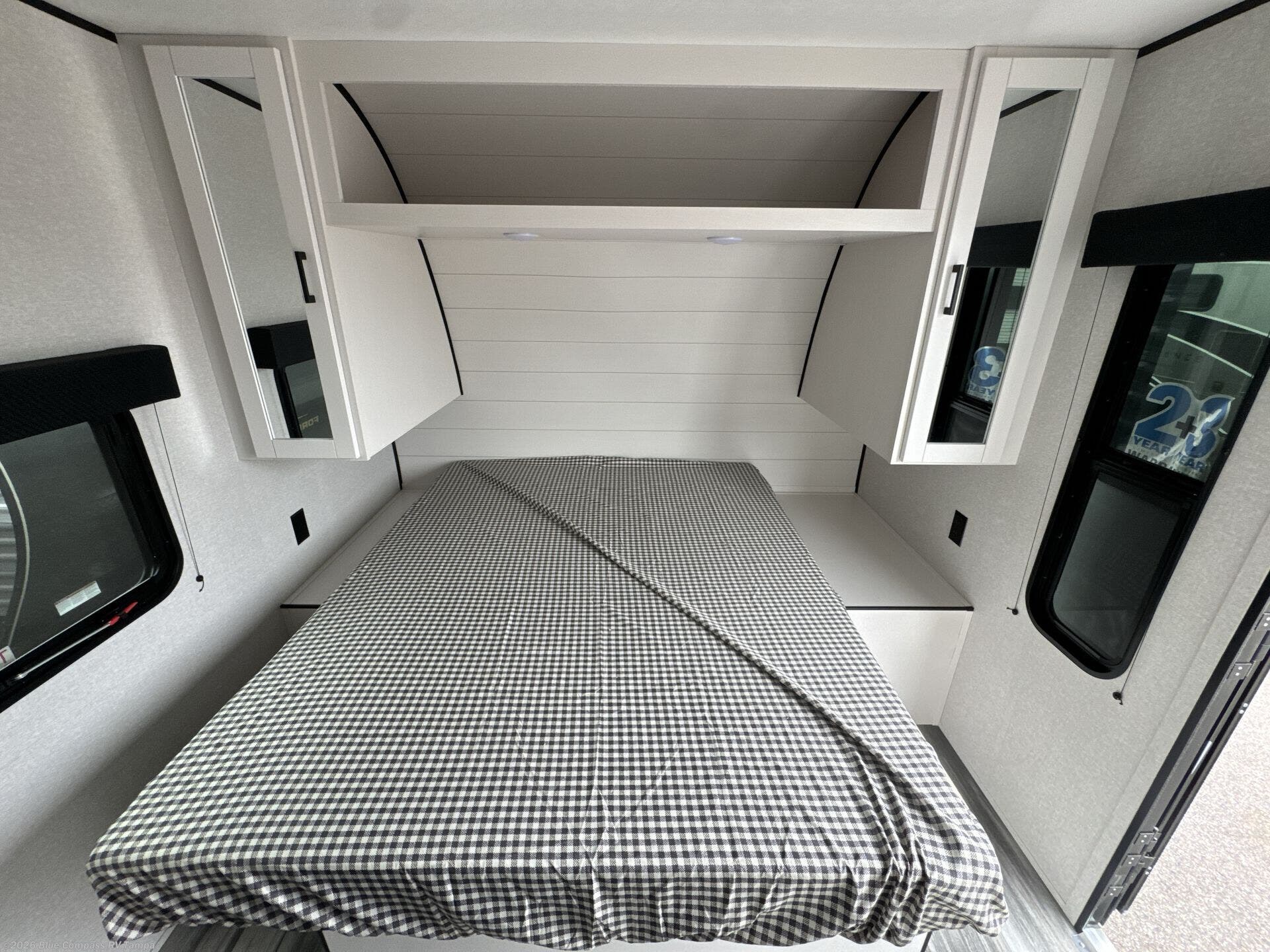You can comfortably sleep up to six people in this trailer thanks to the RV queen bed in the front bedroom, plus the booth dinette and jack-knife sofa in the main living area! The chef of your crew will have a three burner cooktop and microwave oven to prepare meals, and everyone can store their favorite drinks in the 8 cu. ft. 12V refrigerator. The walk-through bath is spacious and includes a radius shower, toilet, a sink, and linen closet and is the full width of the unit. The outside storage will let you bring along camp chairs and games, fishing poles and more, plus the 18' 3" power awning with LED lights will create a nice place to gather in the evenings!