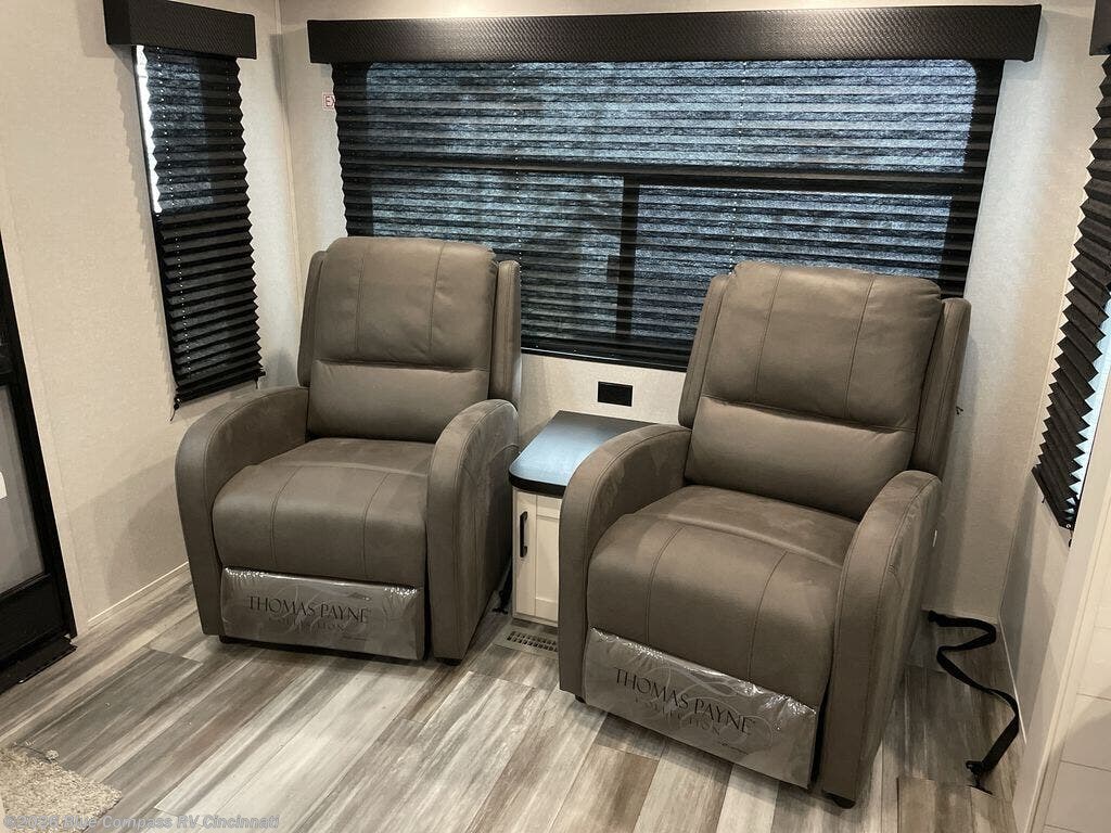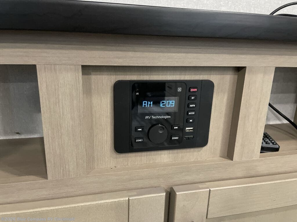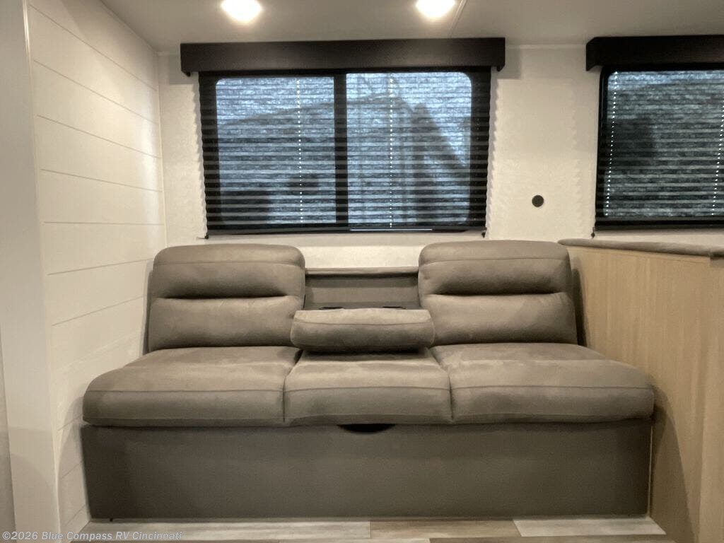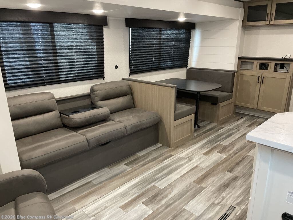 You can comfortably sleep up to six people in this trailer thanks to the RV queen bed in the front bedroom, plus the booth dinette and jack-knife sofa in the main living area! The chef of your crew will have a three burner cooktop and microwave oven to prepare meals, and everyone can store their favorite drinks in the 8 cu. ft. 12V refrigerator. The walk-through bath is spacious and includes a radius shower, toilet, a sink, and linen closet and is the full width of the unit. The outside storage will let you bring along camp chairs and games, fishing poles and more, plus the 18' 3" power awning with LED lights will create a nice place to gather in the evenings!
