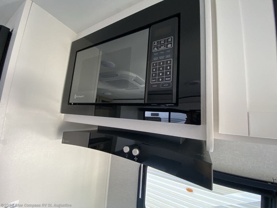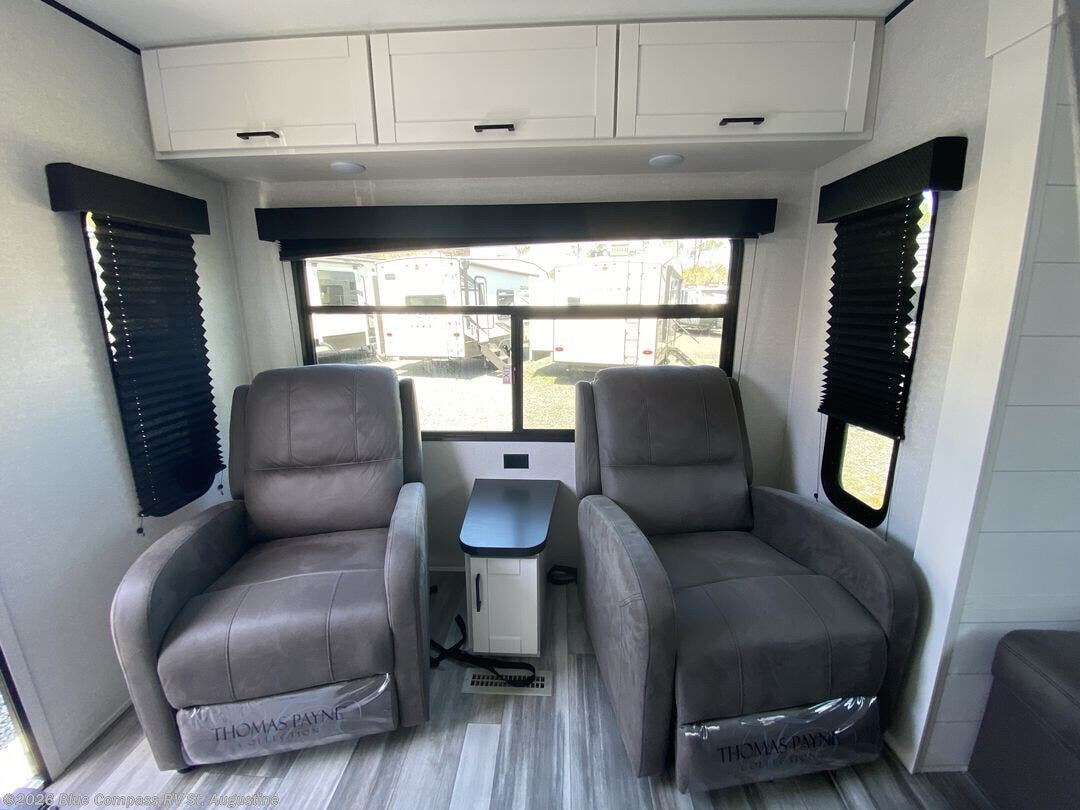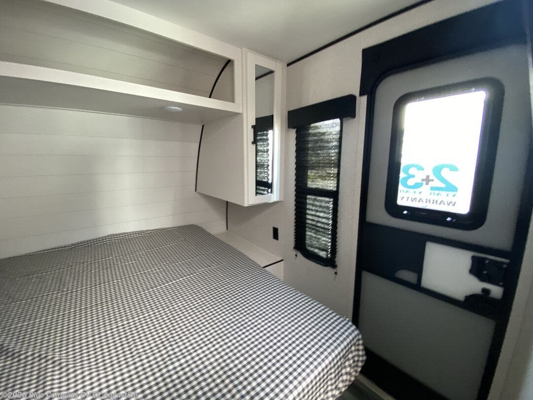 You can comfortably sleep up to six people in this trailer thanks to the RV queen bed in the front bedroom, plus the booth dinette and jack-knife sofa in the main living area! The chef of your crew will have a three burner cooktop and microwave oven to prepare meals, and everyone can store their favorite drinks in the 8 cu. ft. 12V refrigerator. The walk-through bath is spacious and includes a radius shower, toilet, a sink, and linen closet and is the full width of the unit. The outside storage will let you bring along camp chairs and games, fishing poles and more, plus the 18' 3" power awning with LED lights will create a nice place to gather in the evenings!