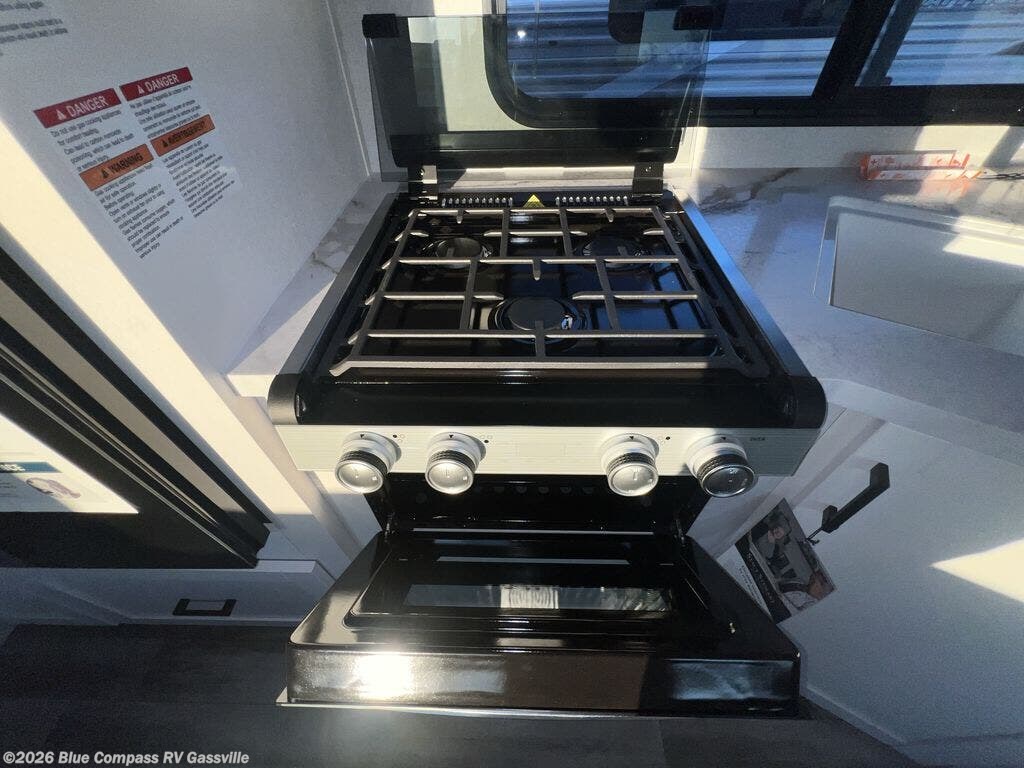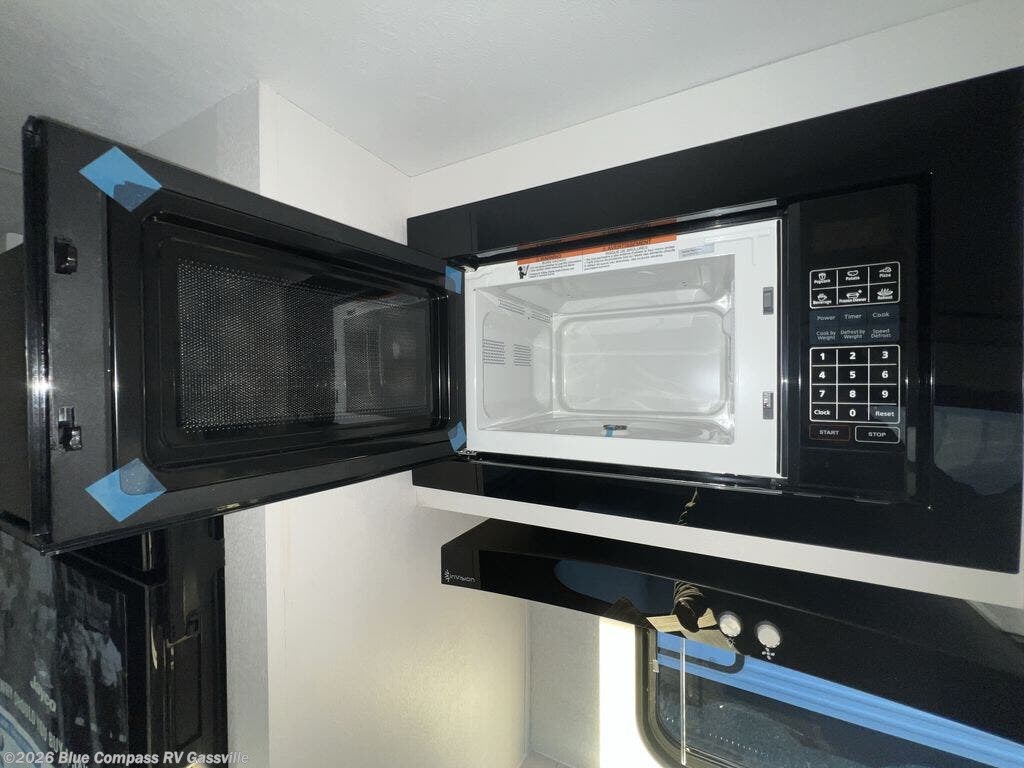 You can comfortably sleep up to six people in this trailer thanks to the RV queen bed in the front bedroom, plus the booth dinette and jack-knife sofa in the main living area! The chef of your crew will have a three burner cooktop and microwave oven to prepare meals, and everyone can store their favorite drinks in the 8 cu. ft. 12V refrigerator. The walk-through bath is spacious and includes a radius shower, toilet, a sink, and linen closet and is the full width of the unit. The outside storage will let you bring along camp chairs and games, fishing poles and more, plus the 18' 3" power awning with LED lights will create a nice place to gather in the evenings!