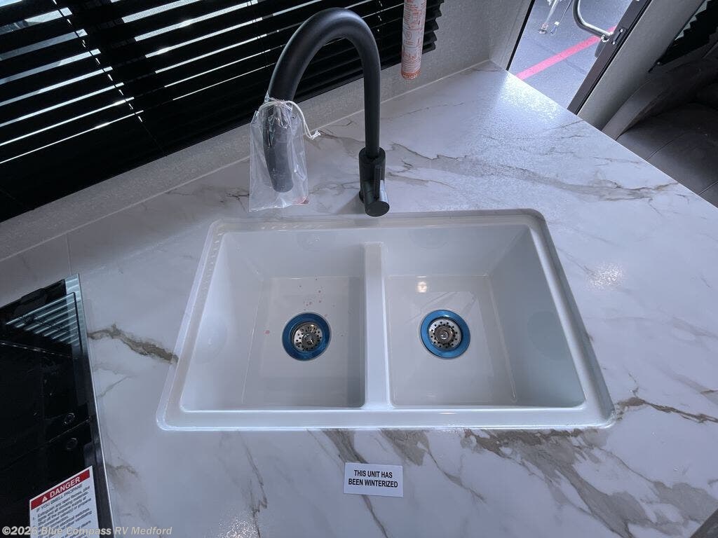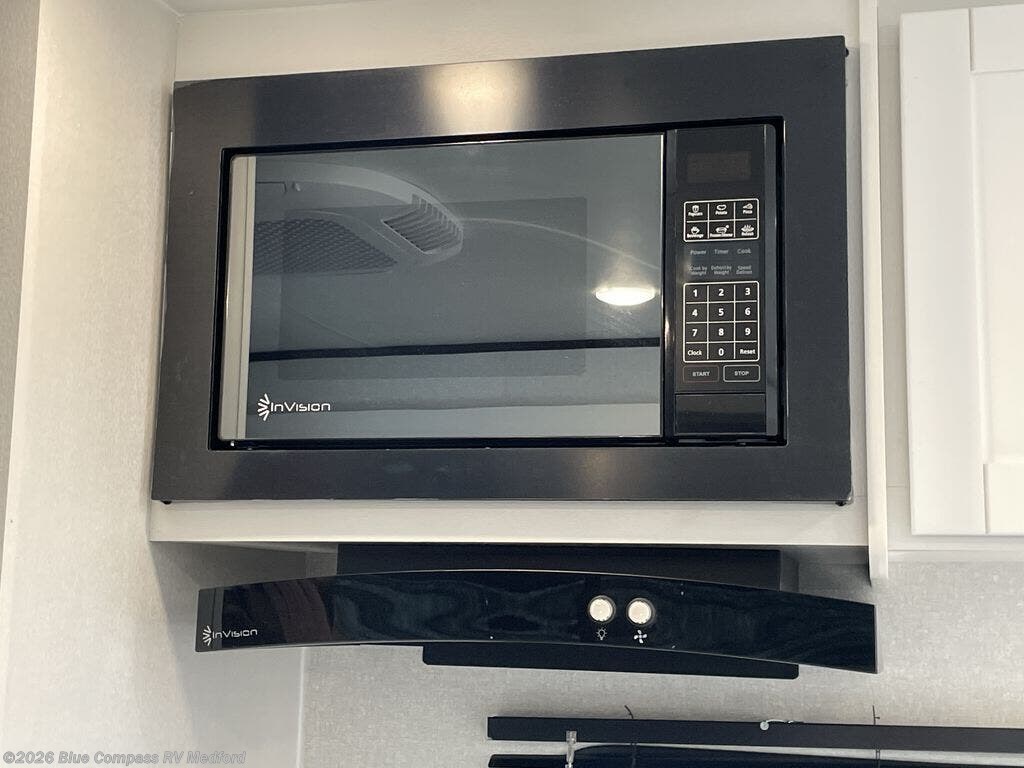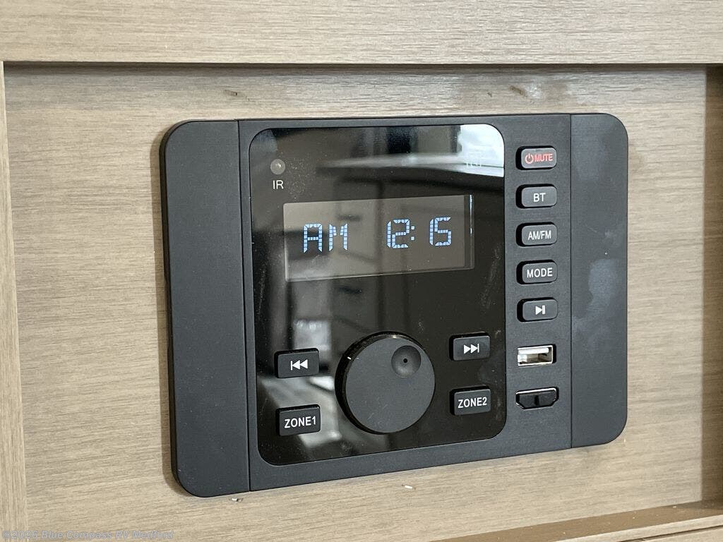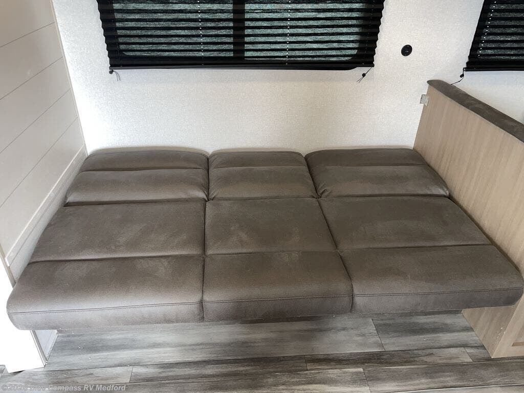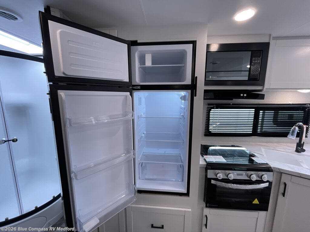 You can comfortably sleep up to six people in this trailer thanks to the RV queen bed in the front bedroom, plus the booth dinette and jack-knife sofa in the main living area! The chef of your crew will have a three burner cooktop and microwave oven to prepare meals, and everyone can store their favorite drinks in the 8 cu. ft. 12V refrigerator. The walk-through bath is spacious and includes a radius shower, toilet, a sink, and linen closet and is the full width of the unit. The outside storage will let you bring along camp chairs and games, fishing poles and more, plus the 18' power awning with LED lights will create a nice place to gather in the evenings!