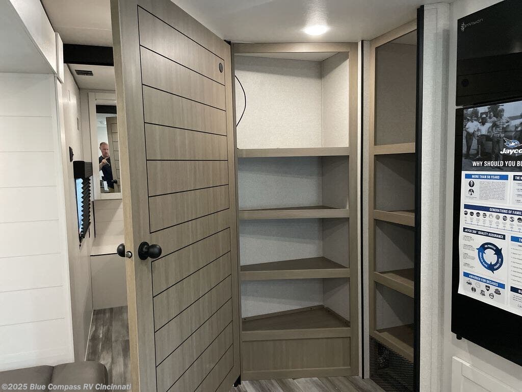 If space is what you're looking for in your next trailer, space is what you'll get this this Jay Flight SLX! The large slide houses the jack-knife sofa and booth dinette, and the added space here will provide everyone room to move about. The chef of your group will love cooking inside, or they can head outside to cook on the outdoor kitchen. Double-size bunks are sure to be a big hit with the little ones, and you'll love having your own space up front in the private bedroom. This unit includes ample storage space, including a hidden pantry with shelves, a bedroom closet plus dual bedside wardrobes, plus exterior storage for hiking or fishing gear!