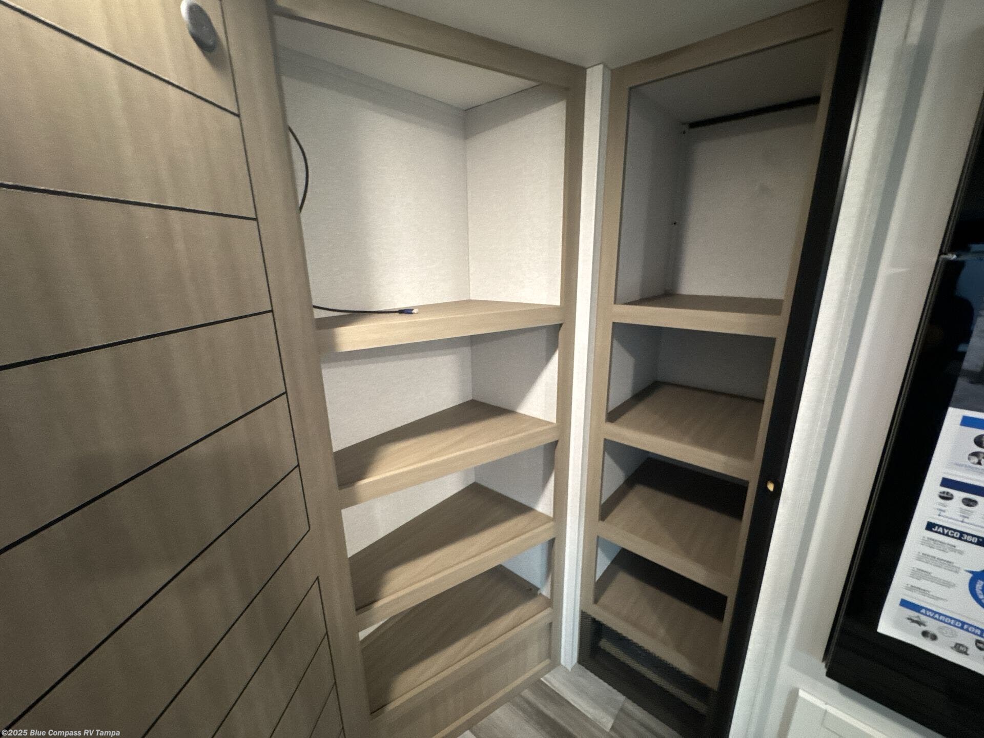 If space is what you're looking for in your next trailer, space is what you'll get this this Jay Flight SLX! The large slide houses the jack-knife sofa and booth dinette, and the added space here will provide everyone room to move about. The chef of your group will love cooking inside, or they can head outside to cook on the outdoor kitchen. Double-size bunks are sure to be a big hit with the little ones, and you'll love having your own space up front in the private bedroom. This unit includes ample storage space, including a hidden pantry with shelves, a bedroom closet plus dual bedside wardrobes, plus exterior storage for hiking or fishing gear!